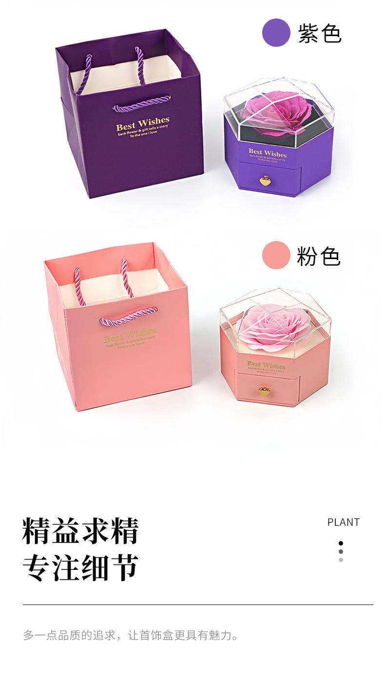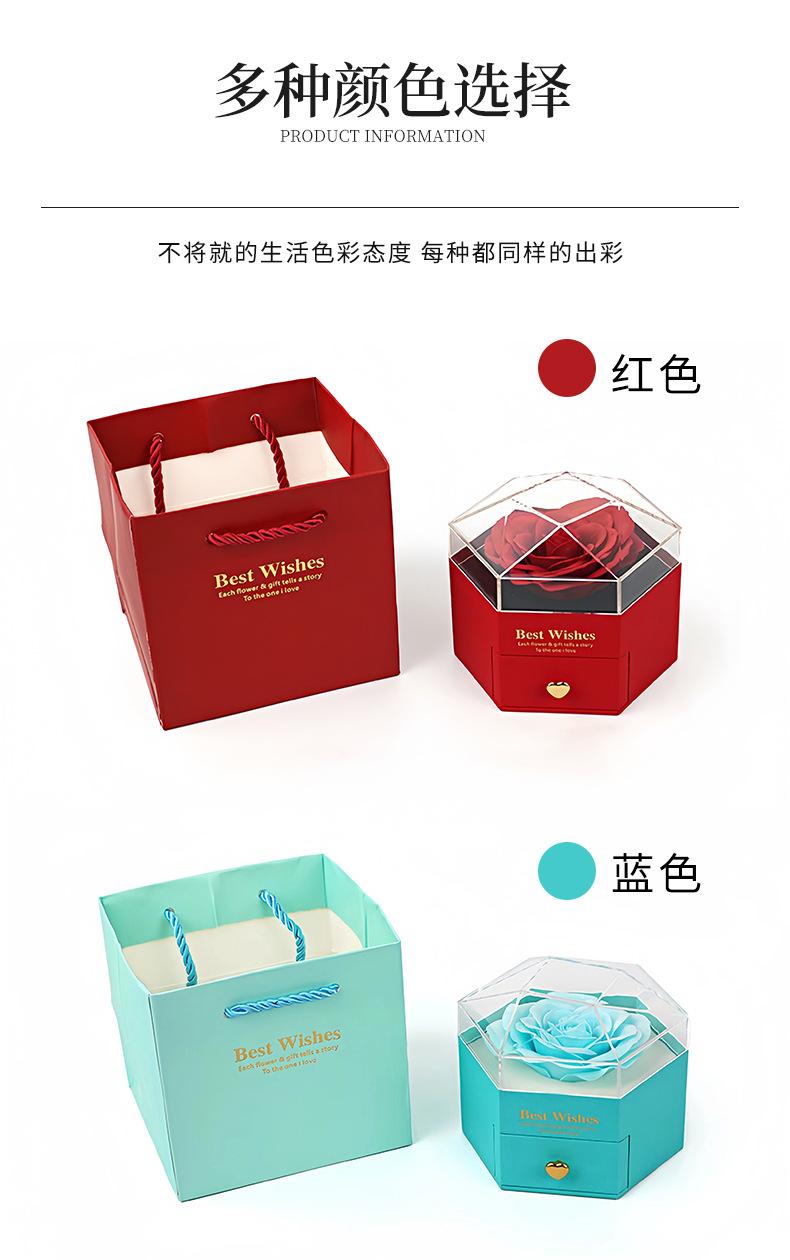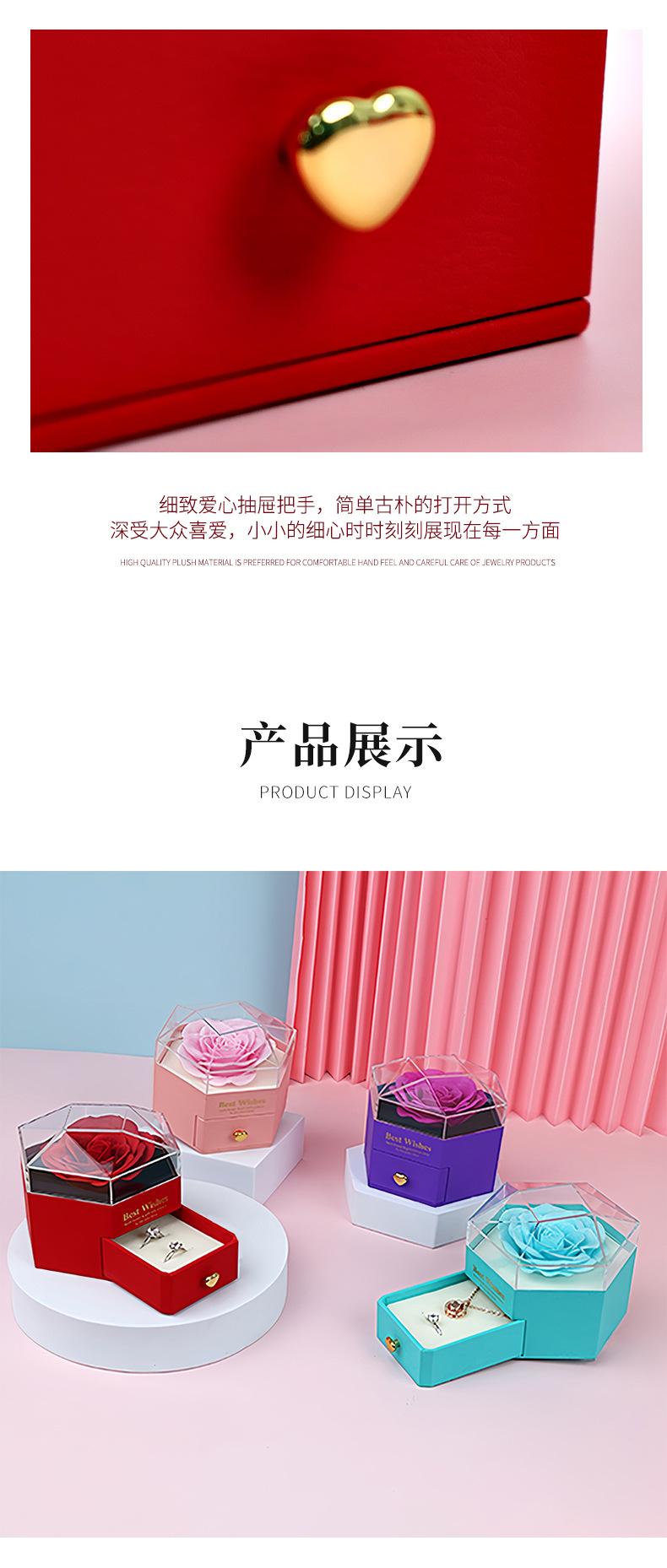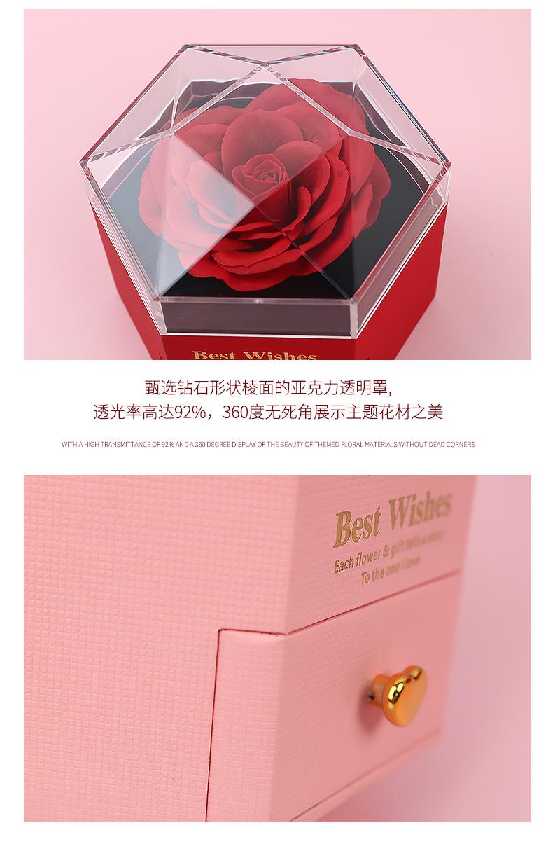Nueva caja hexagonal con forma de rosa de diamante, flor de jabón, anillo, pendiente, collar, joyero, caja de cuero, papel, caja de regalo al por mayor