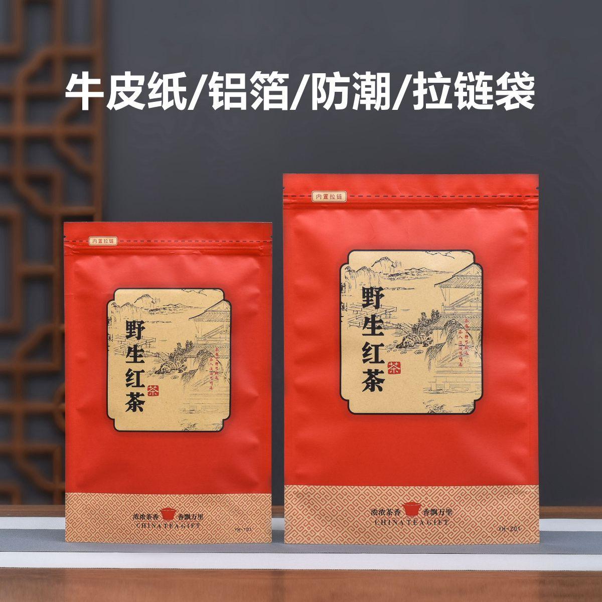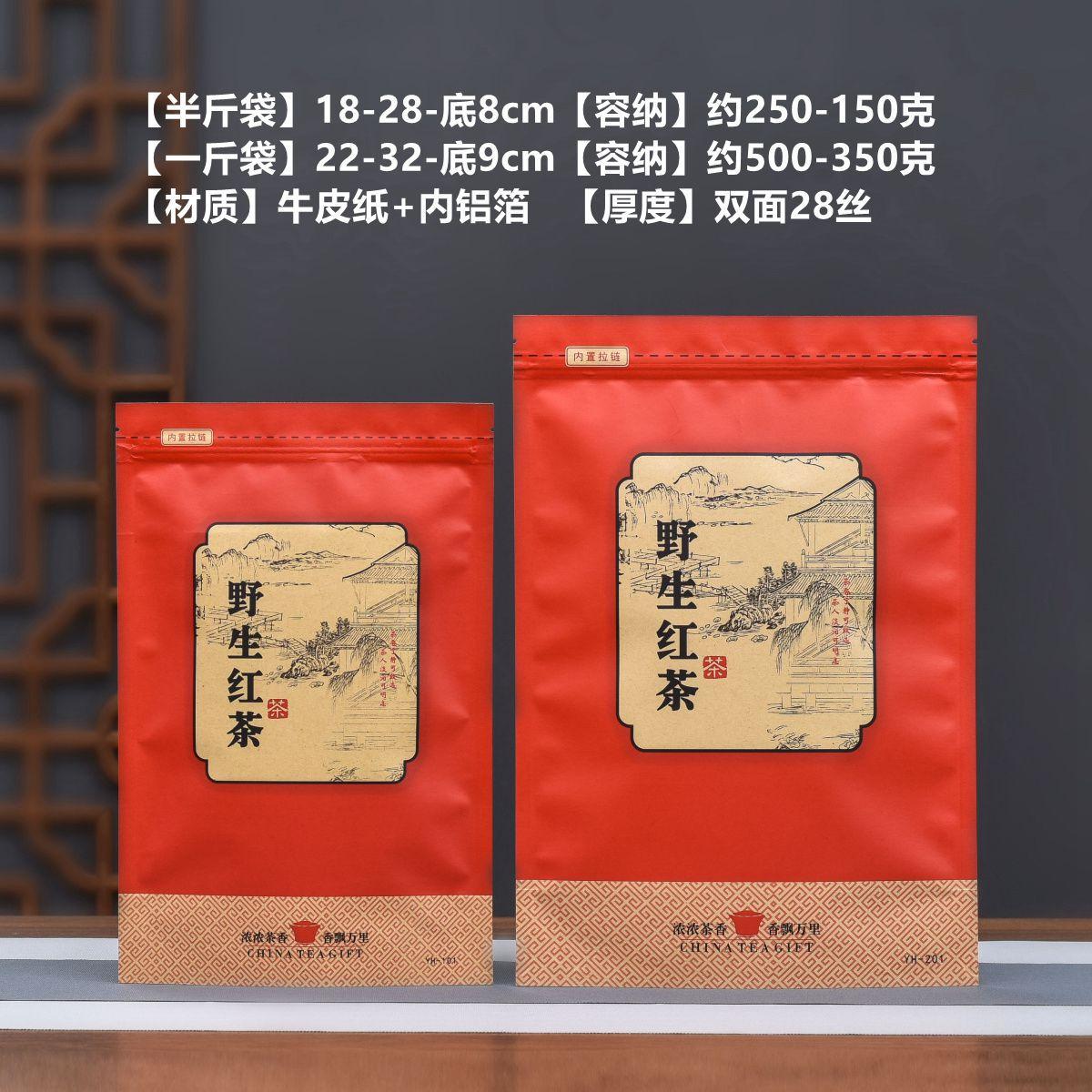 Té negro silvestre medio kilo un kilo bolsa sellada papel kraft papel de aluminio a prueba de humedad bolsa de embalaje de té cremallera auto-sellado almacenamiento