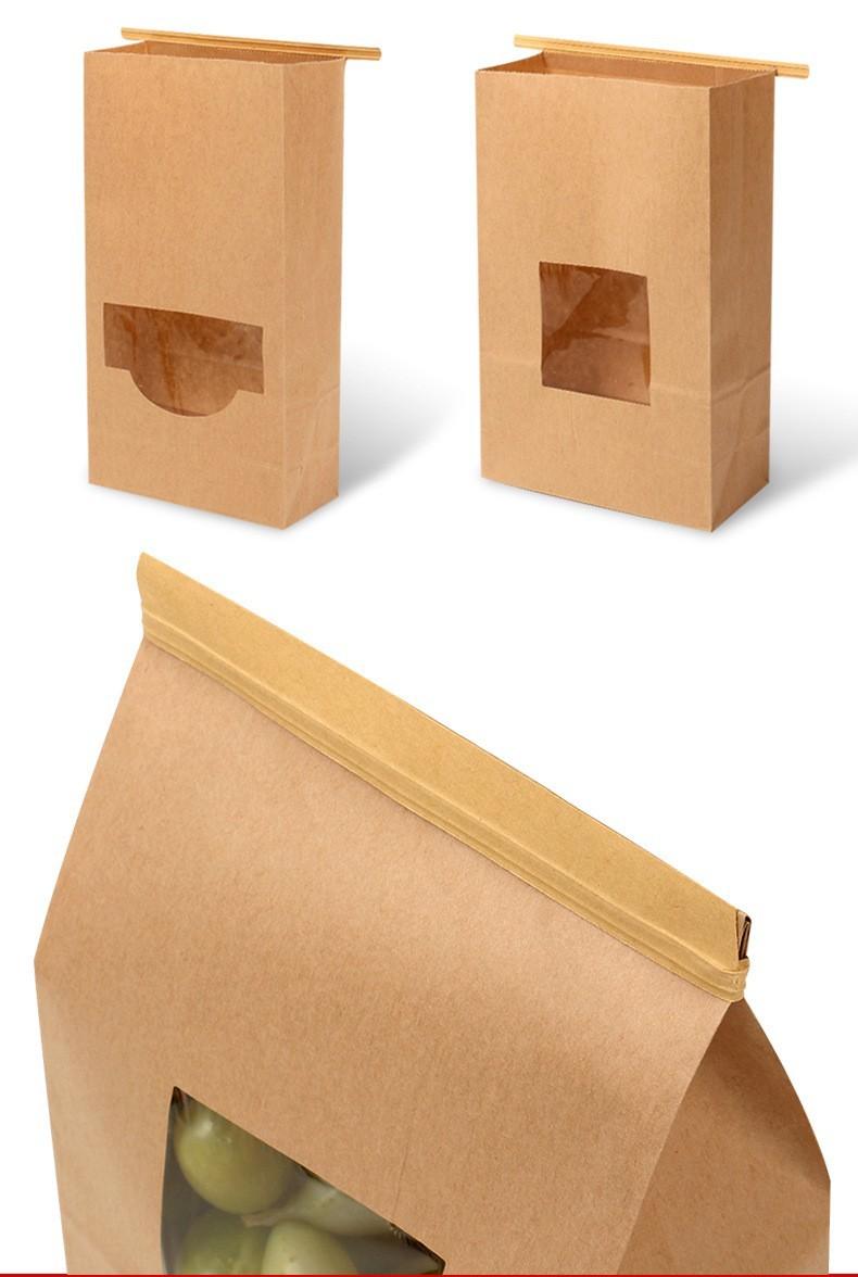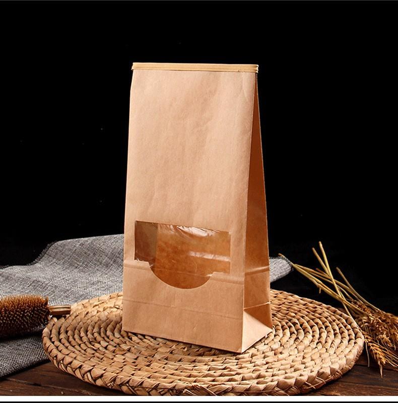 Bolsa de Papel Kraft Marrón Bolsa de Embalaje con Ventana Bolsa Autosellable con Alambre Bolsa para Llevar Bolsa para Hornear Tostadas Pan Bolsa de Embalaje Bolsa Logotipo