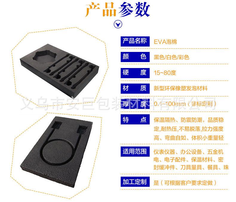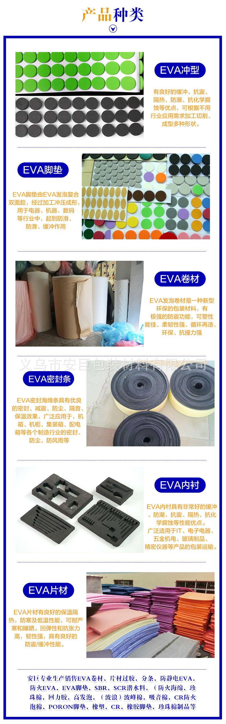 EVALos productos de caucho y plástico se pueden procesar y moldear según el diseño.Su rendimiento sísmico es superior al de los materiales de espuma tradicionales, como el poliestireno (espuma), y cumple con los requisitos de protección ambiental. Es un producto de exportación.Opción de alta calidad. En comparación con el embalaje a prueba de golpes, se puede cortar y moldear; debido a la gran diferencia de densidad, también puede tener una gama más amplia de...Amplia gama de usos.