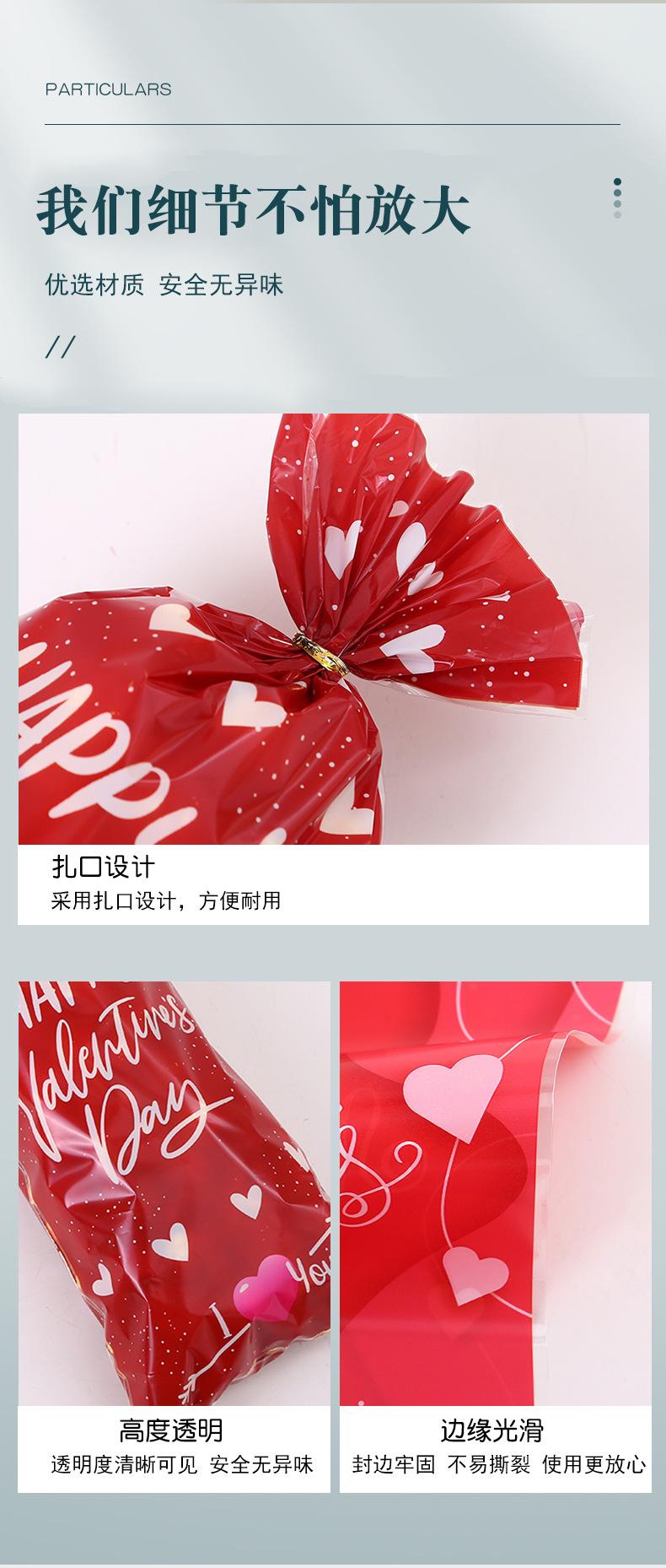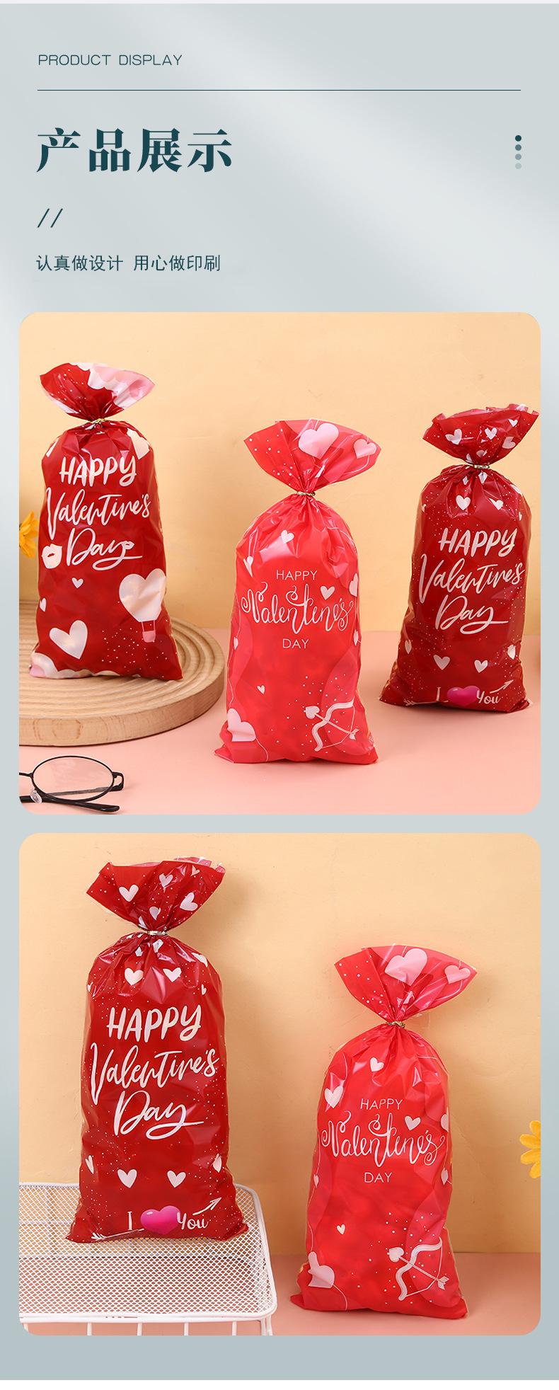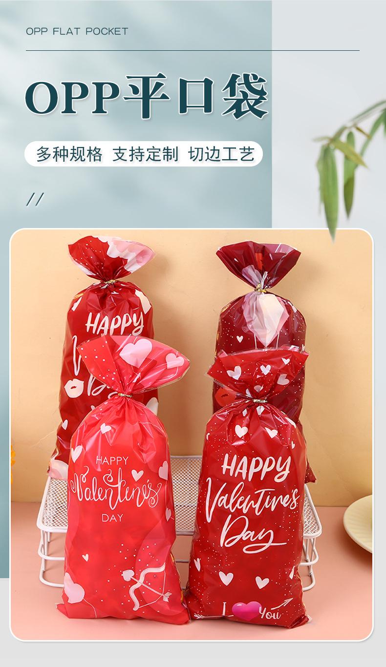 Bolsa de embalaje de dulces para el día de San Valentín, bolsa de embalaje de regalo de bolsillo plano OPP con impresión de amor rojo, bolsa de embalaje de dulces