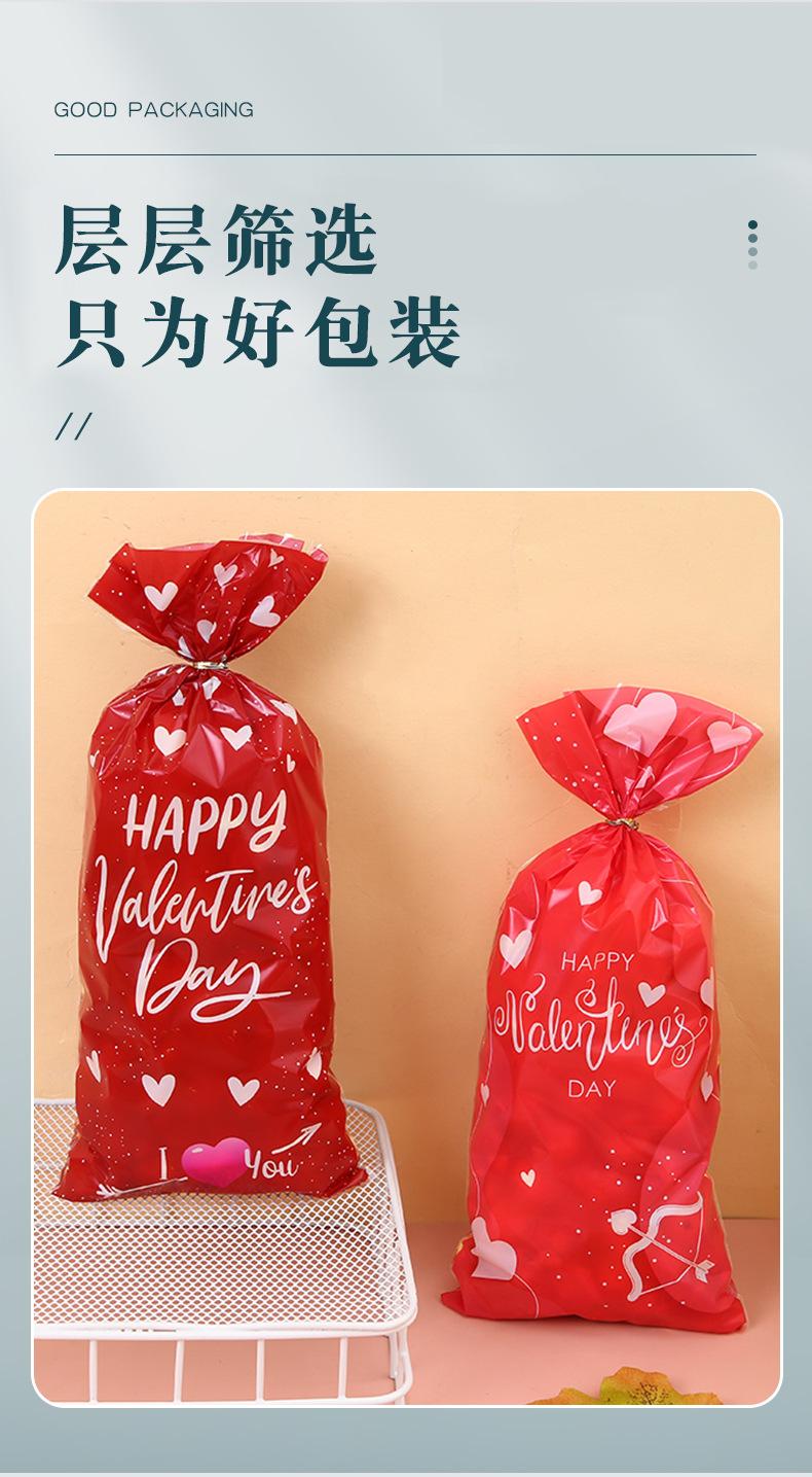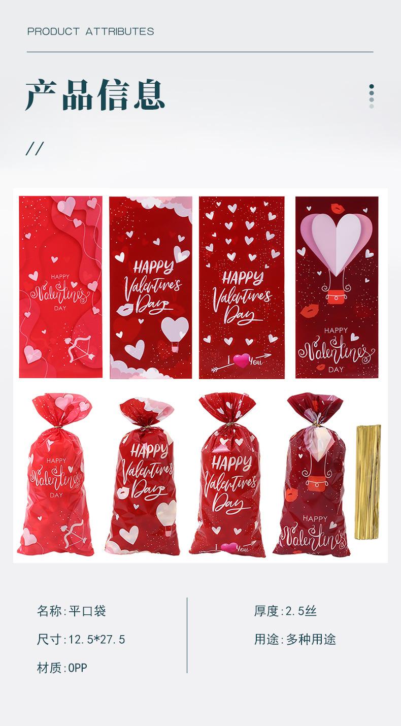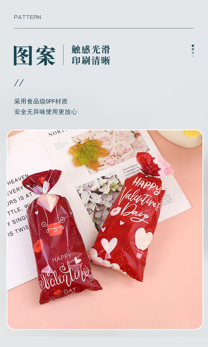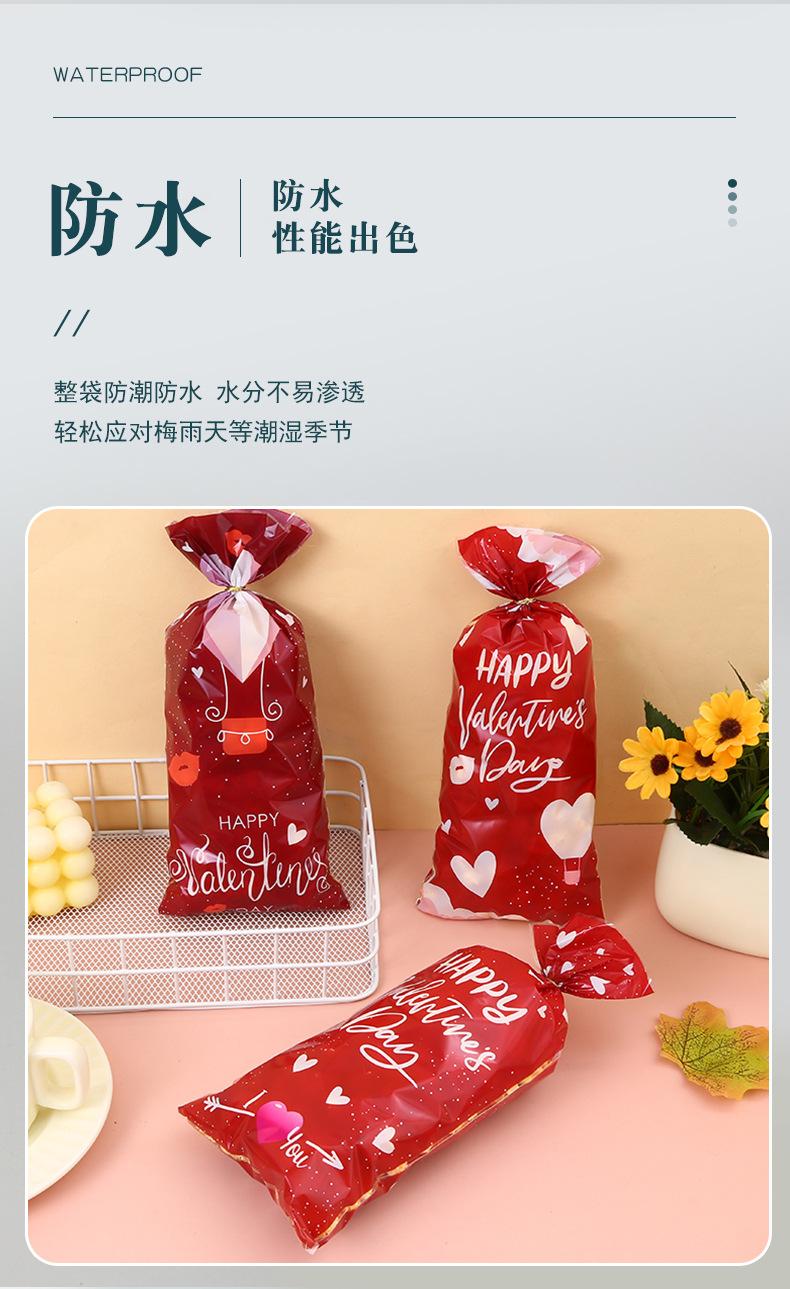 Bolsa de embalaje de dulces para el día de San Valentín, bolsa de embalaje de regalo de bolsillo plano OPP con impresión de amor rojo, bolsa de embalaje de dulces