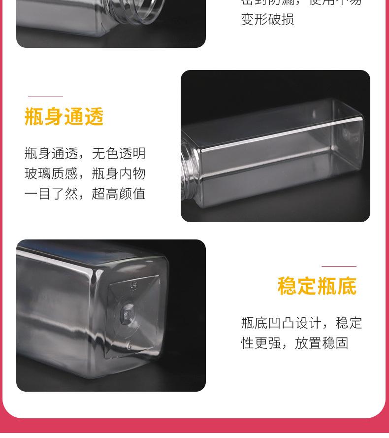 botella de plástico para mascotas con tapa celebridad de internet botella creativa para bebidas botella de plástico personalizada miel leche de soya yogur botella de leche botella de agua mineral pasta de pera de nieve coco de mar sopa de ciruela agria té con leche de sagú Yangzhi botella de té de Ben Gong Heytea té de infusión fría té de hierbas botella para bebidas botella para bebidas venta directa de fábrica mayorista de fábrica botella cuadrada botella cuadrada
