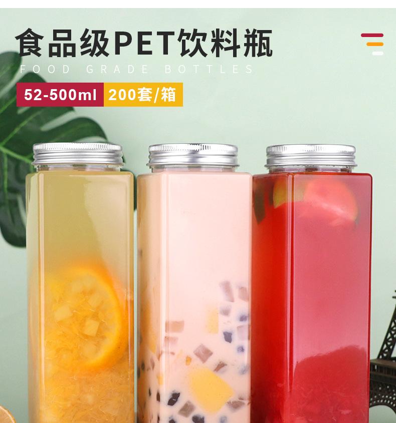52 boca 500ml botella Bengong botella cuadrada de plástico botella para té con leche botella desechable para alimentos botella PET grado alimenticio botella para jugo bebida