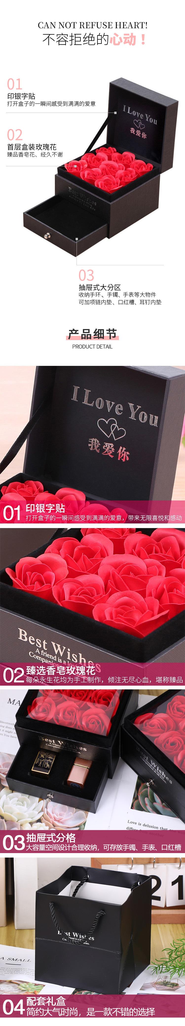Caja de joyería con forma de rosa para San Valentín, con nueve flores eternas, exquisita caja de regalo, venta al por mayor