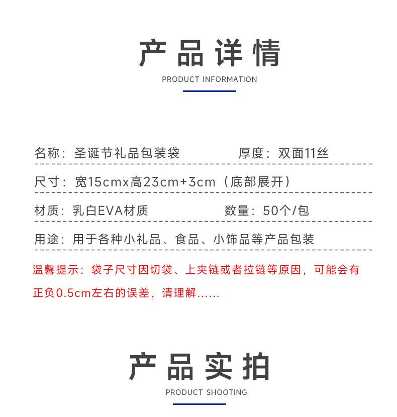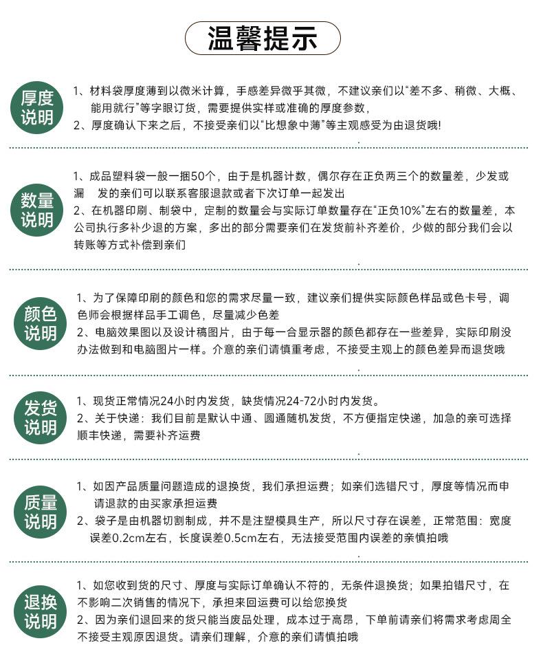 Sobre la cantidad: Al producir las bolsas, el contador computarizado de la máquina cuenta automáticamente la cantidad, y la cantidad es prácticamente exacta. Debido al empaquetado y la clasificación manual posterior, puede haber uno o dos errores en cada paquete. El número de bolsas por paquete puede ser superior o inferior a 50. Esto es normal. ¡Por favor, comprenda!