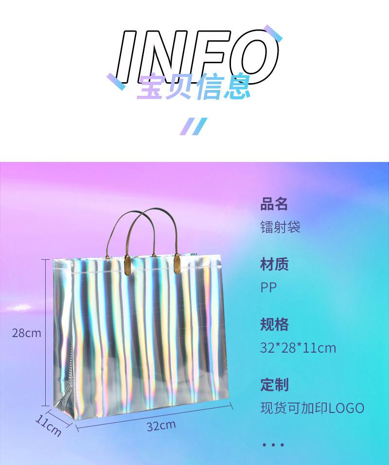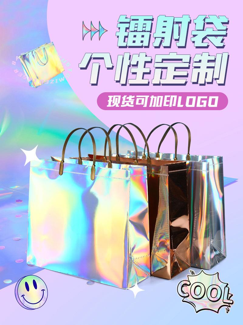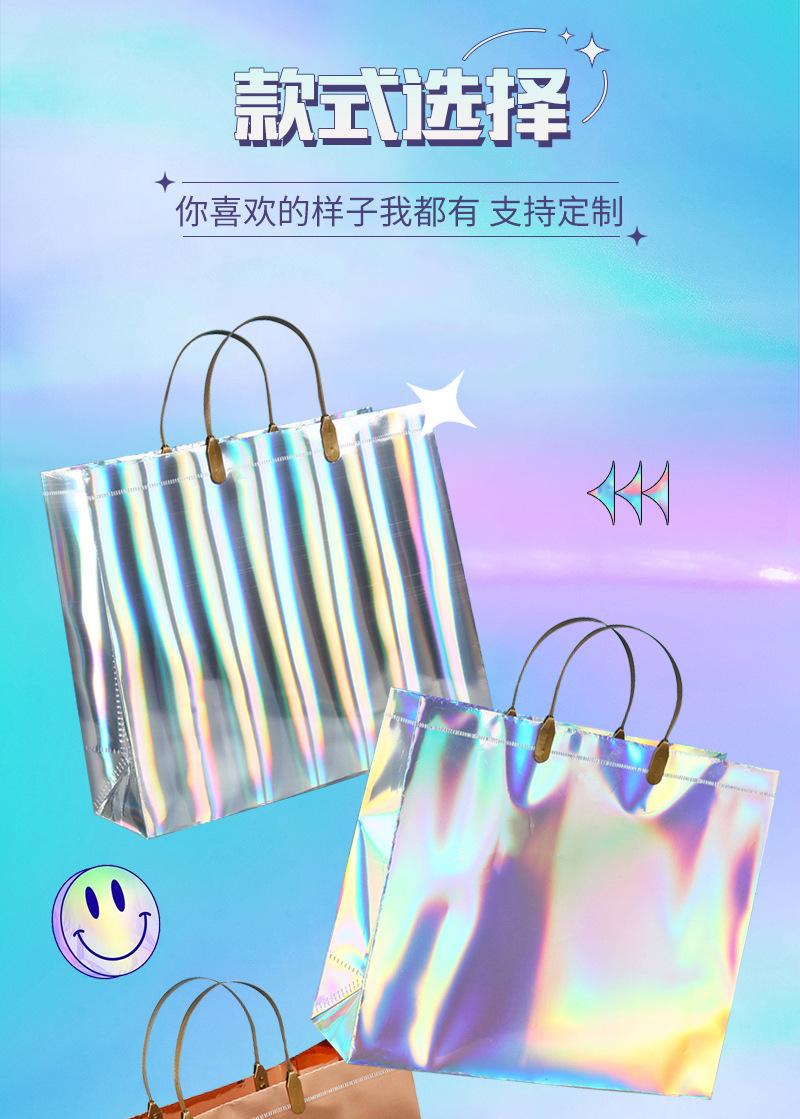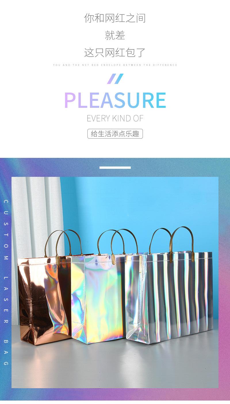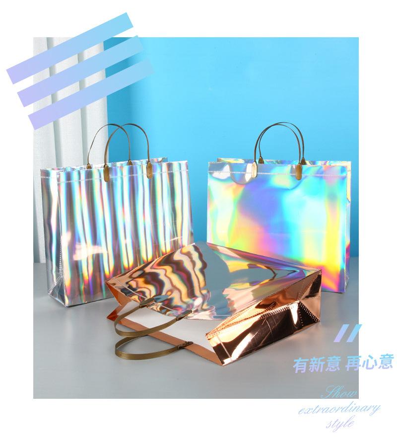 Bolsa de Ropa Láser Colorida Bolsa de Compras Bolsa de Gelatina Personalizada Bolsa de Regalo de Plástico Ins Bolsa Tote Transparente de PVC Ropa