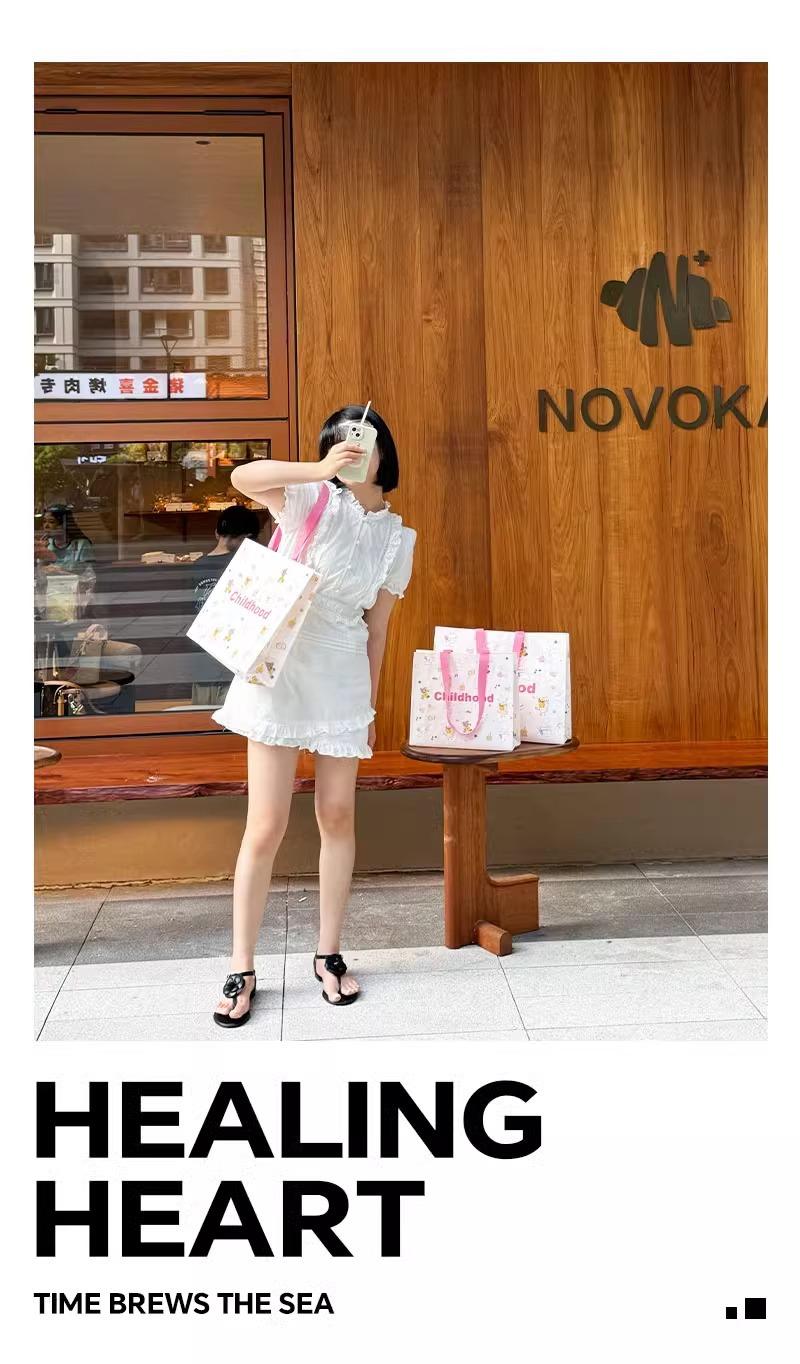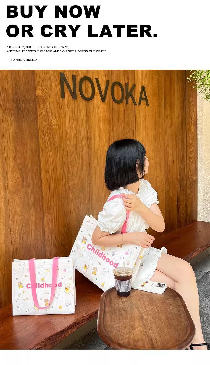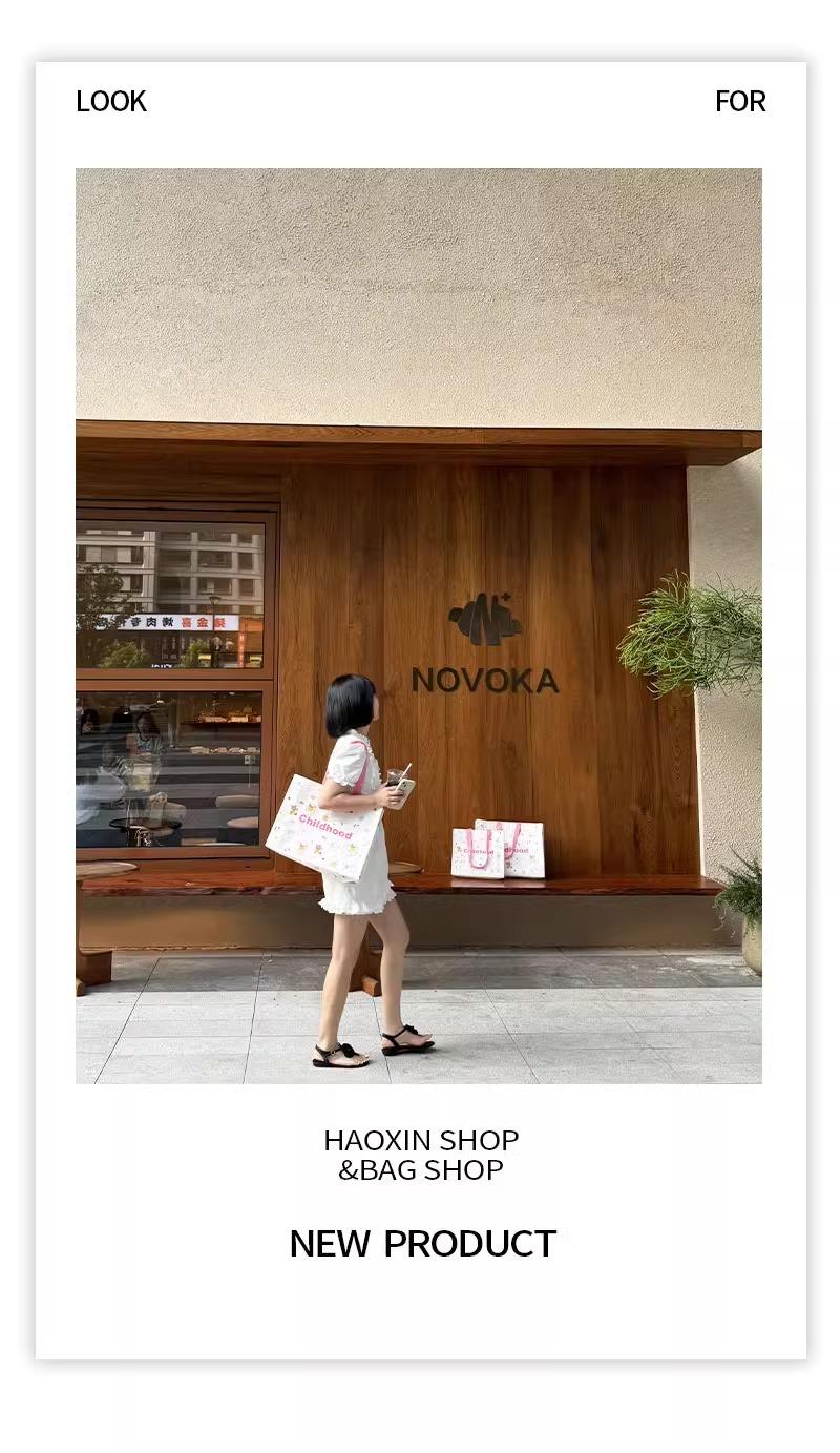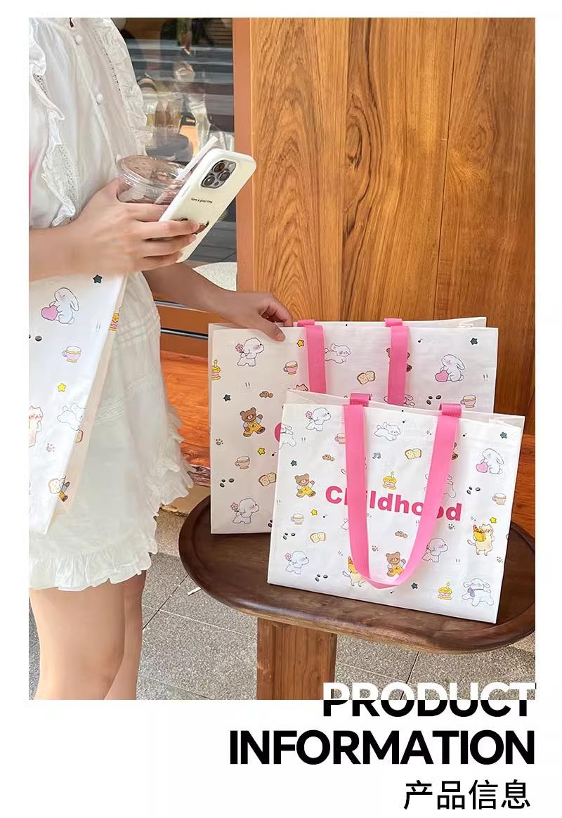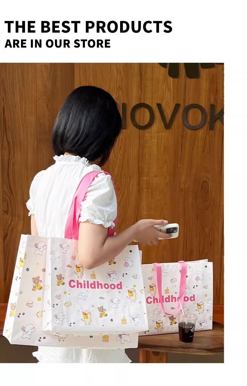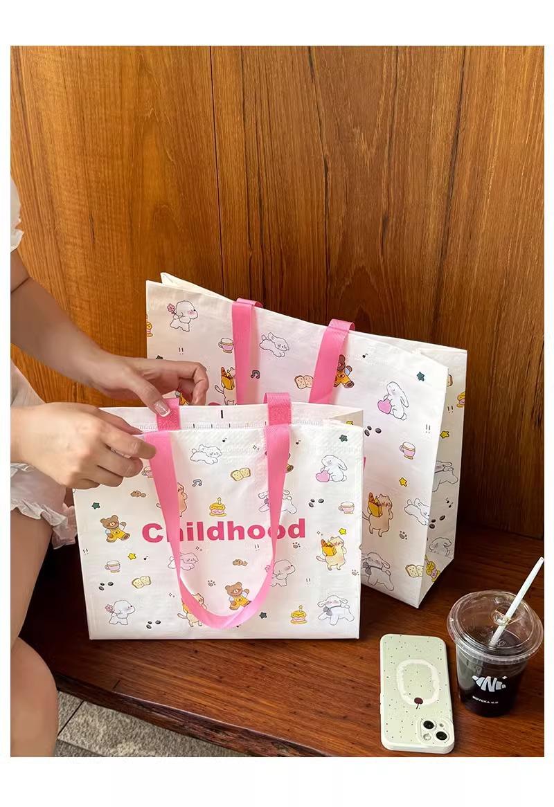 Bolso de mano tejido con dibujos animados para tienda de ropa, embalaje de regalo, bolsa de compras para ropa de mujer, bolsa de regalo, disponible al por mayor