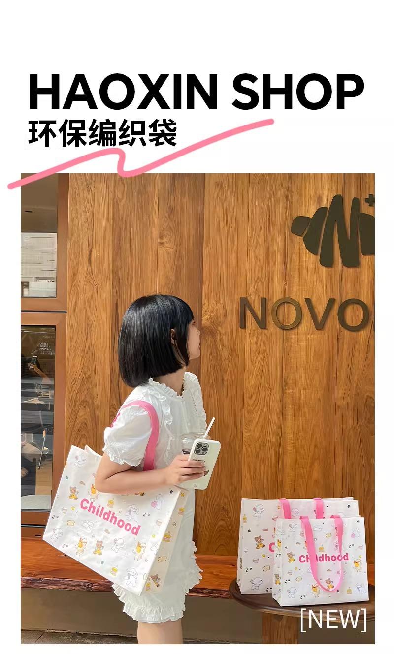 Childhood cartoon woven bag, Cute cartoon woven bag blank style