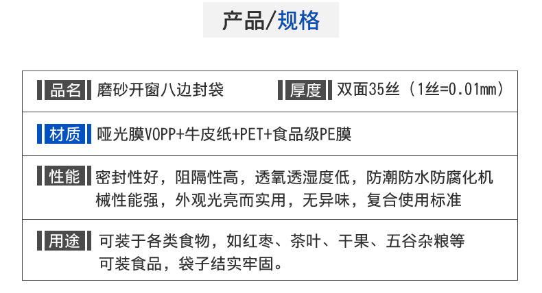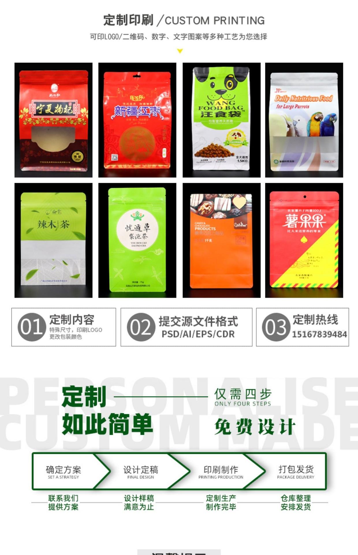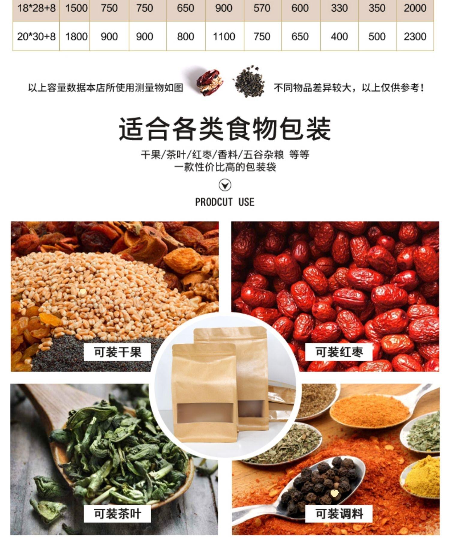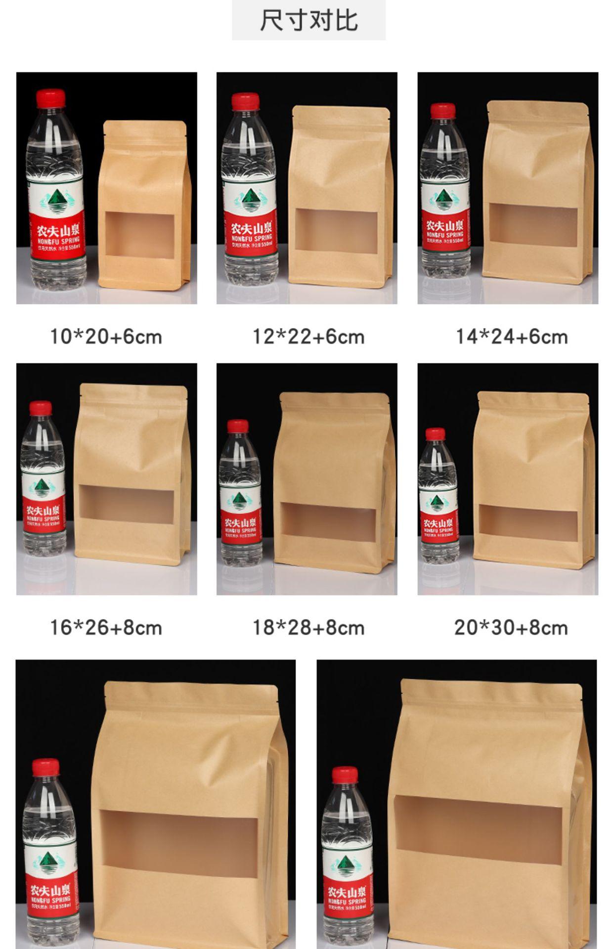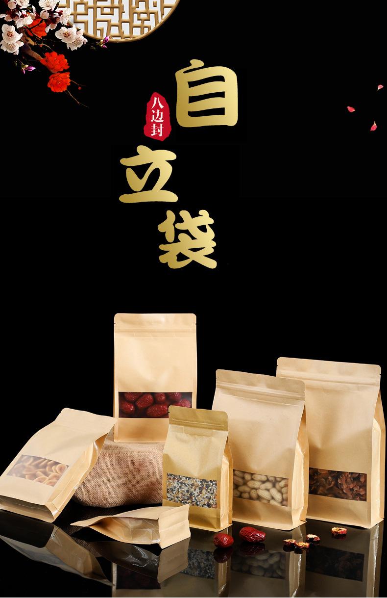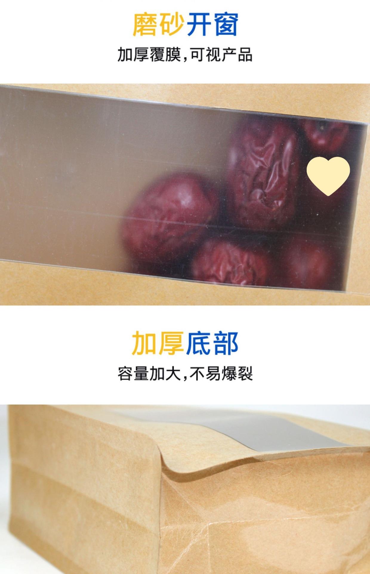 Bolsa de papel kraft con abertura de ventana y sellado lateral de ocho lados, bolsa autosellable, dátiles rojos con nuez, bolsa para embalaje de té de frutas secas, bolsa para alimentos