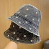 Sombrero de pescador vaquero con bordado de mariposa para mujer, de ala grande, con cara visible, pequeño, informal, de moda, para primavera y verano, con protección solar.