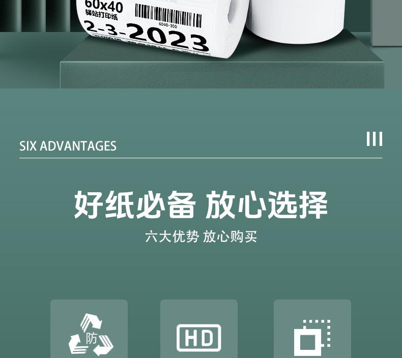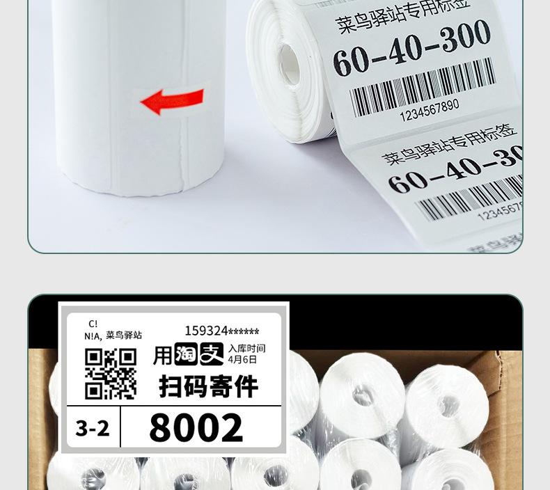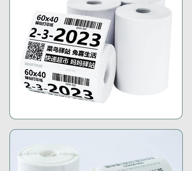 Papel para Etiqueta de Estación Papel Térmico a Prueba de Tres Autoadhesivo 60X40X300 Etiqueta de Código para Recolección Express Papel Impermeable