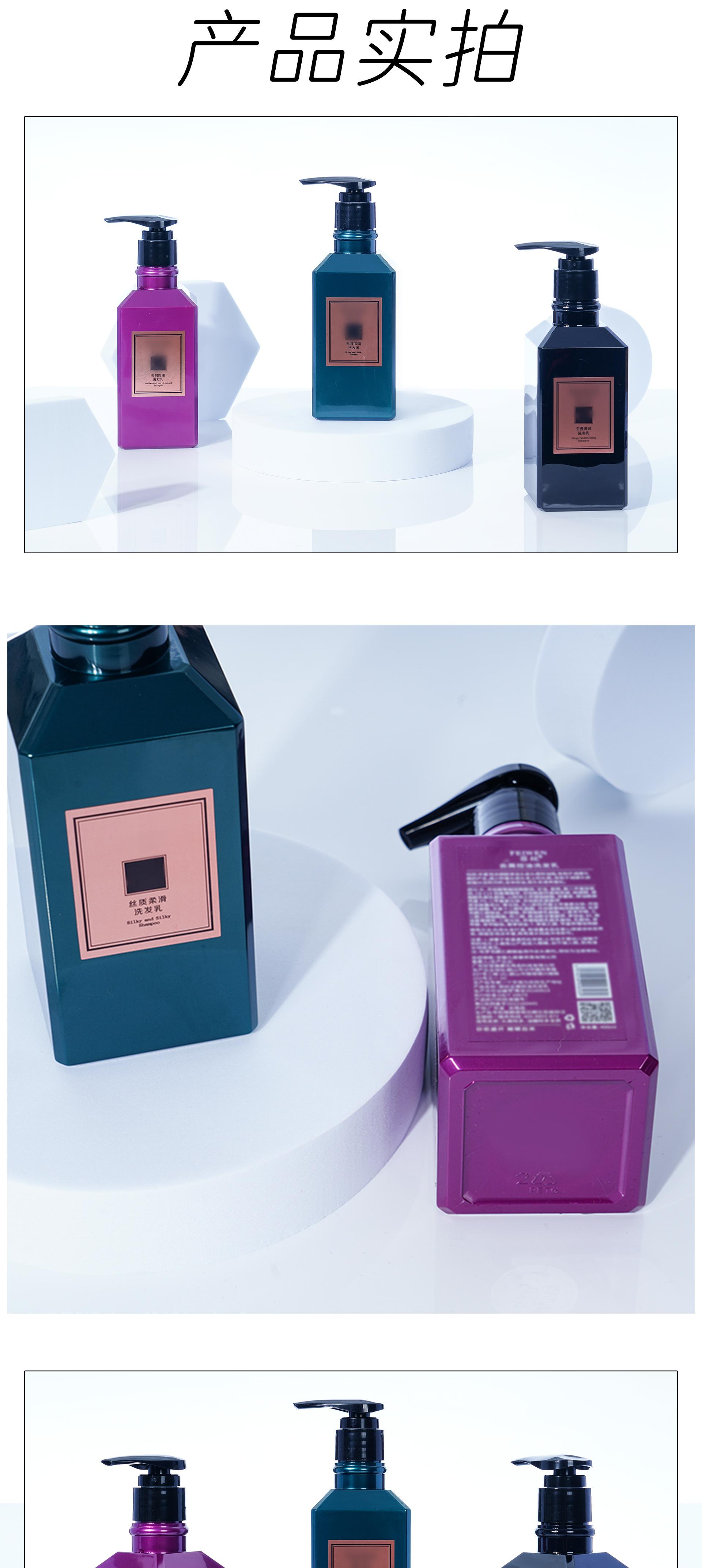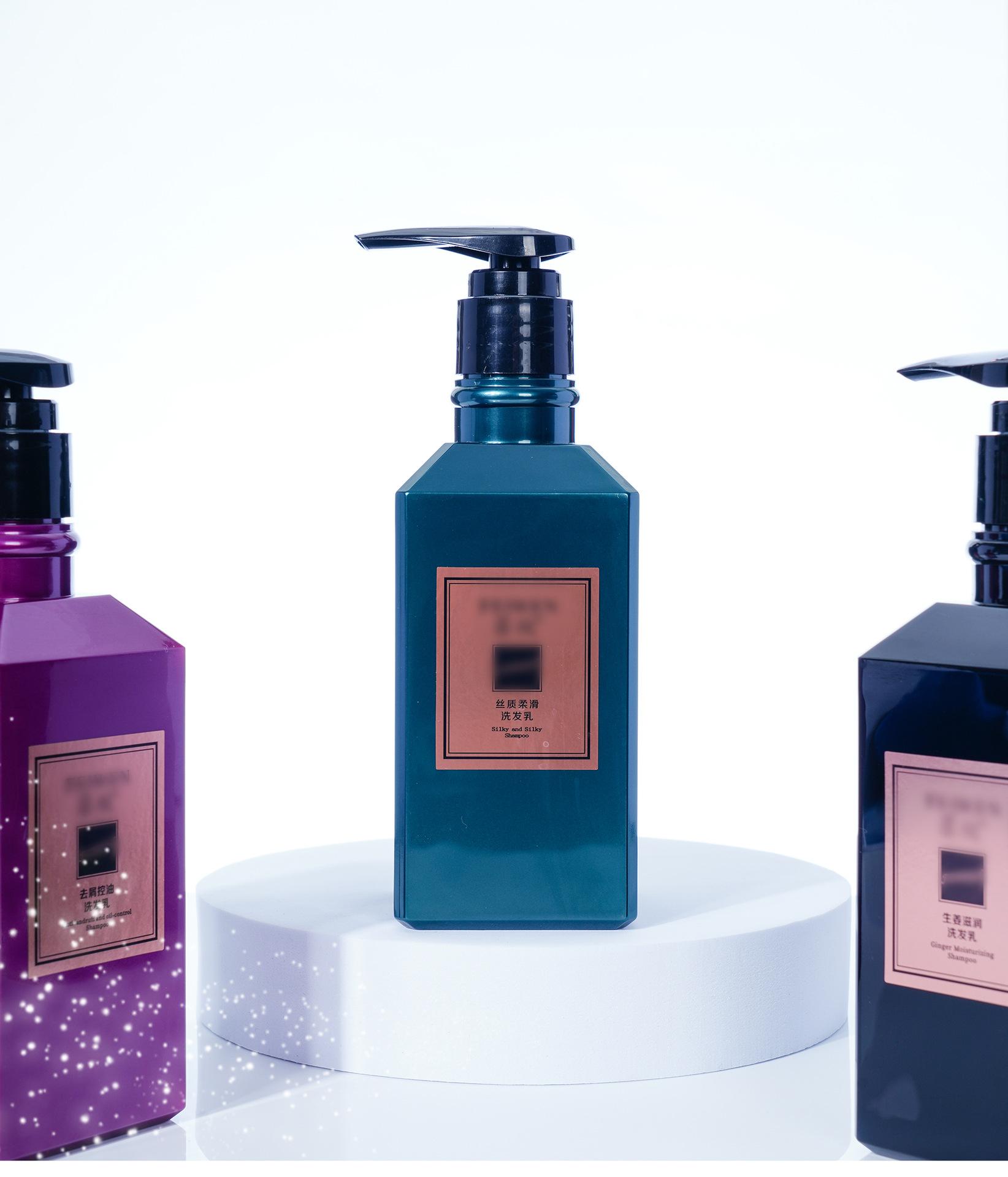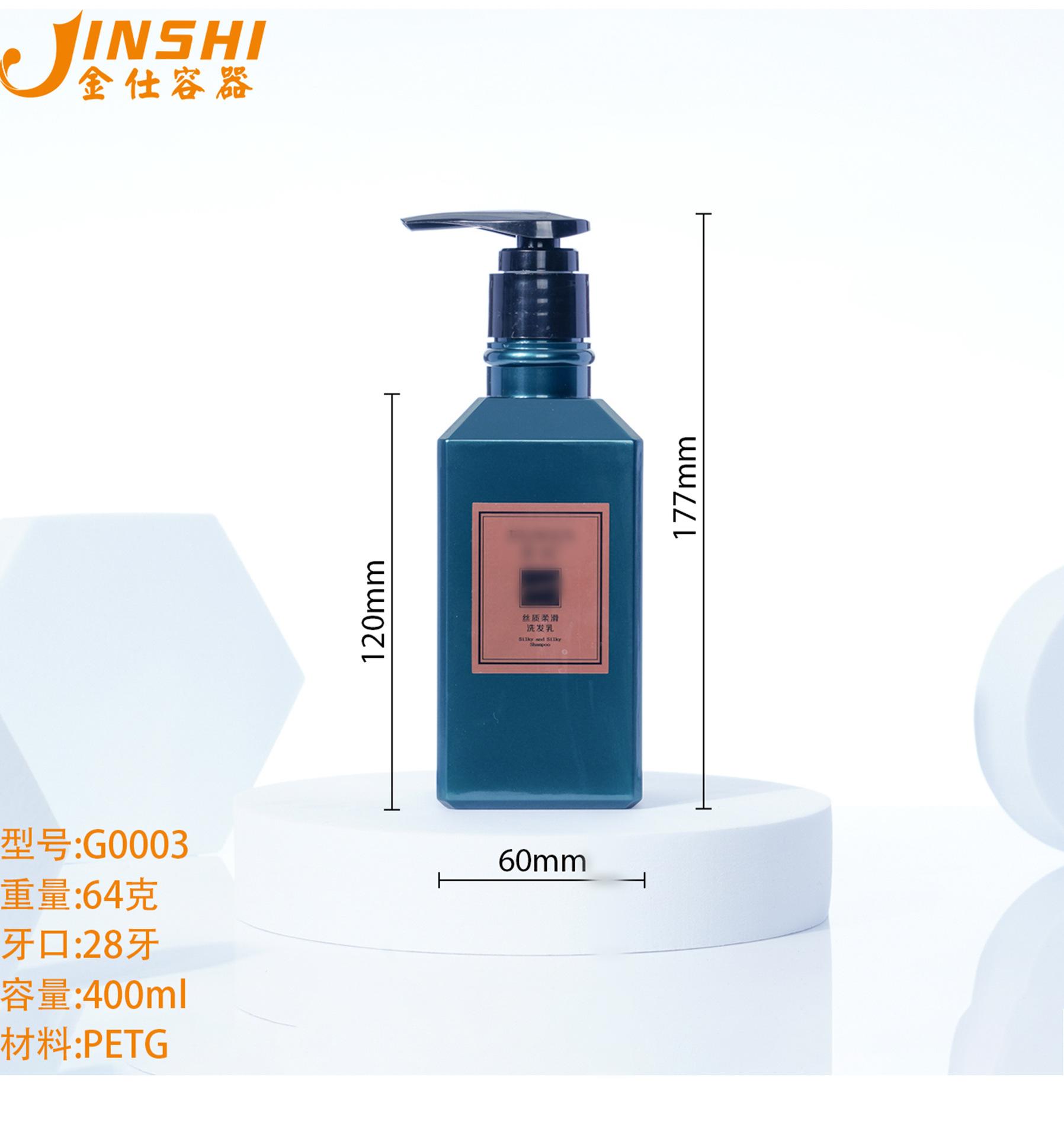 Botella de PETG cuadrada de 300 ml para gel de ducha, champú, limpiador de alta gama, gel de baño, prensa.