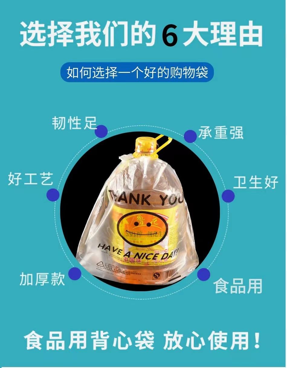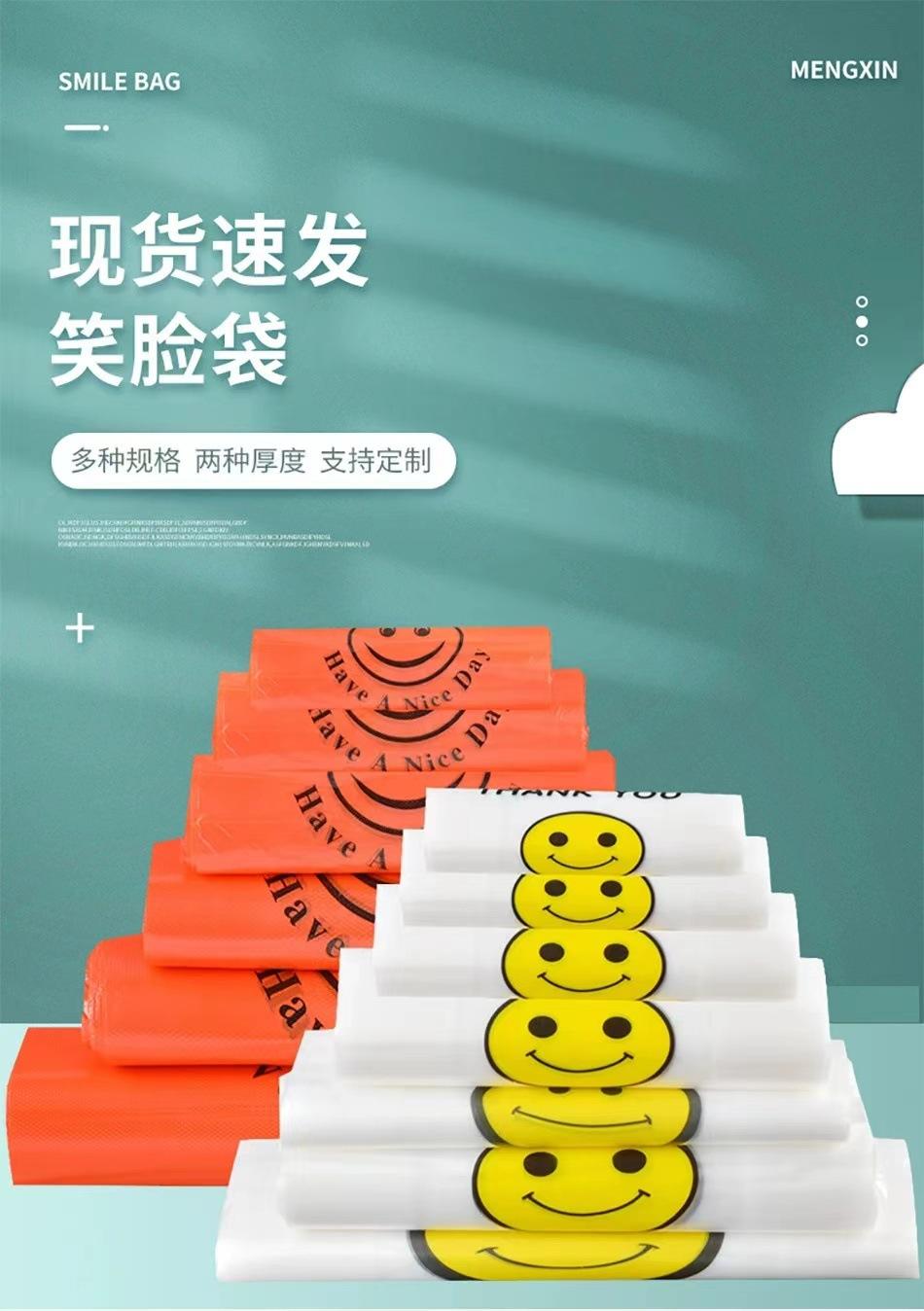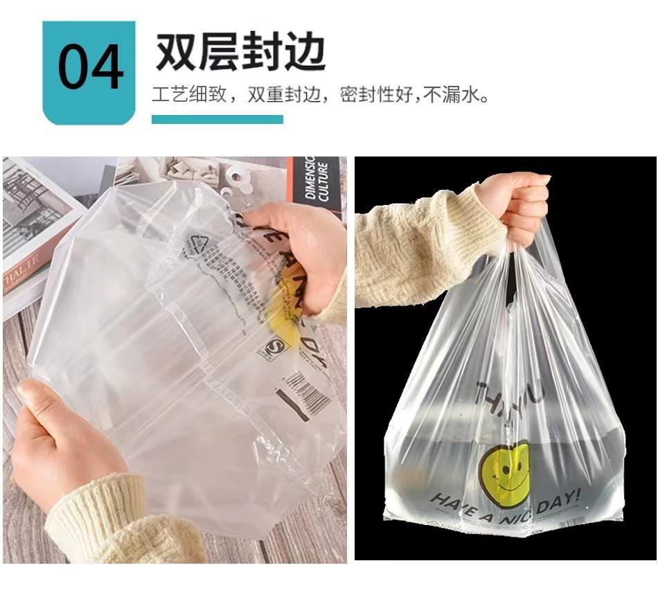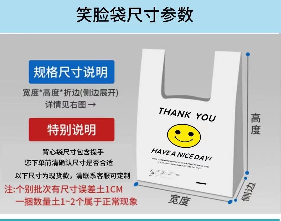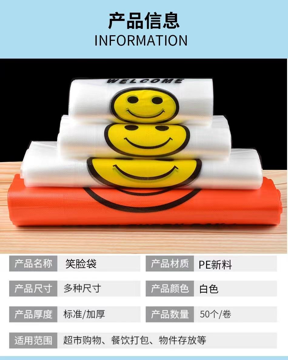 Bolsa de plástico transparente con cara sonriente, pequeña bolsa blanca, gruesa y práctica, para llevar comida, compras, chaleco de embalaje.