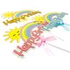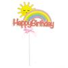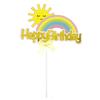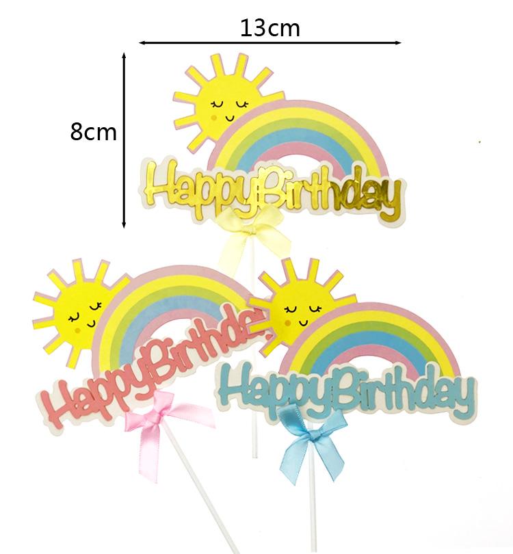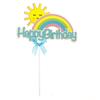 Tarjeta de decoración para tarta de feliz cumpleaños con lazo de arcoíris y sol, accesorios de repostería de dibujos animados enchufables