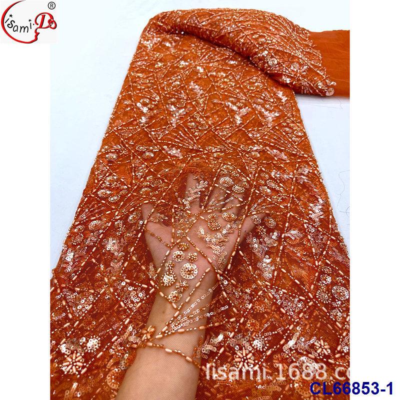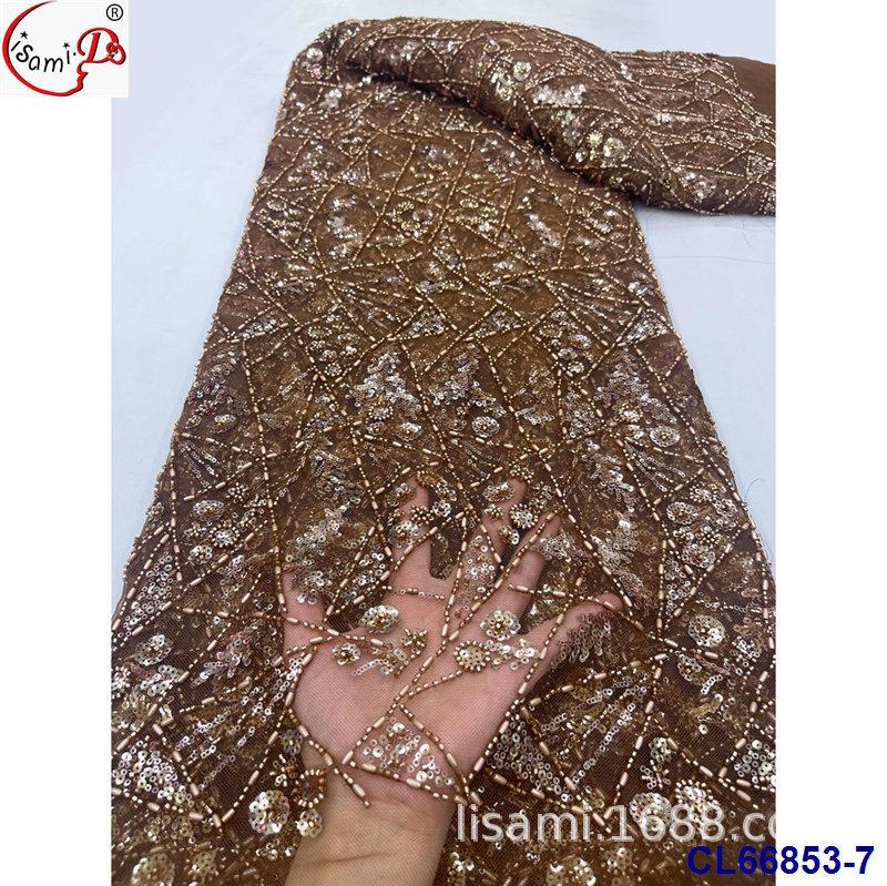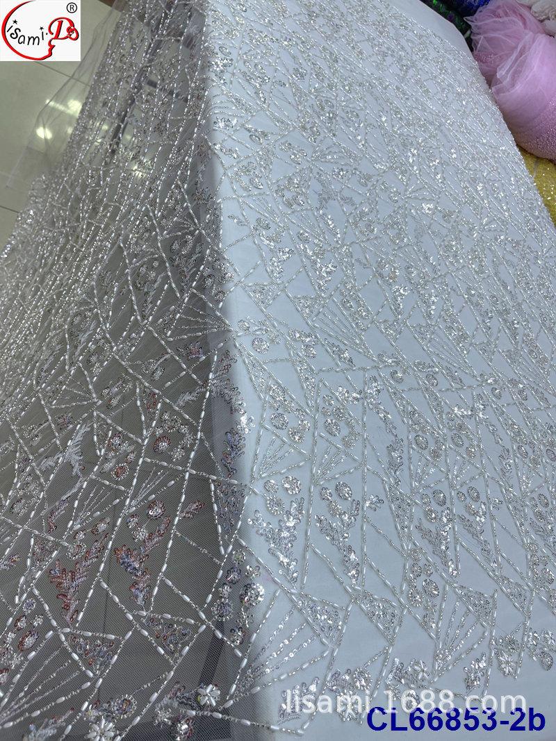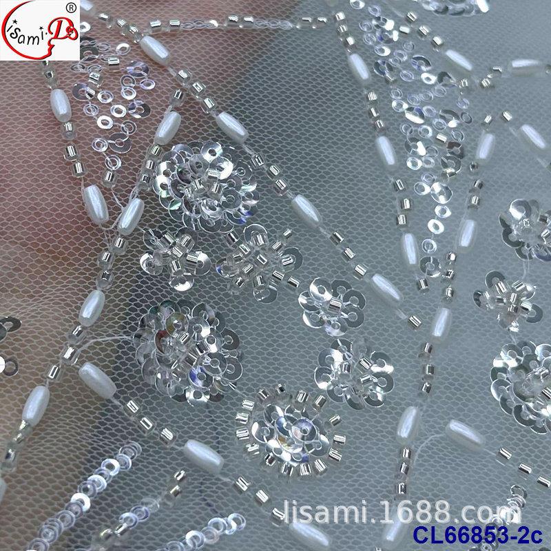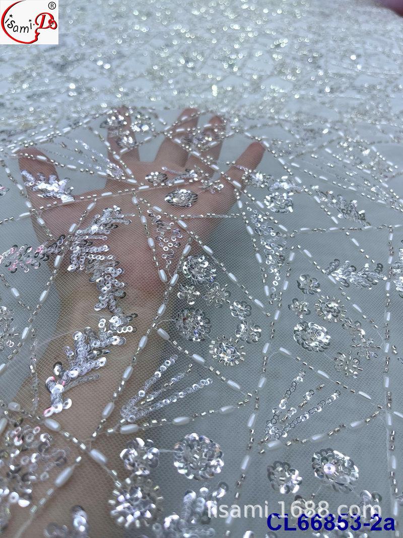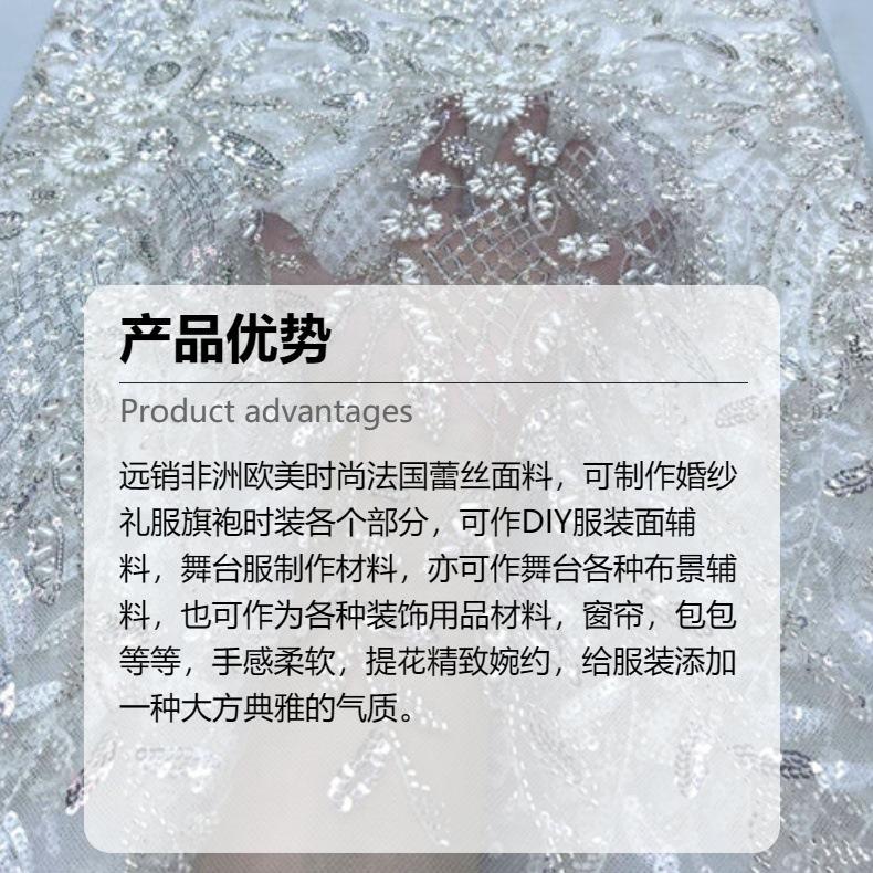 Vestido de novia francés bordado con lentejuelas, tela de encaje simple, tela de encaje con lentejuelas para novia
