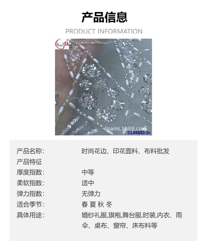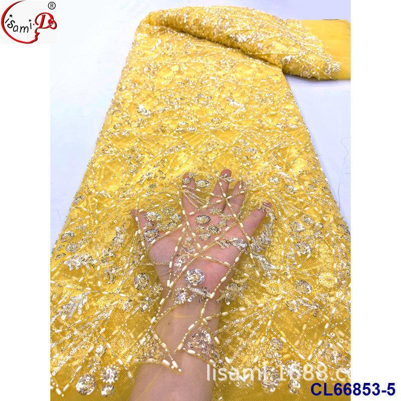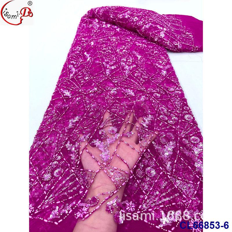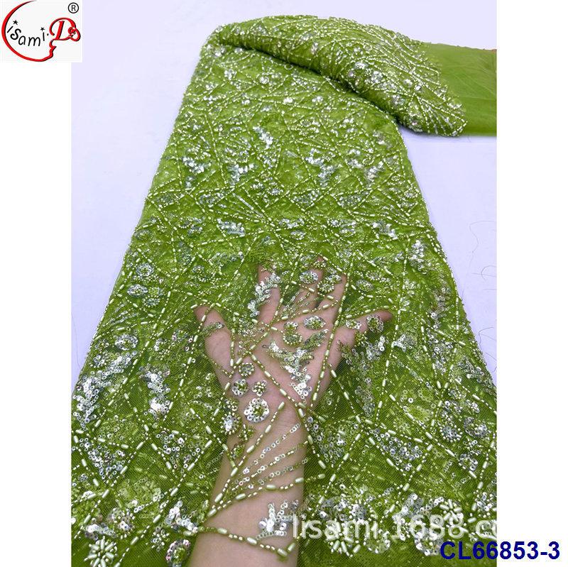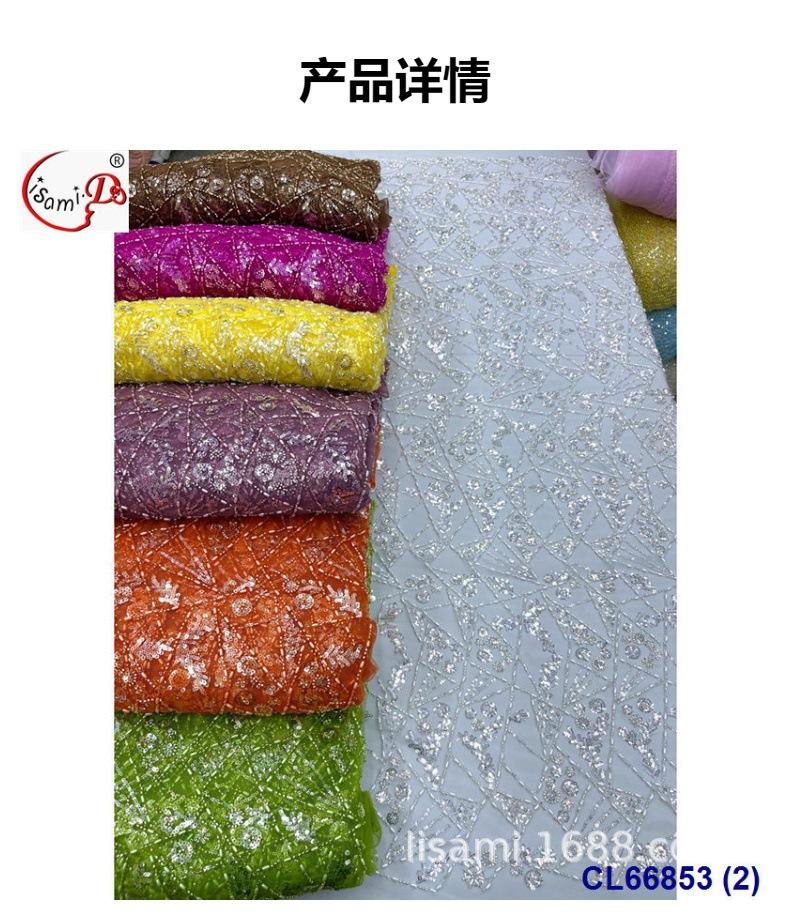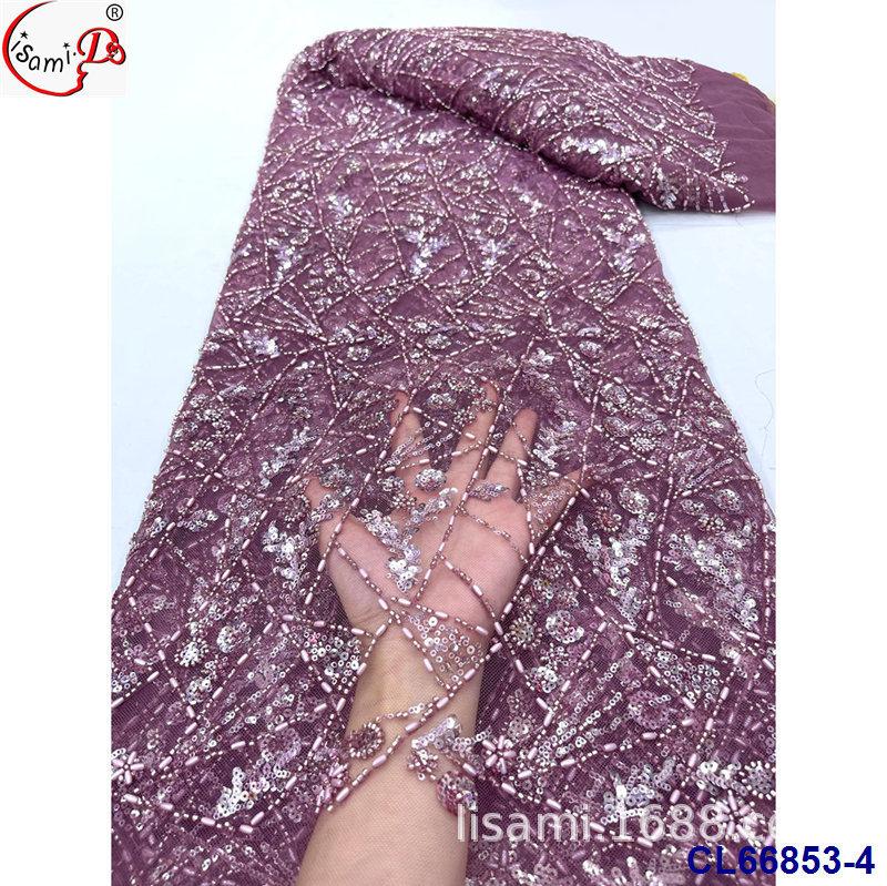 Vestido de novia francés bordado con lentejuelas, tela de encaje simple, tela de encaje con lentejuelas para novia