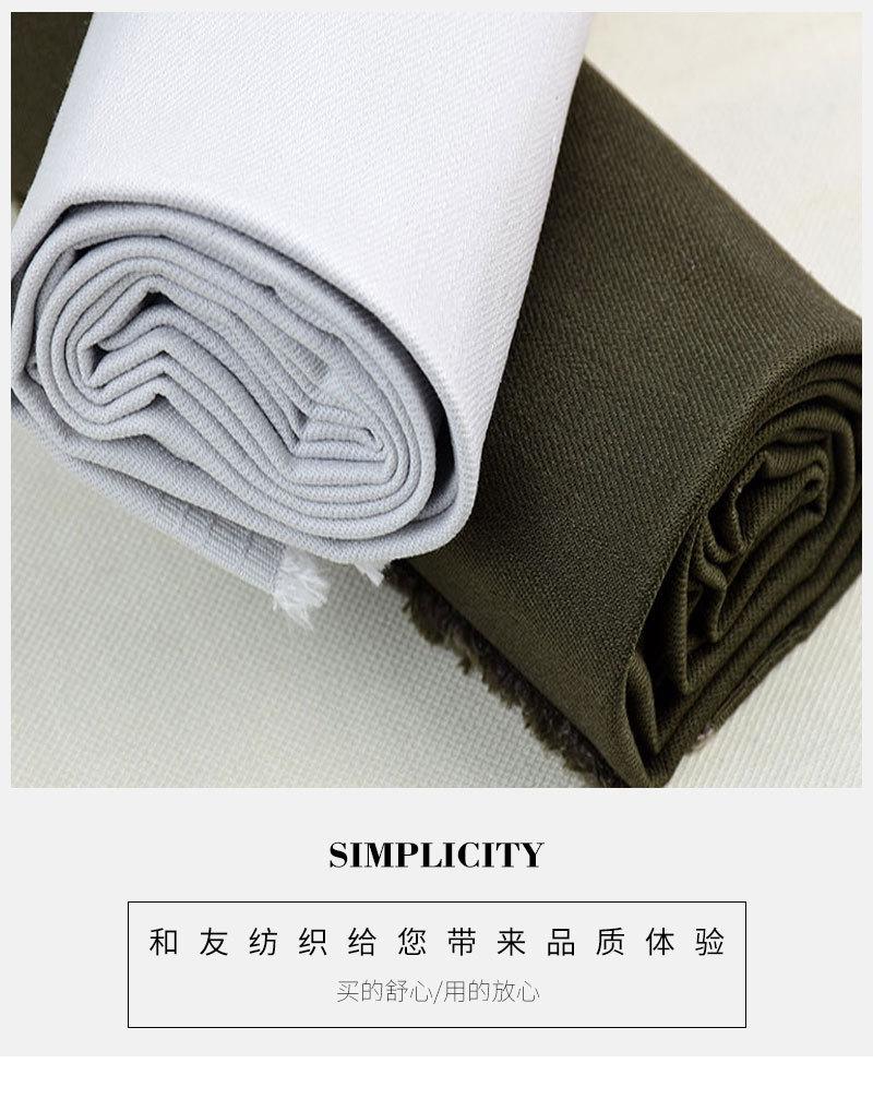 Nuestros productos incluyen sarga elástica en cuatro direcciones, telas para ropa de trabajo elásticas de doble cara, telas estampadas, sarga de algodón puro y telas de lino, algodón elástico en cuatro direcciones, etc. Amigos de todos los ámbitos de la vida son bienvenidos a preguntar.