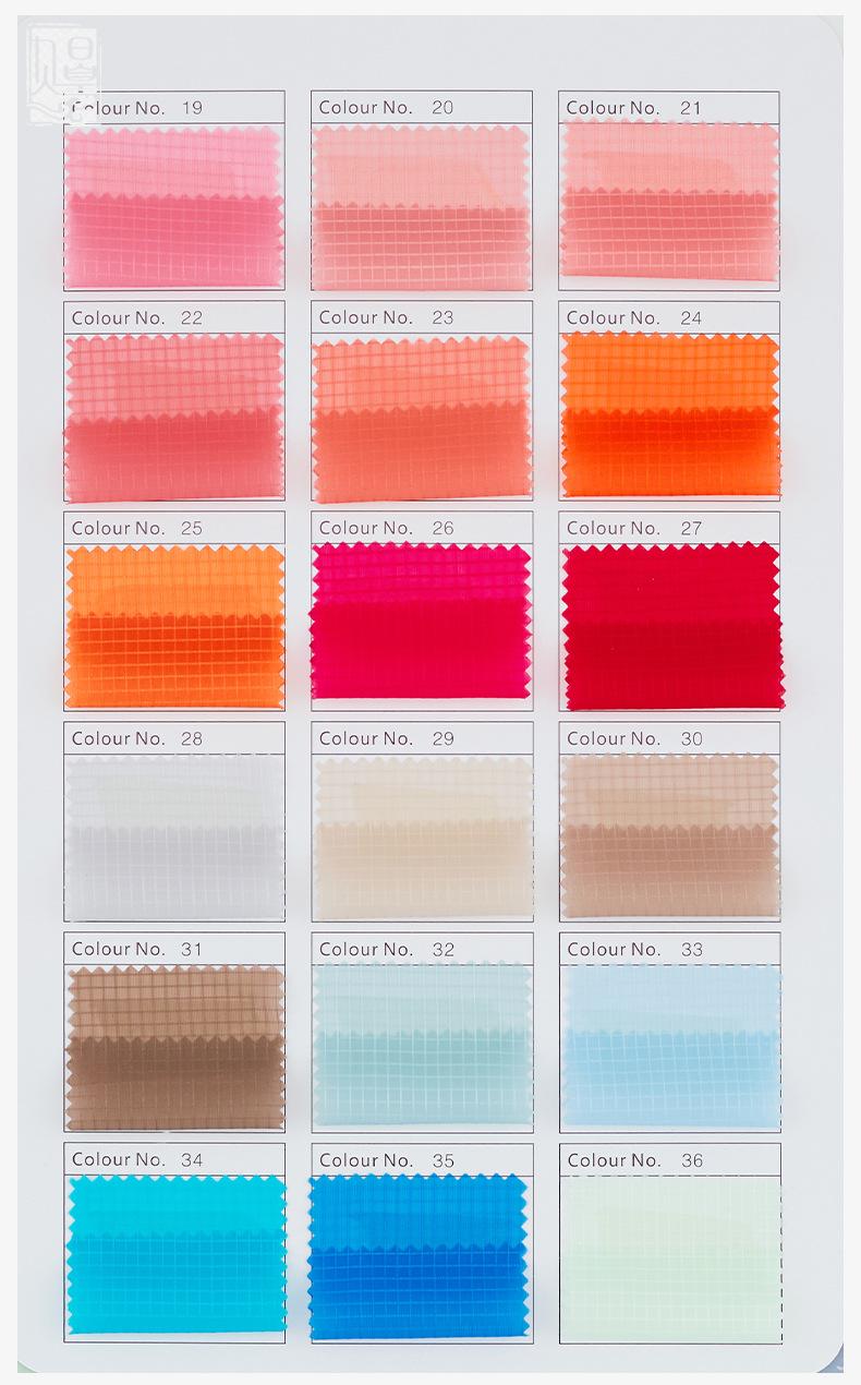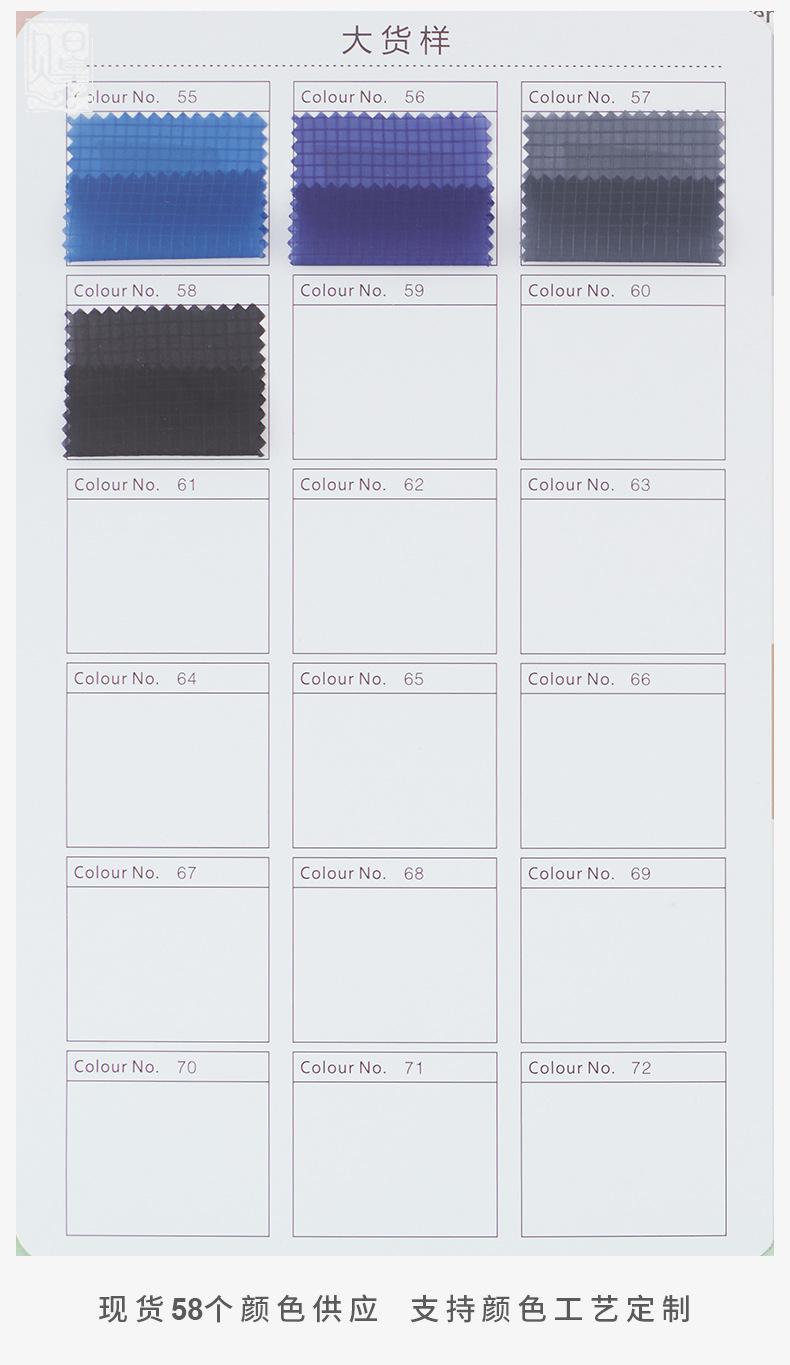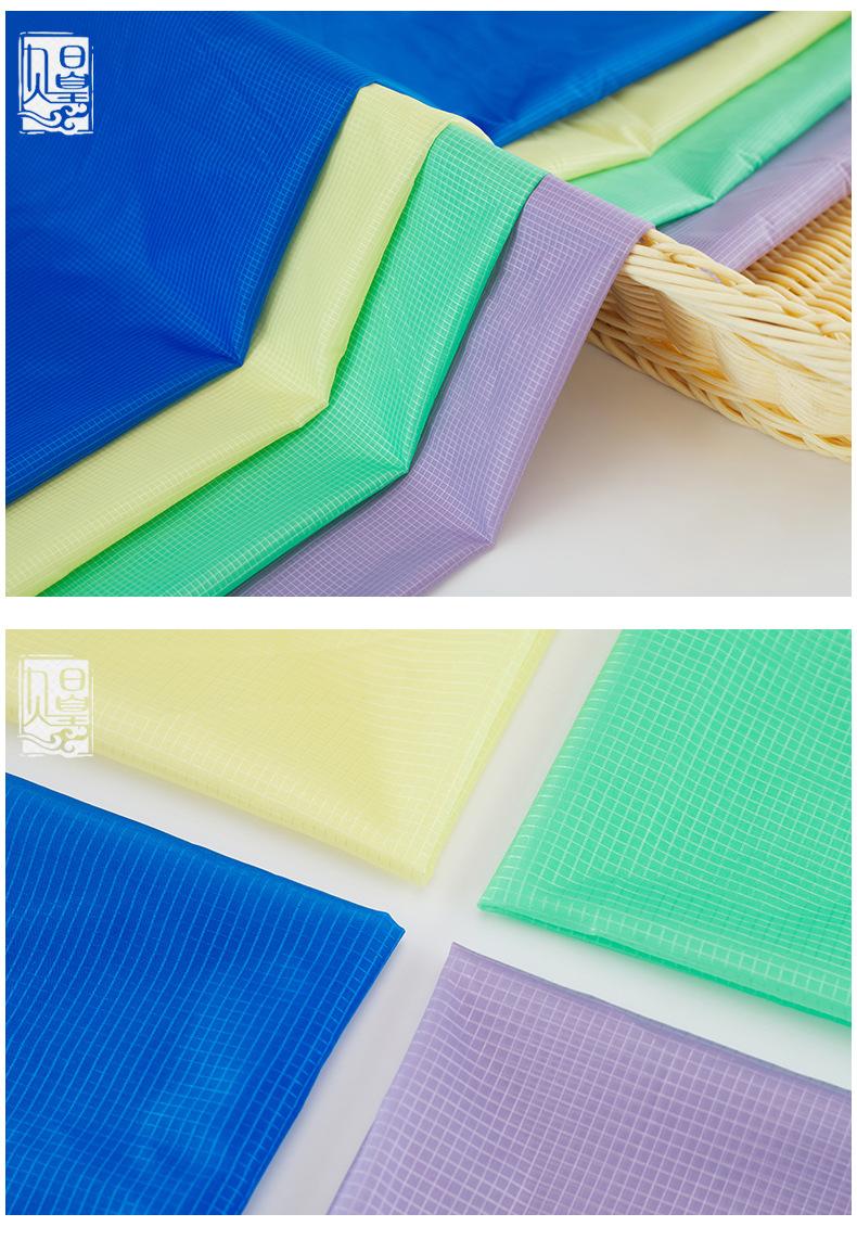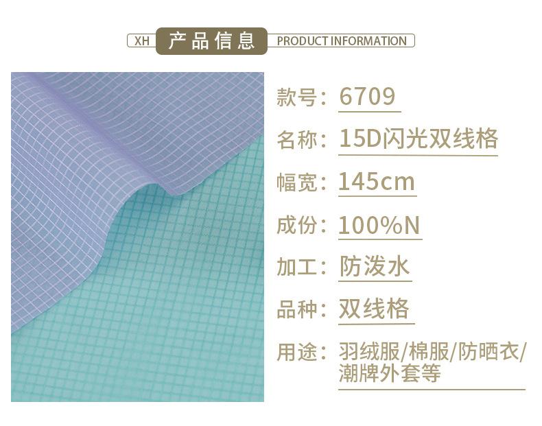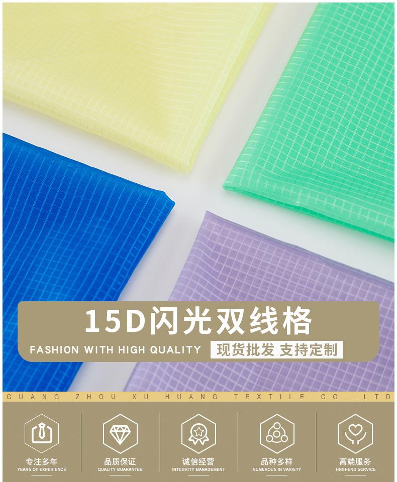 Tejido de nailon con textura de doble línea Flash 15D, protector solar giratorio, tela impermeable a cuadros de doble cara para chaqueta de plumón