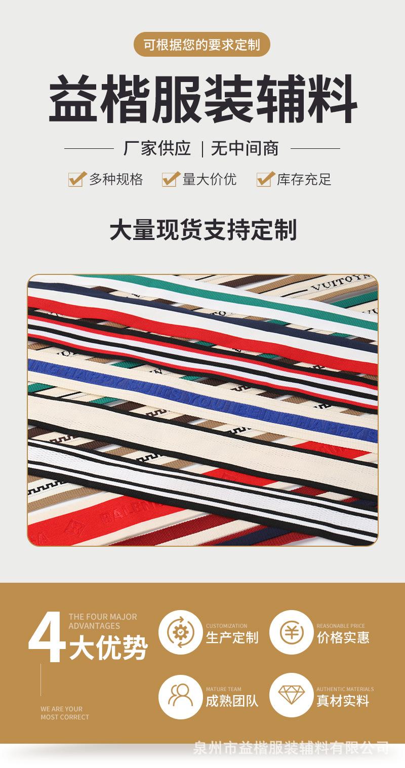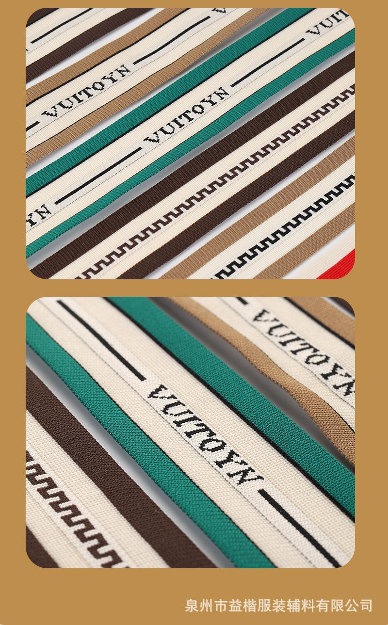 Cinta de poliéster de punto a rayas tricolor especial, accesorio para prendas, cinturón con estampado de letras jacquard