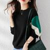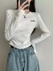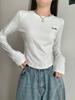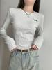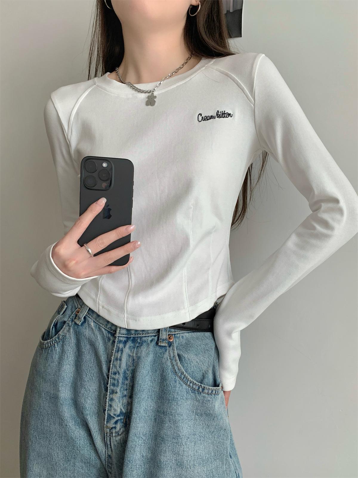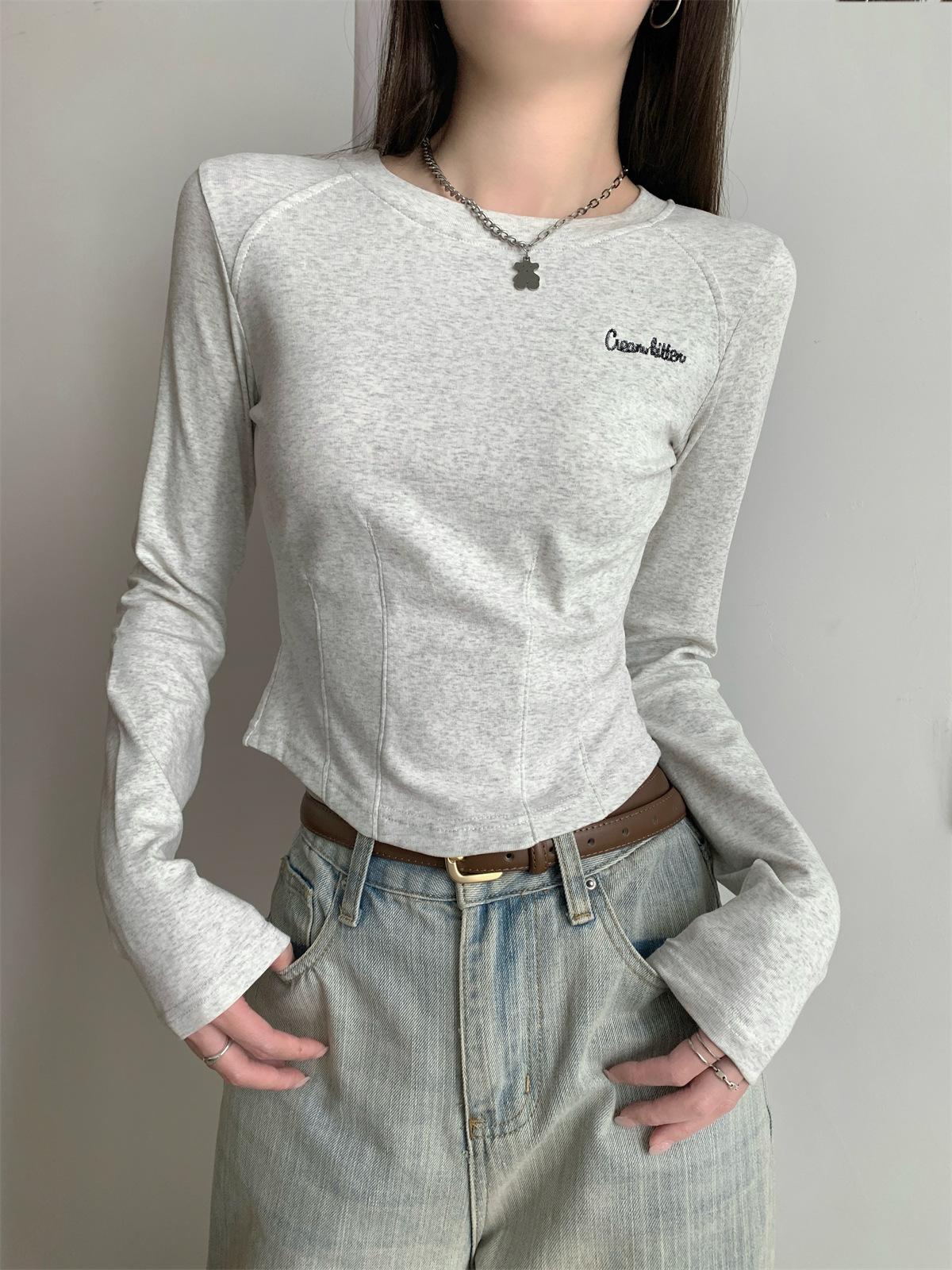 Americano 2025 Nuevo Otoño Estilo Coreano Slim Cuello Redondo Raglán Espiga Letra Diseño Bordado Manga Larga Camiseta Top