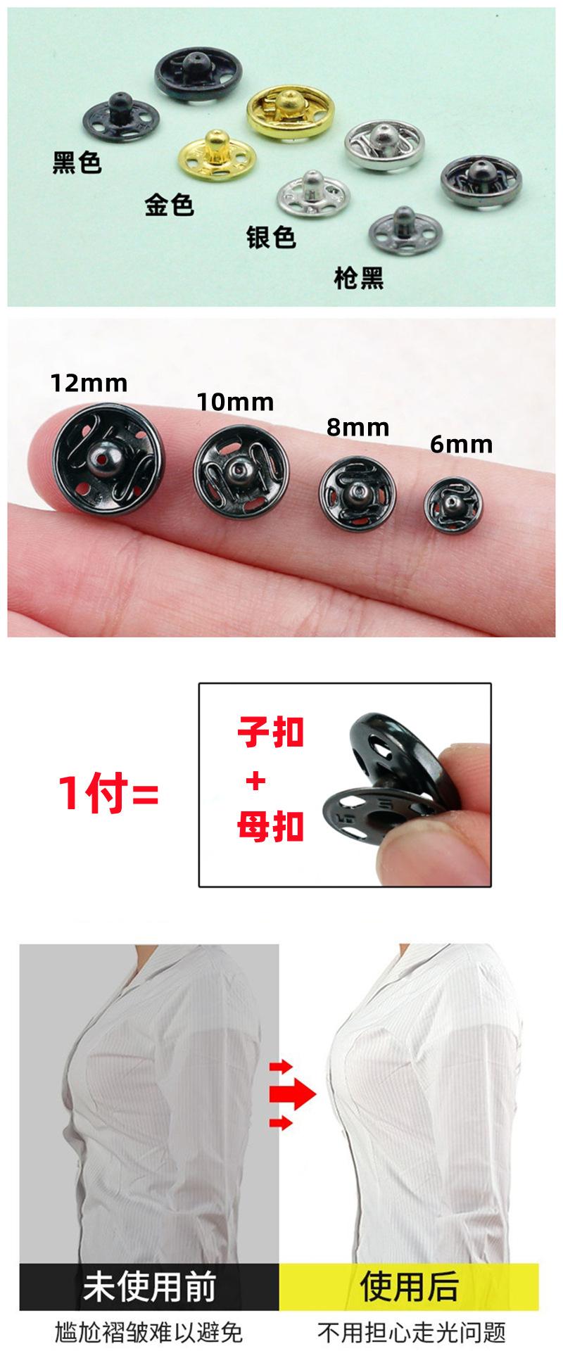 Botón oculto de cobre de fábrica 565, de 6 a 12 mm, para niños, con broche de metal de cartón, venta al por mayor.