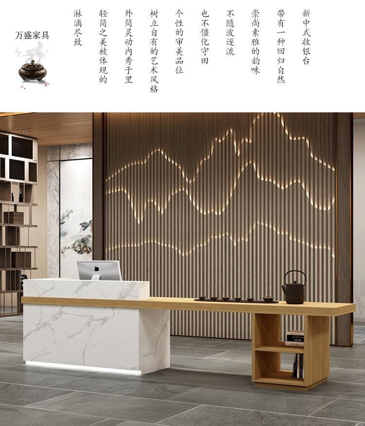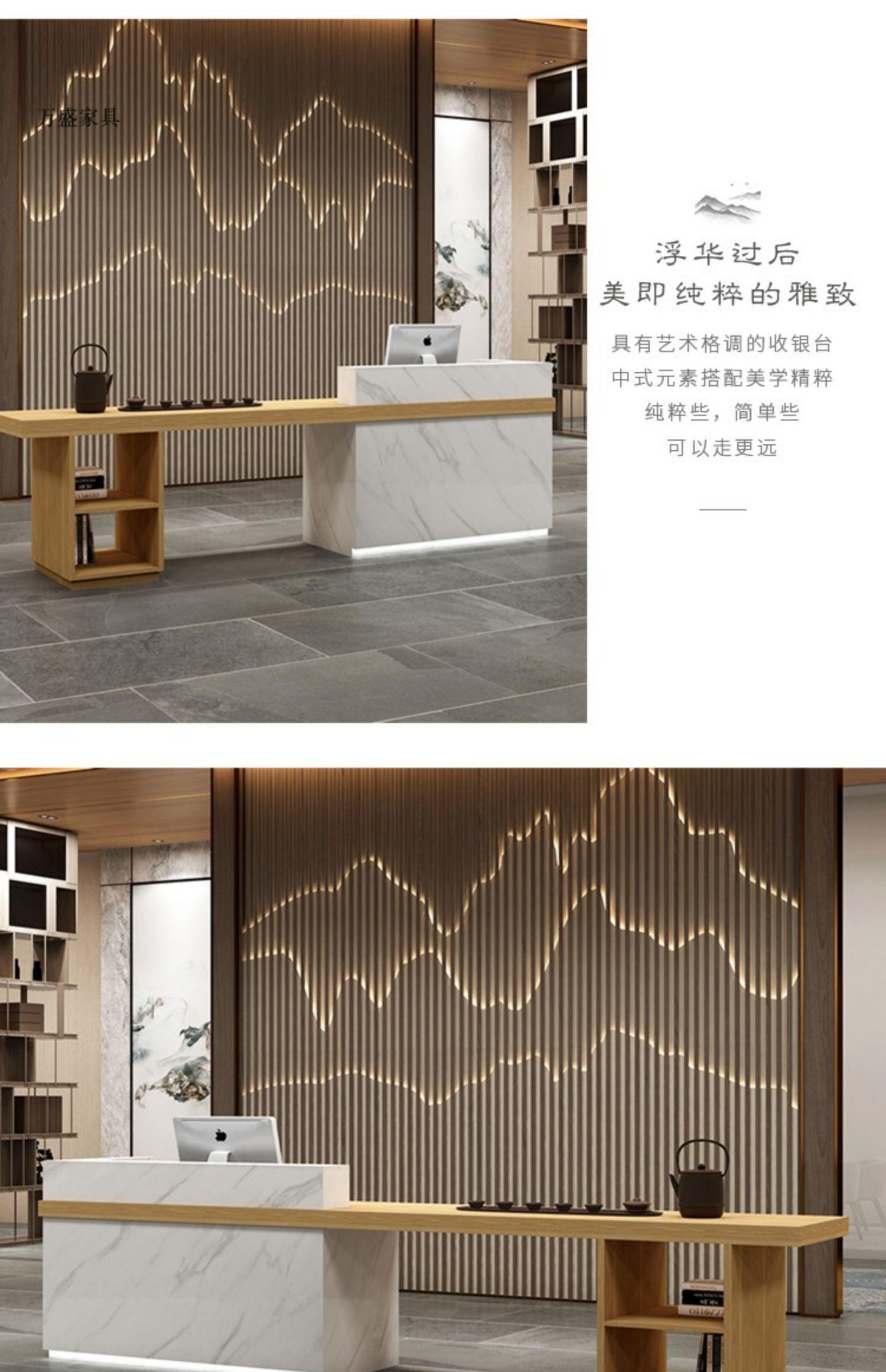 Nuevo Arte Chino Mostrador de recepción mostrador de caja Mostrador comercial de bar de casa de té mármol de imitación salón de belleza compañía mostrador de recepción