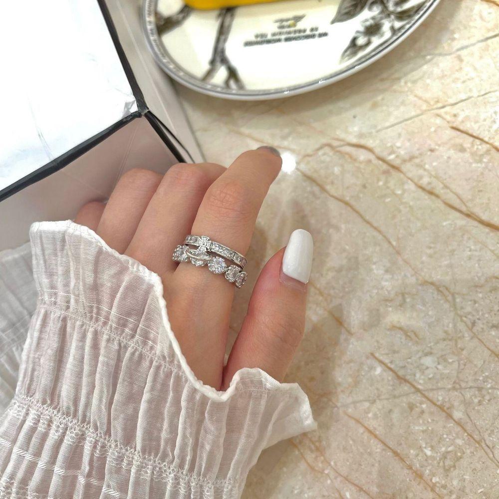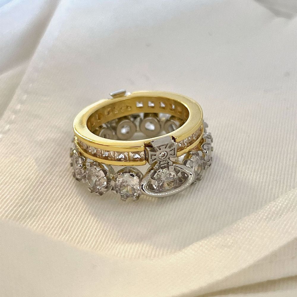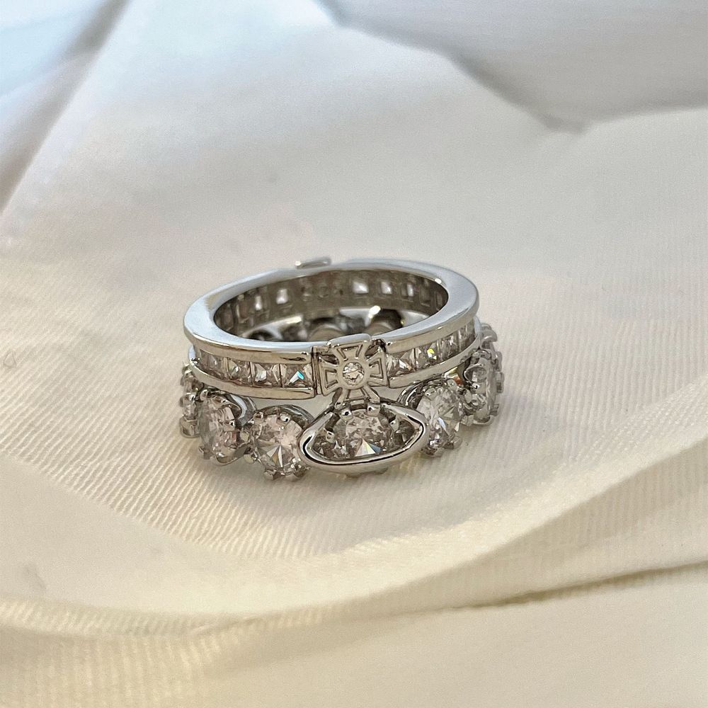Anillo Saturno Anillo Abierto Doble Capa Dividido Flash Diamante Anillo Corona de Alta Gama Diseño Lujoso Superpuesto