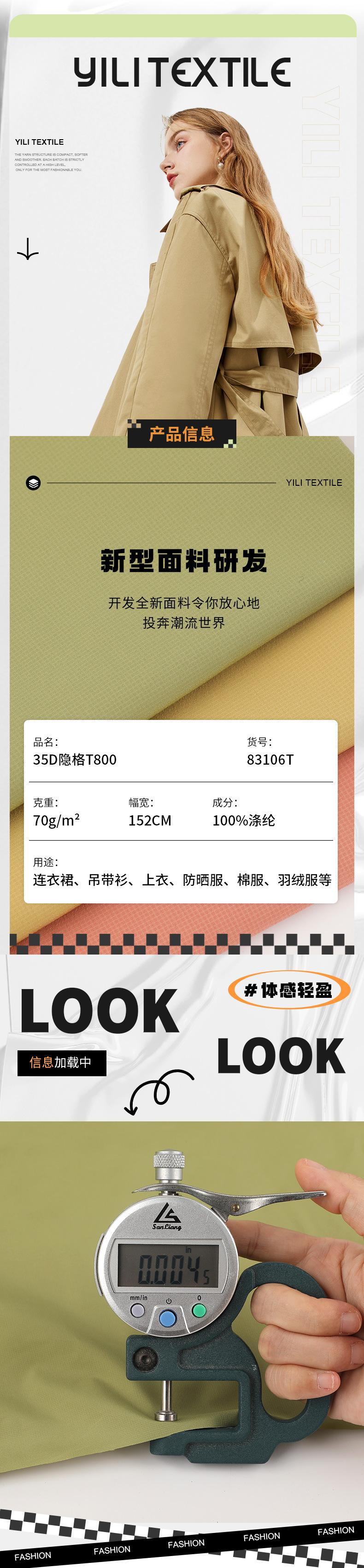 Chamarra de tela impermeable T800 jacquard de cuadros ocultos Spot 35D Ropa ligera de protección solar Tejido de chamarra de plumón de algodón