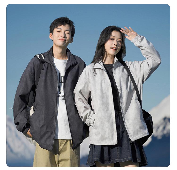 Chaqueta estilo americano vintage de otoño 2024, color liso, estilo para amantes del cuello, informal, holgada y combinable, 0662
