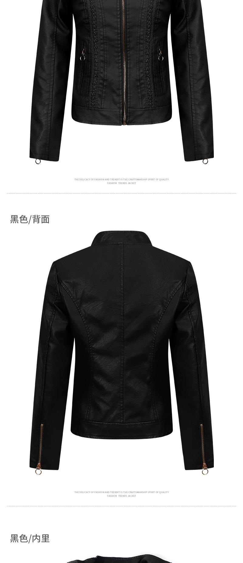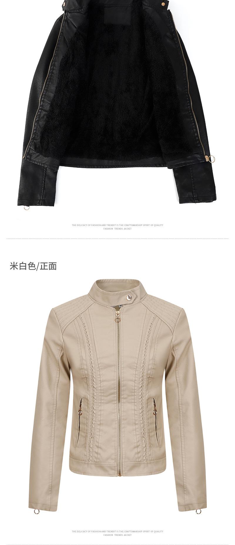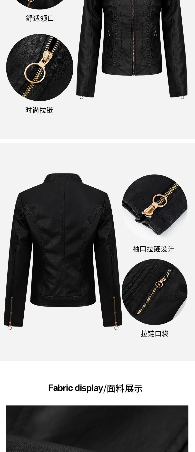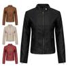 Chaqueta de Cuero Slim-Fit de Cuello Mao Europea y Americana de Amazon para Mujer, Chaqueta de Motociclista de Cuero PU con Forro Polar, Gruesa, en Stock