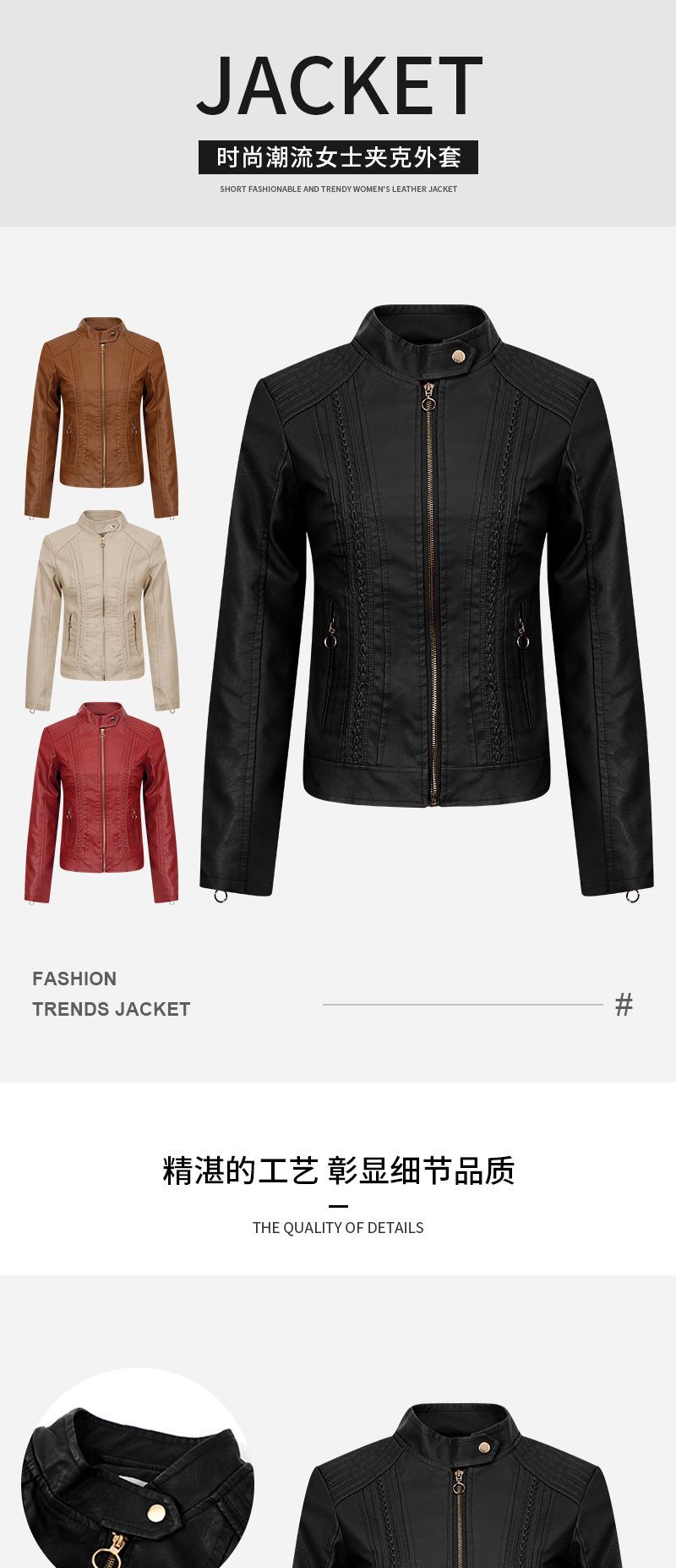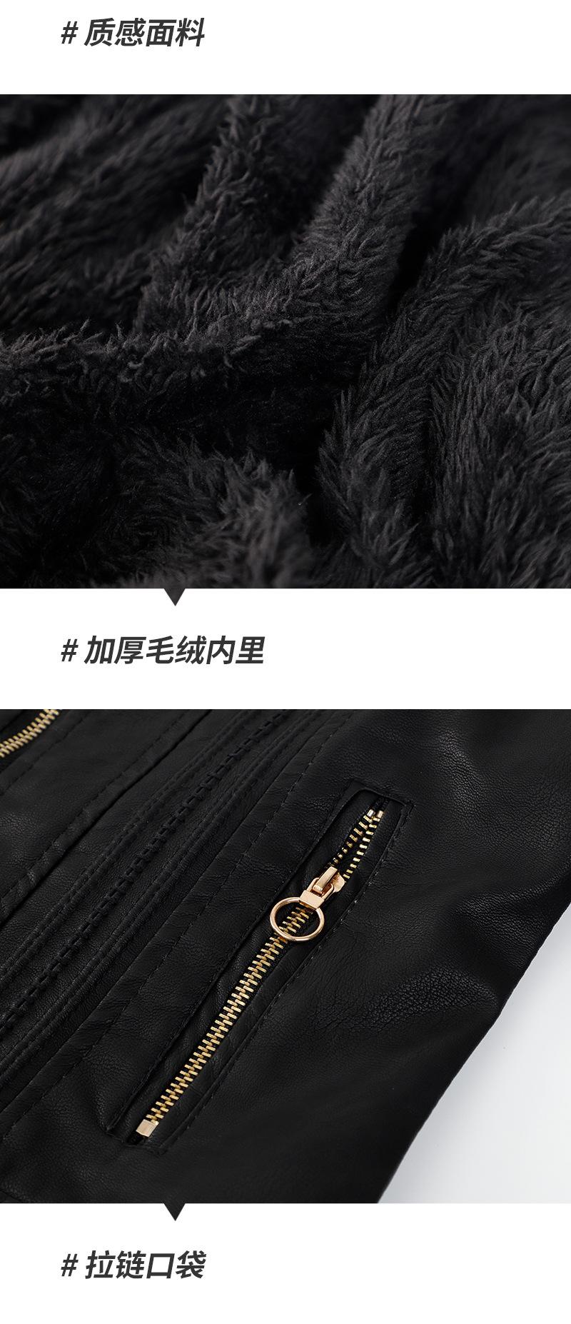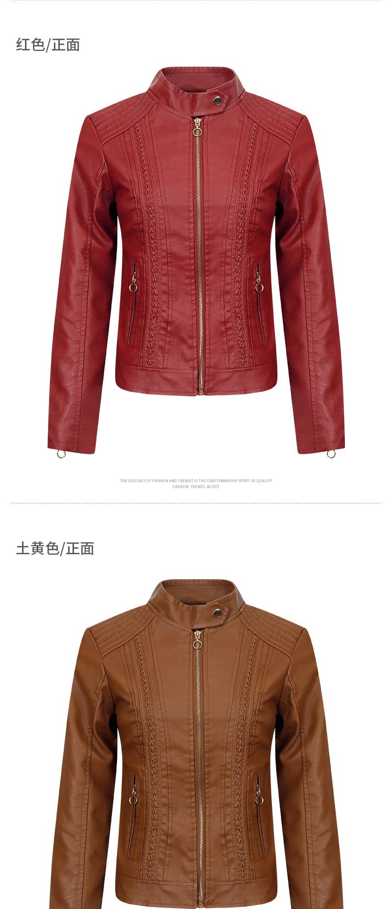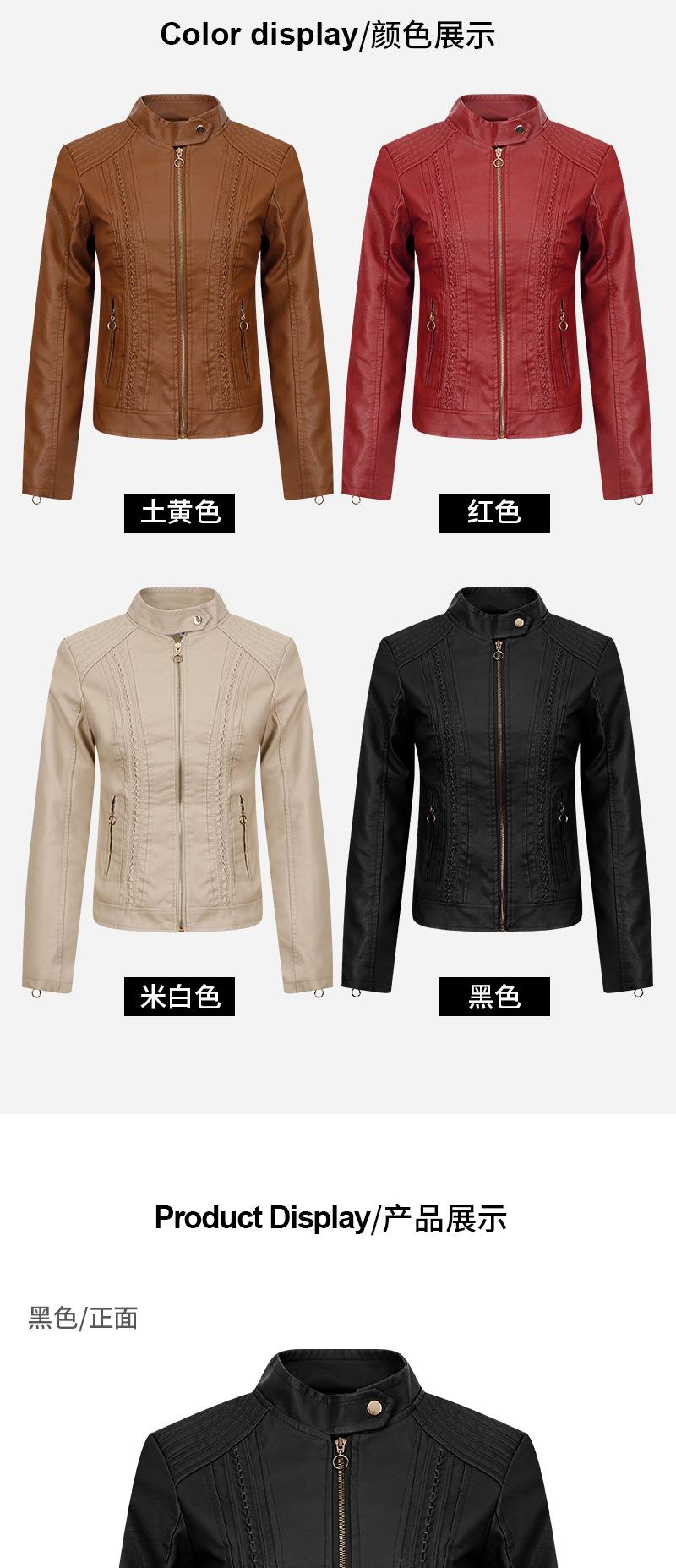 Chaqueta de Cuero Slim-Fit de Cuello Mao Europea y Americana de Amazon para Mujer, Chaqueta de Motociclista de Cuero PU con Forro Polar, Gruesa, en Stock