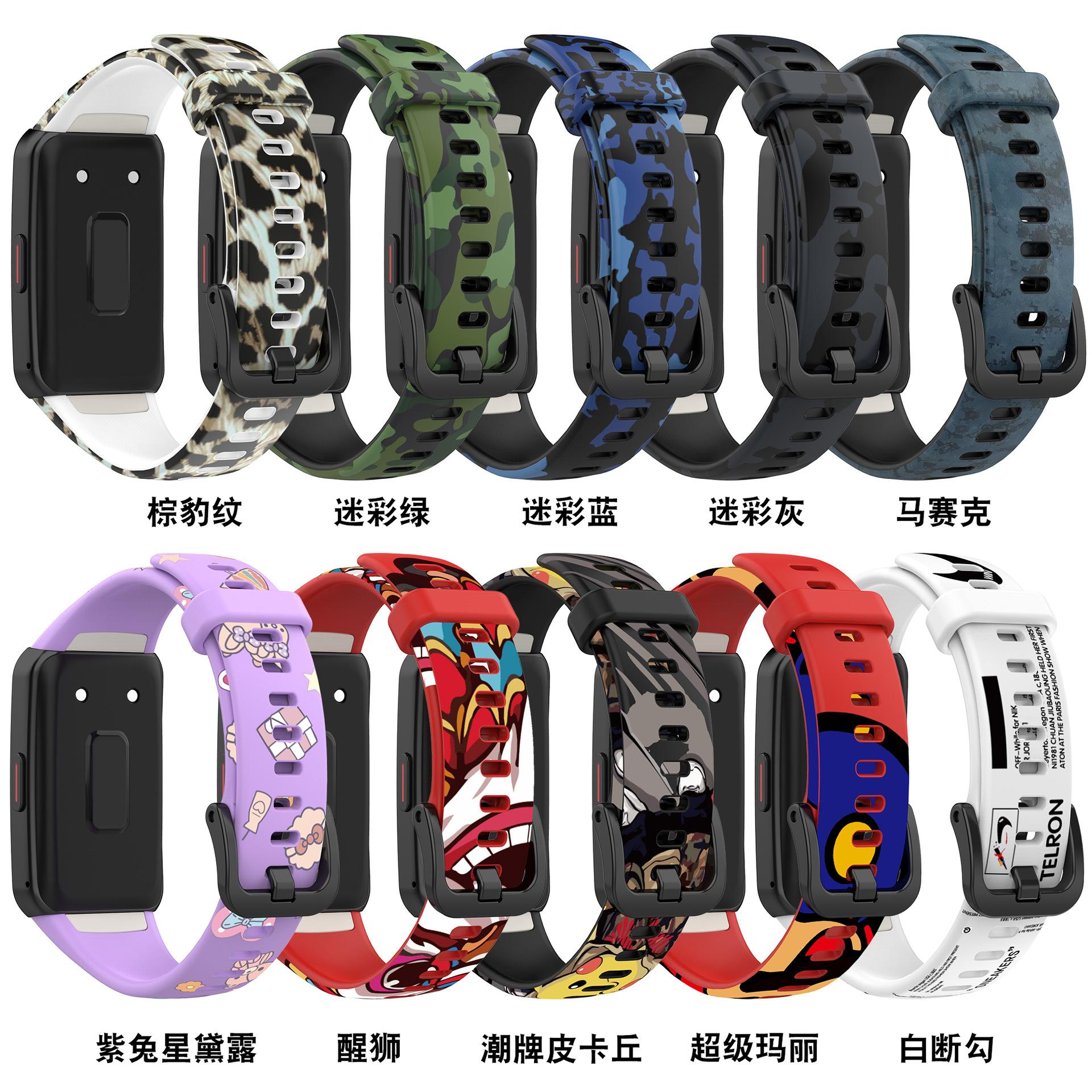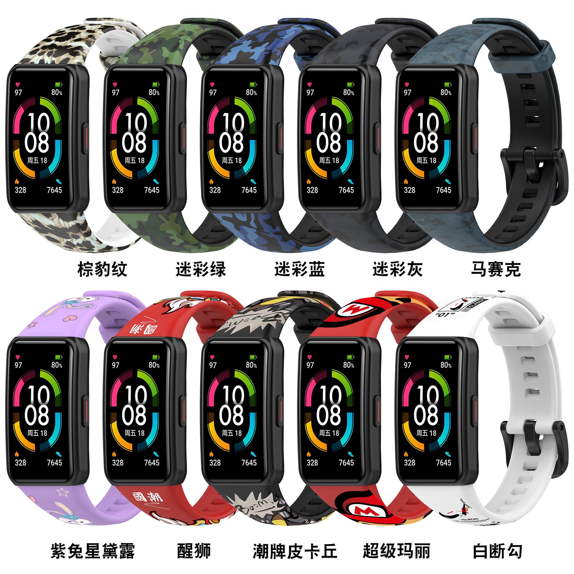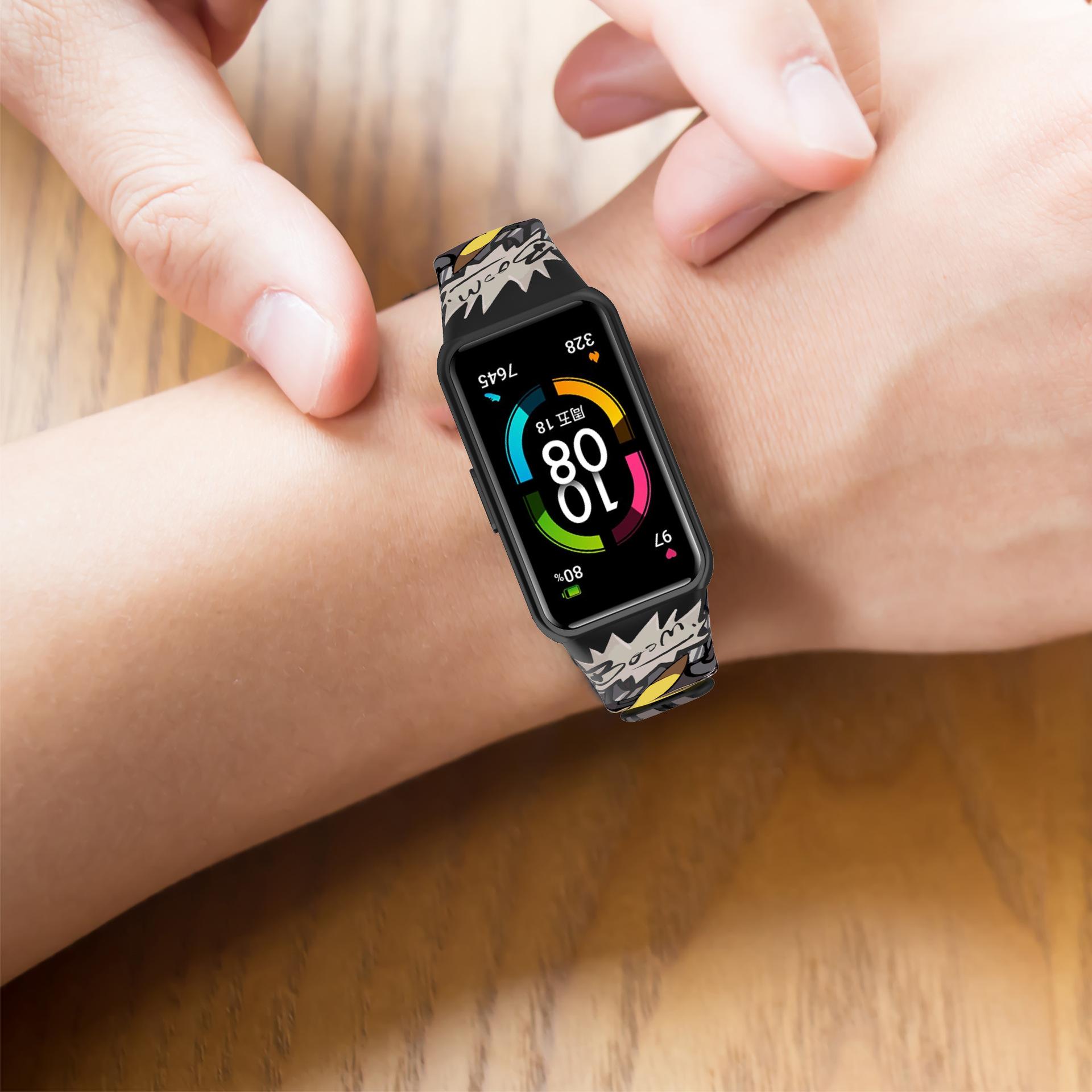 Adecuado para pulsera Huawei 6 correa con patrón Honor band 6 reloj deportivo correa de silicona pulsera impresa adhesiva punto 10 colores