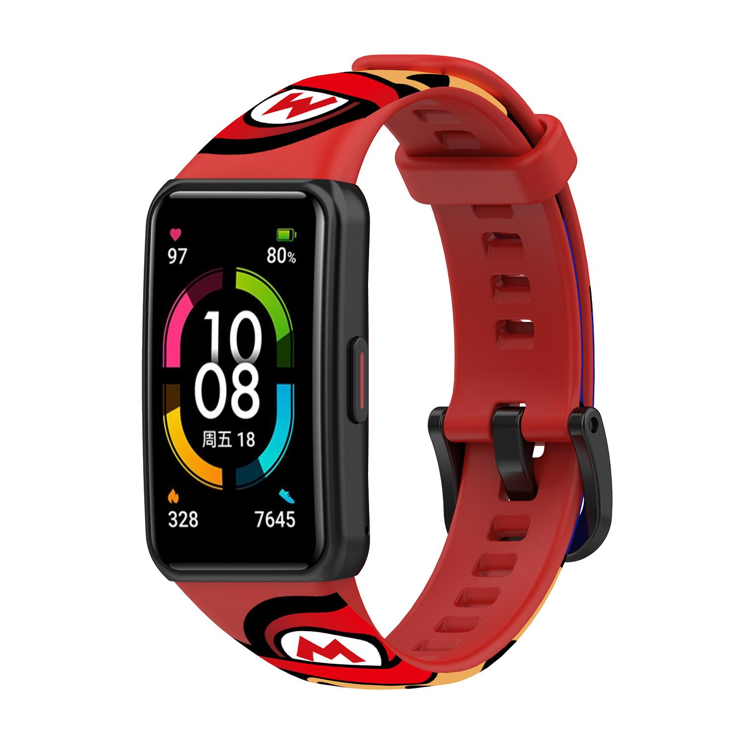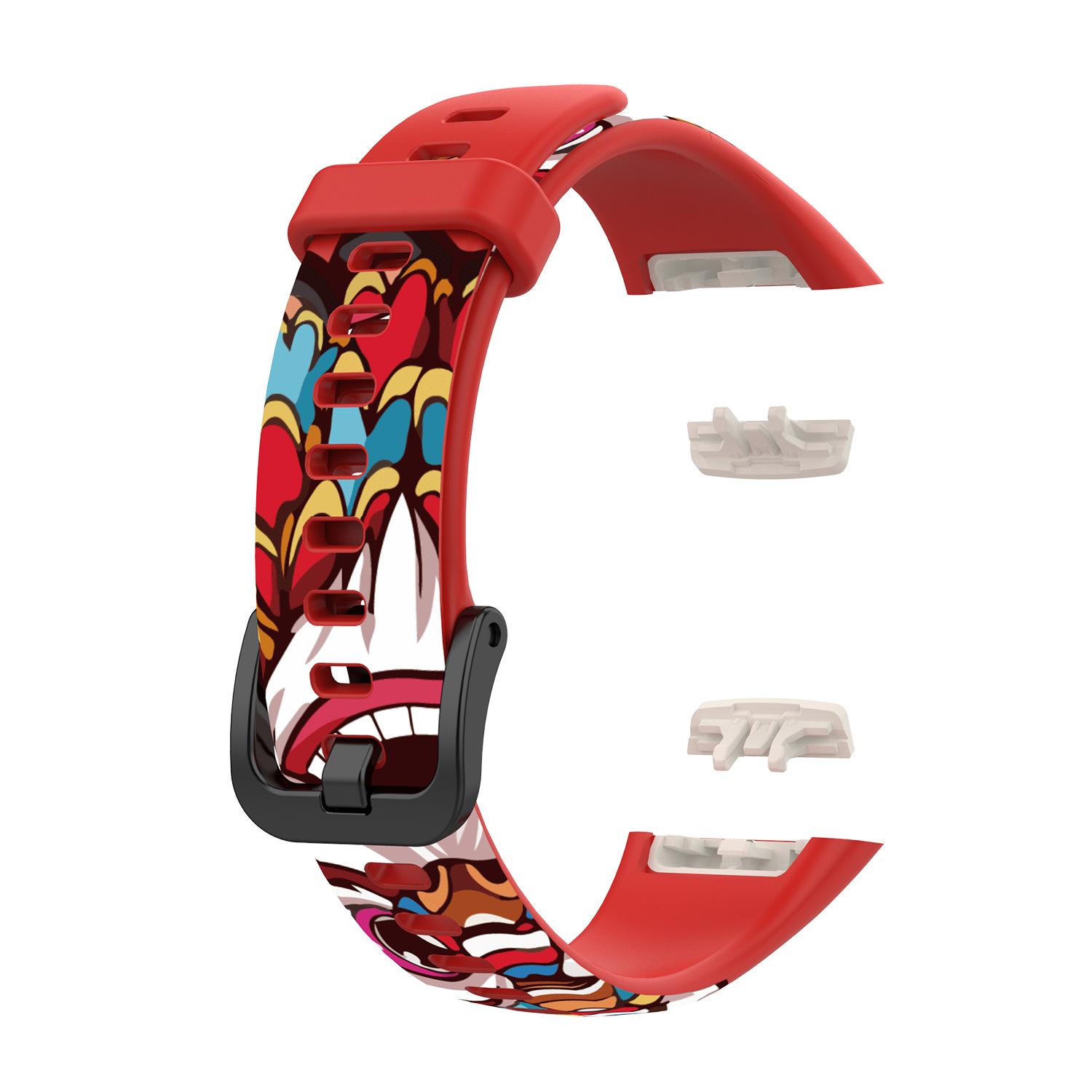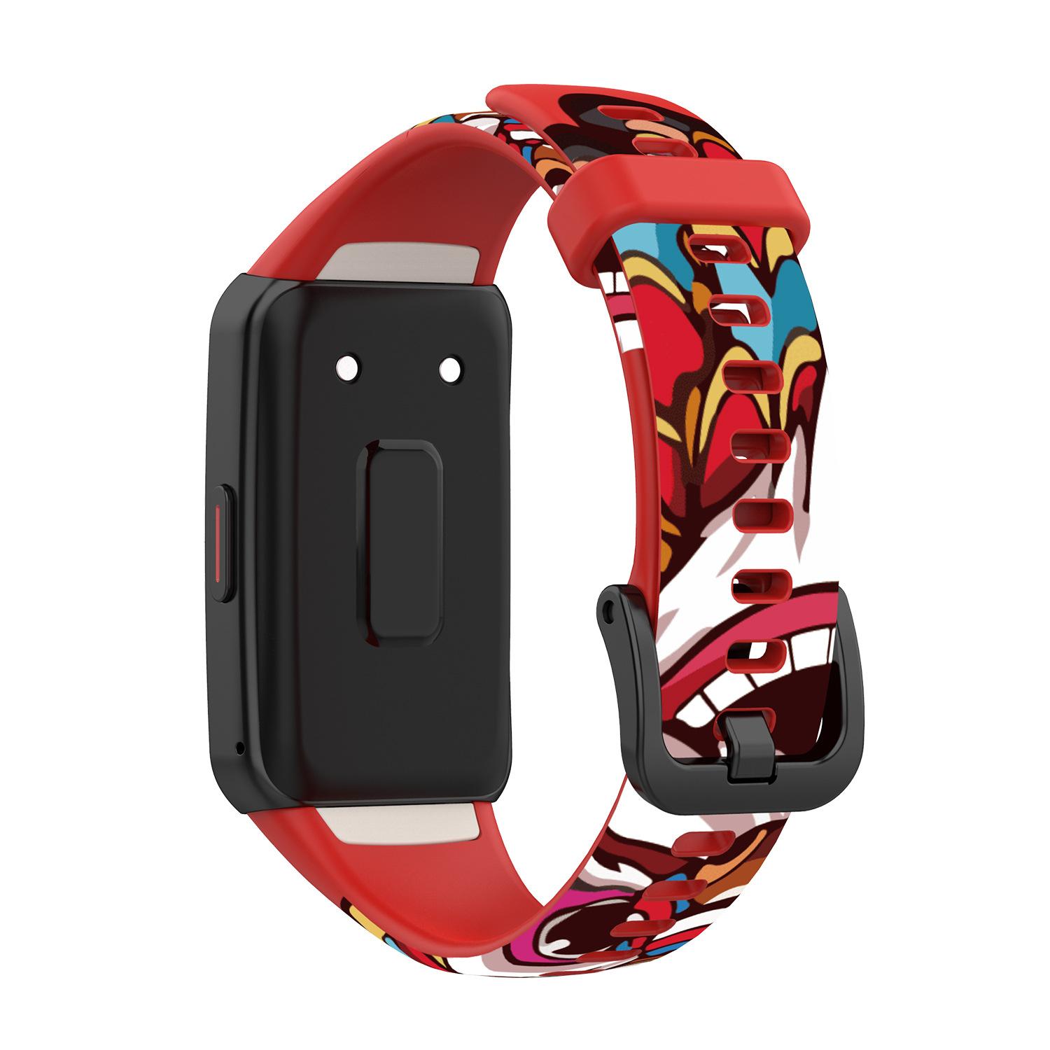 Adecuado para pulsera Huawei 6 correa con patrón Honor band 6 reloj deportivo correa de silicona pulsera impresa adhesiva punto 10 colores