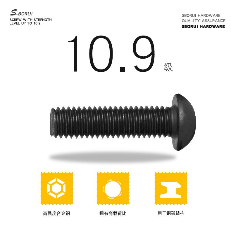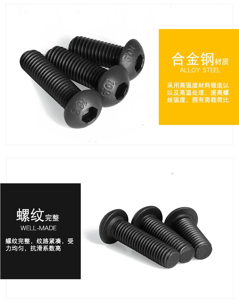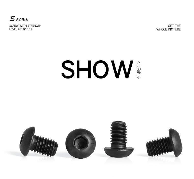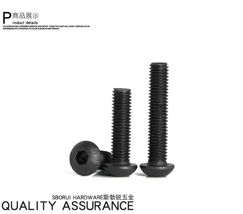 Tornillo de cabeza hueca hexagonal de cabeza redonda de grado 10,9 M3M4M5M6M8, tornillo de cabeza plana de alta resistencia, tornillo negro
