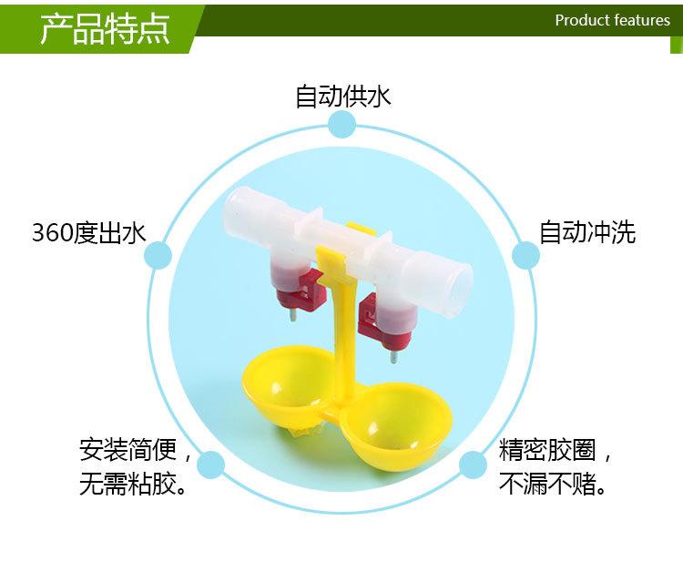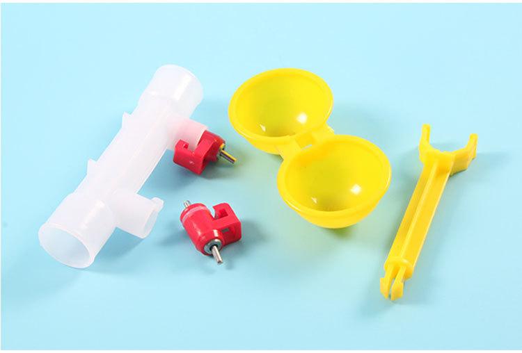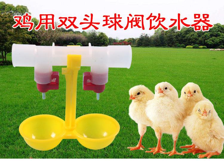 Bebedero automático para pollos, bebedero de dos cabezales para pollos, bebedero automático con válvula de bola y tetina para pollos, bebedero con taza colgante doble.