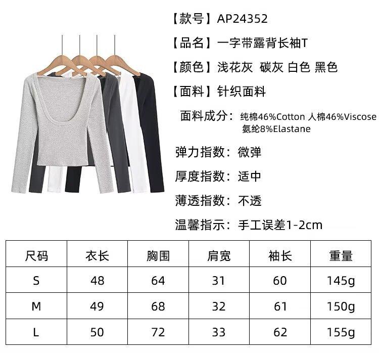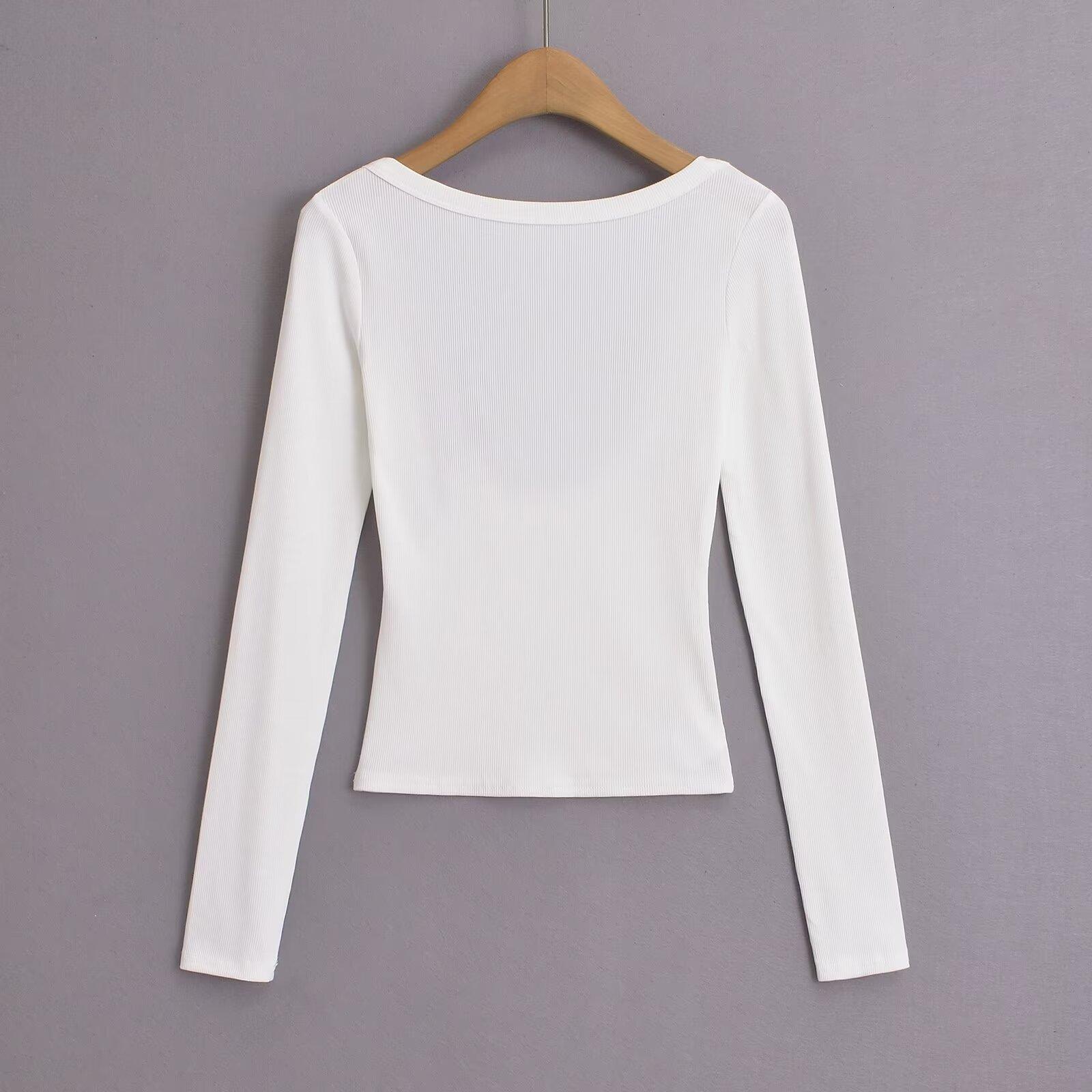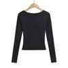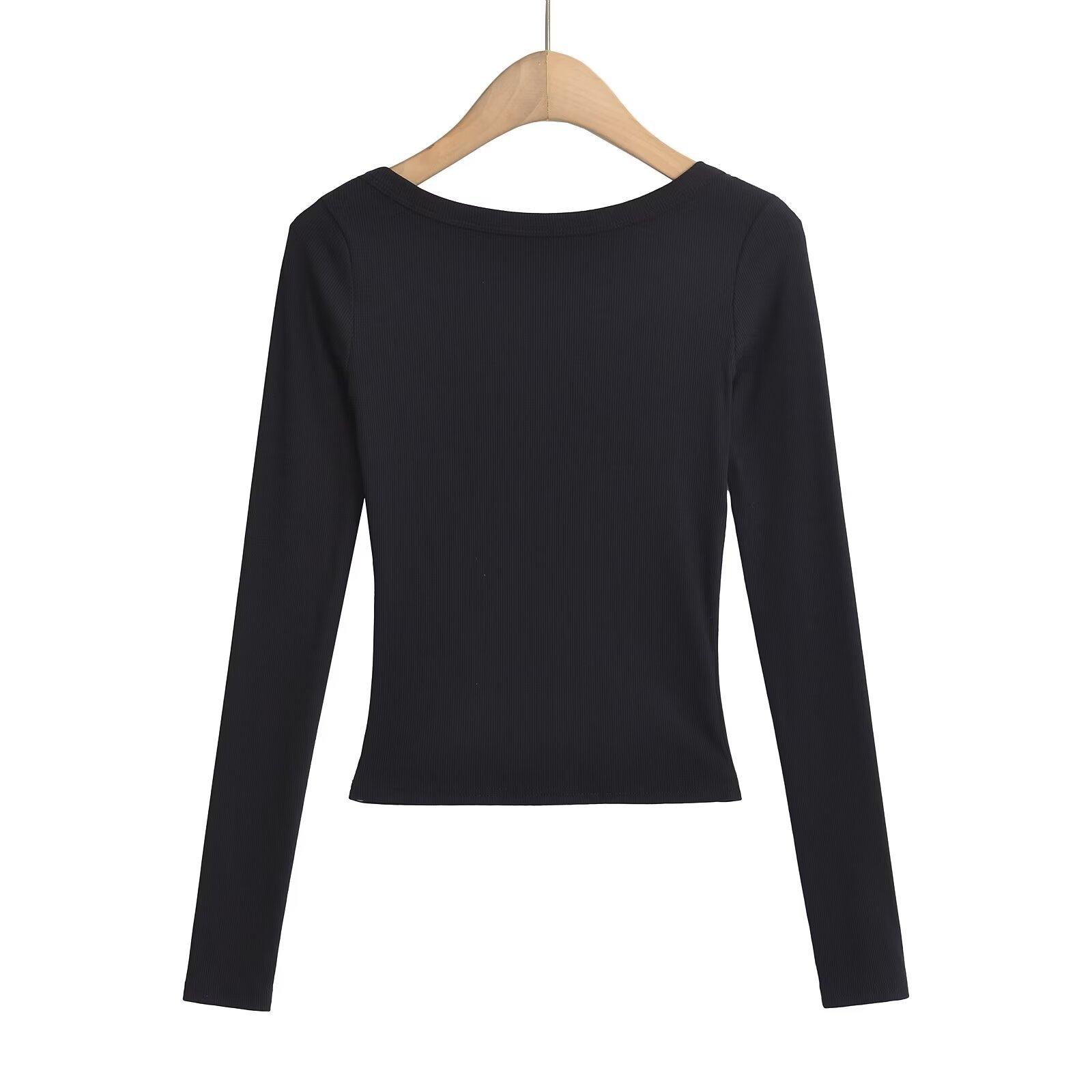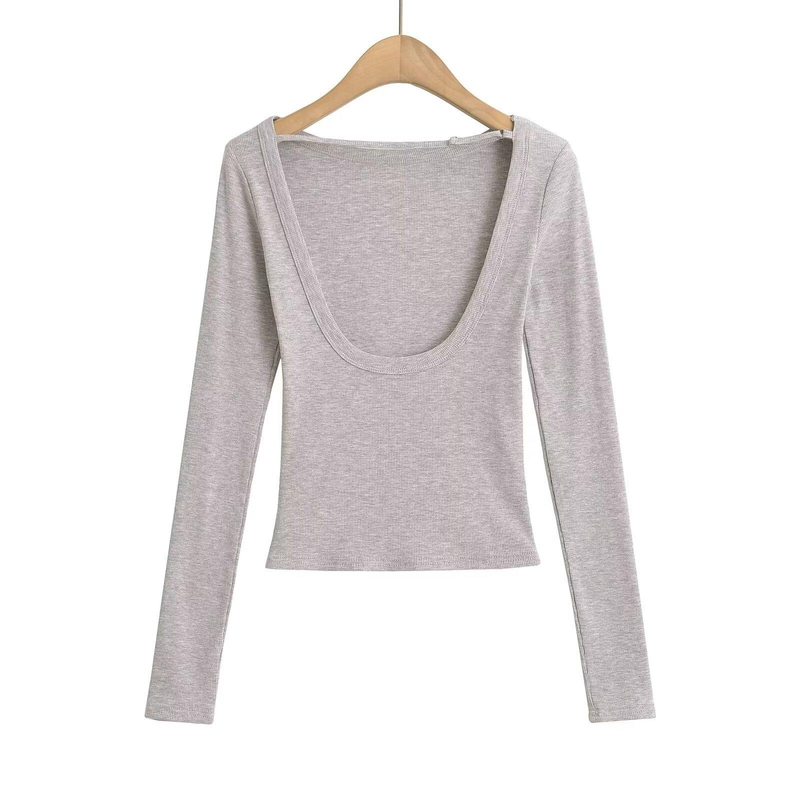 Nueva Moda Elegante Sexy Picante Espalda Descubierta Color Sólido Ajustado Camisa Corta de Manga Larga para Mujer S20821