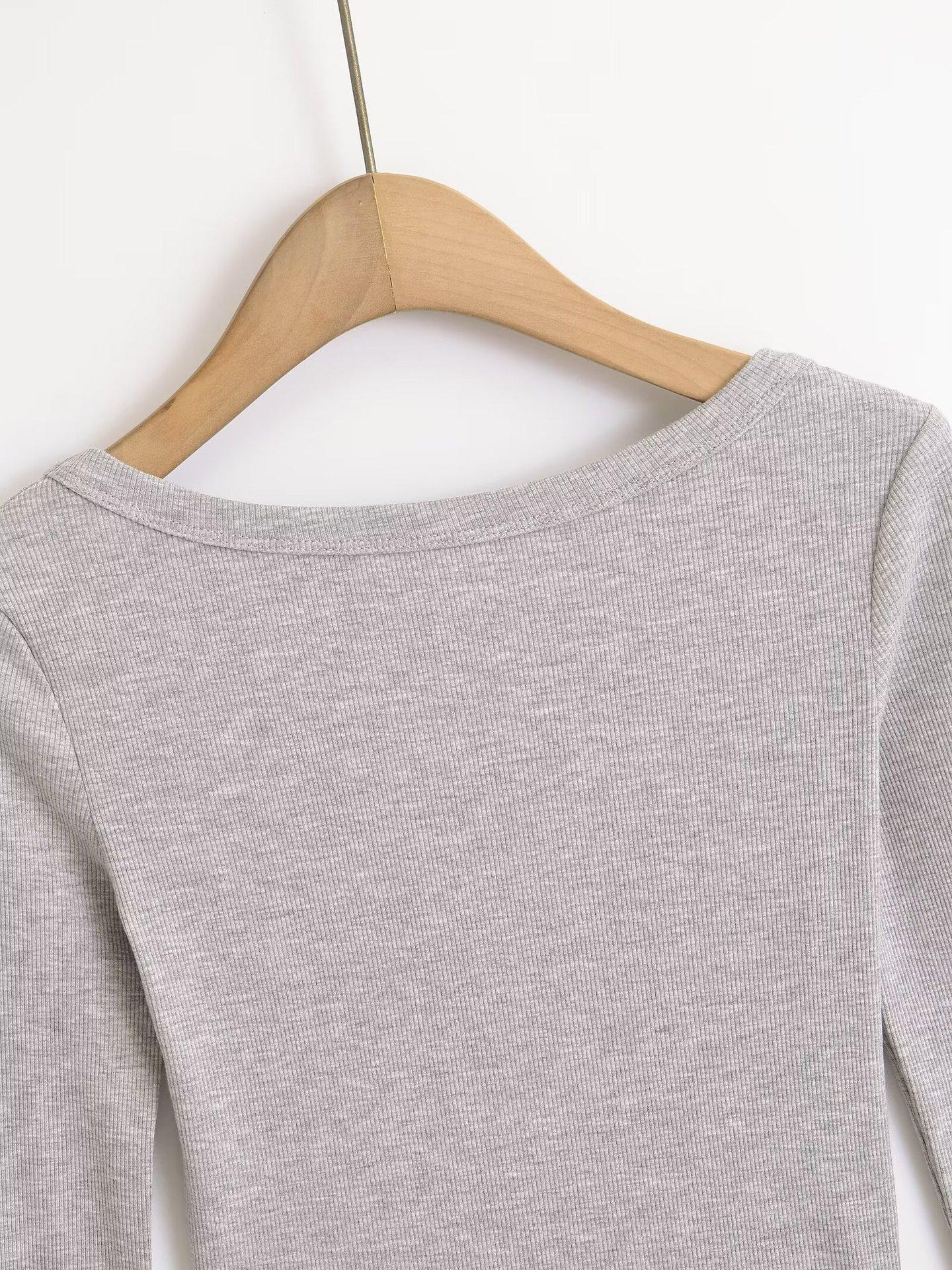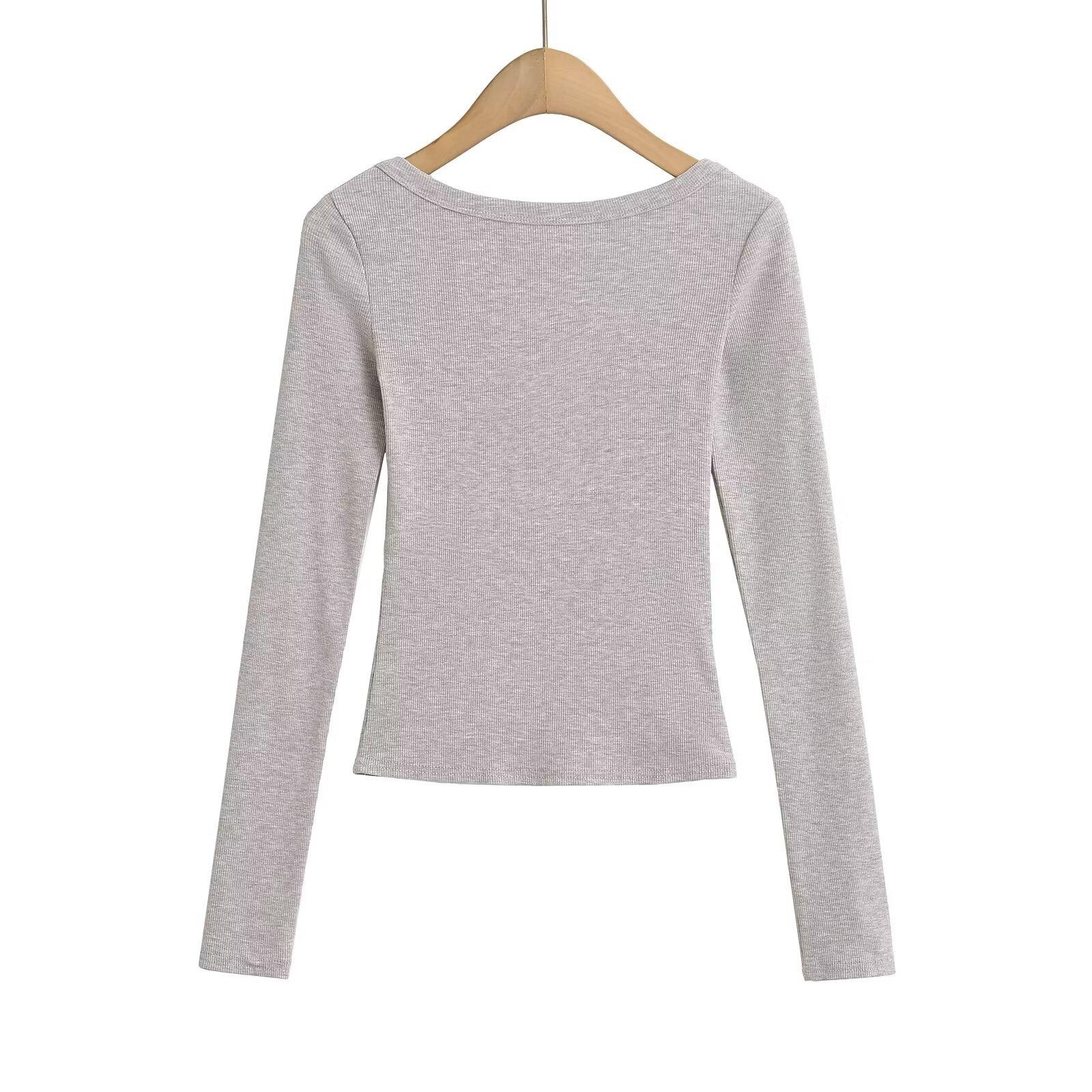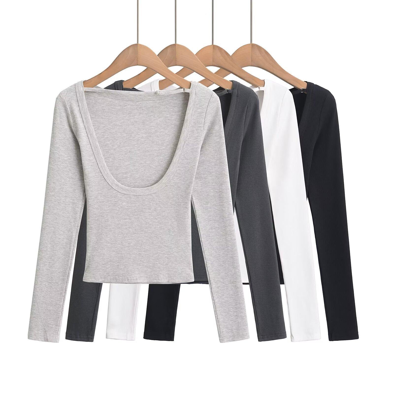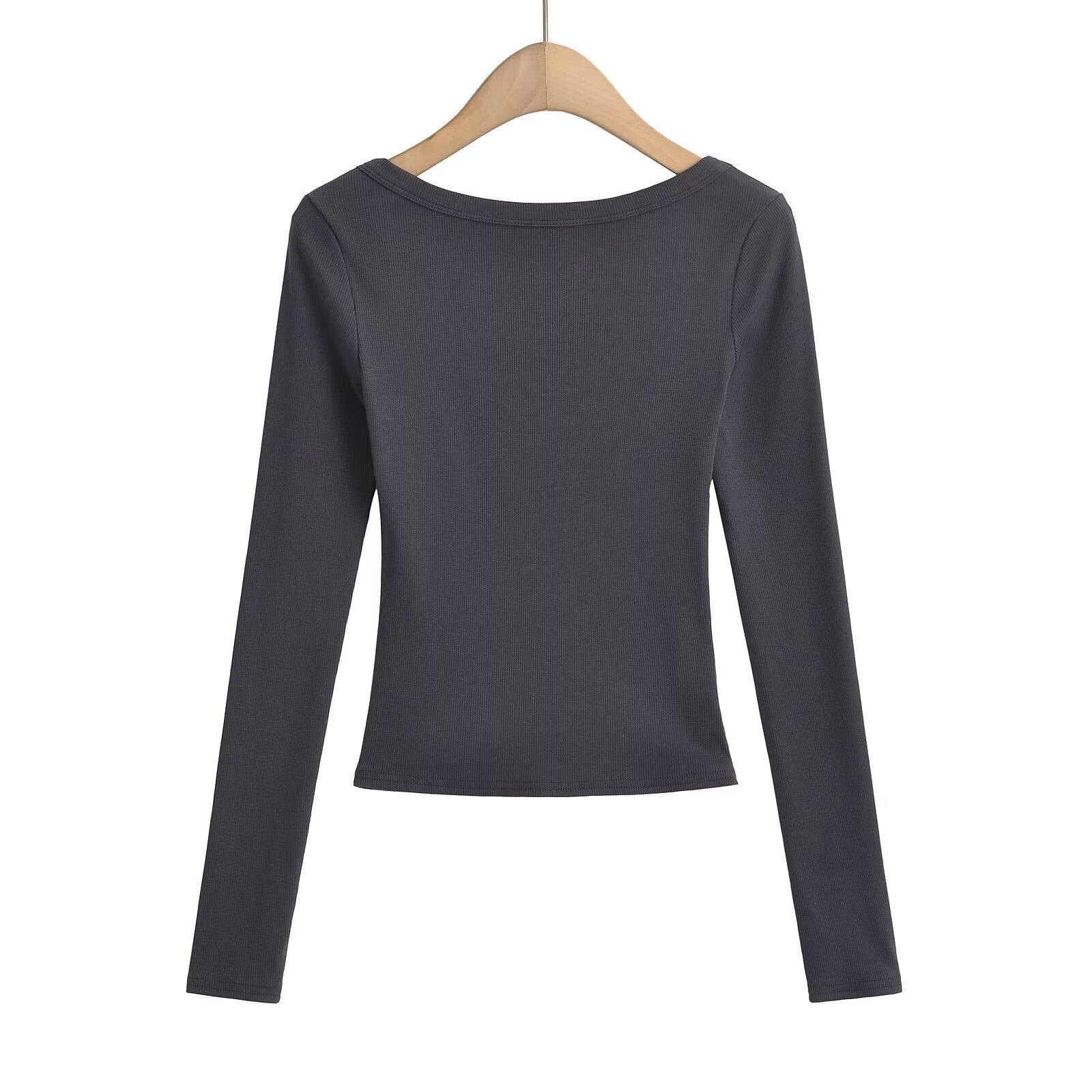 Nueva Moda Elegante Sexy Picante Espalda Descubierta Color Sólido Ajustado Camisa Corta de Manga Larga para Mujer S20821