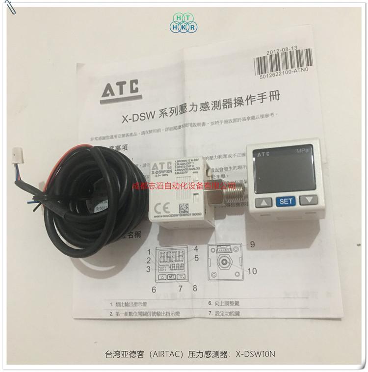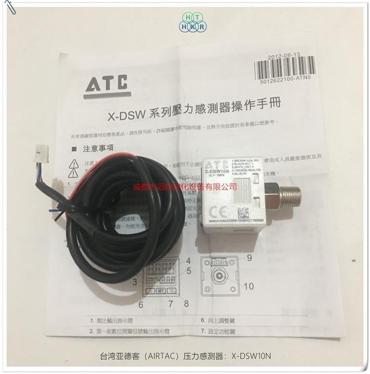 X-DSW10NSensor de Presión AIRTAC/Interruptor de Presión Digital ElectrónicoIntroducción de parámetros técnicos: Potencia de entrada 12 a 24 VCC más o menos 10% sin aislamiento, consumo de energía hasta 40 mA, tipo de salida de corriente hasta 60 mA, forma de presión gas no corrosivo, medición de presión de aire relativa, rango de medición menos 100 kPa a 1000 kPa, presión soportada hasta 1500 kPa, precisión de medición más o menos 3% rango completo, error de temperatura más o menos 2%, pantalla de ajuste pantalla LCD de doble fila, puede mostrar valor medido de 4 dígitos y pantalla de ajuste de 3.5 dígitos, estado de salida pantalla LCD, modo de visualización se puede configurar según el modo pantalla de tres colores, ciclo de visualización 100 ms, 250 ms, 500 ms, 1000 ms, número de grupo de salida dos grupos incorporados de salida digital de cristal NPN o PNP y un grupo de salida analógica, tamaño de control de gas 1/8, orificio interior M5, rango de temperatura de funcionamiento 0-50 grados Celsius, rango de temperatura ambiente de almacenamiento menos 20 a 65 grados Celsius, altitud de funcionamiento inferior a 200 metros, origen China