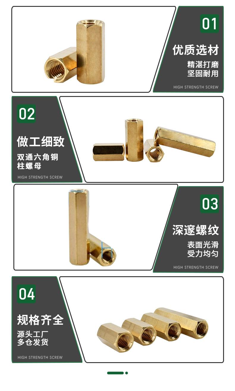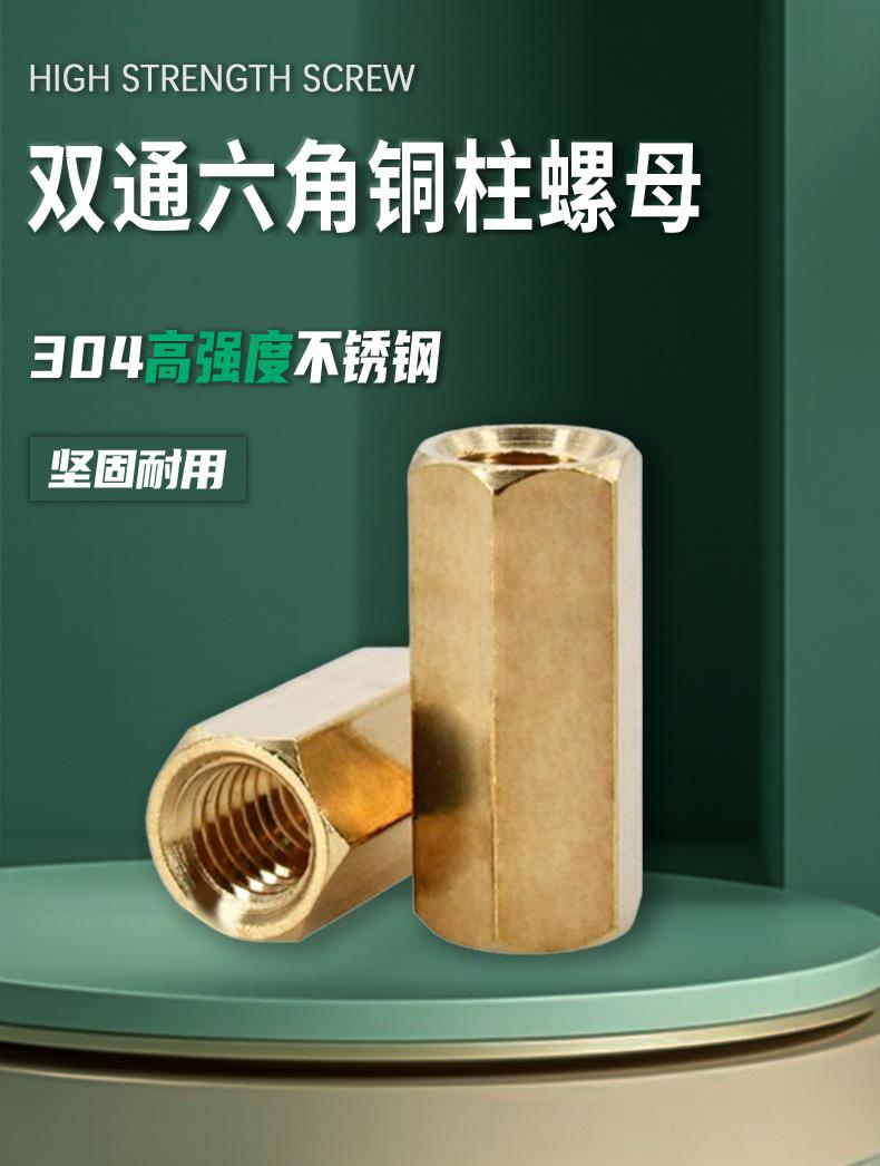 Tuerca hexagonal de cobre de doble paso M3, directa de fábrica, venta al por mayor, columna de soporte de aislamiento hexagonal hueca de latón H59 de paso recto.