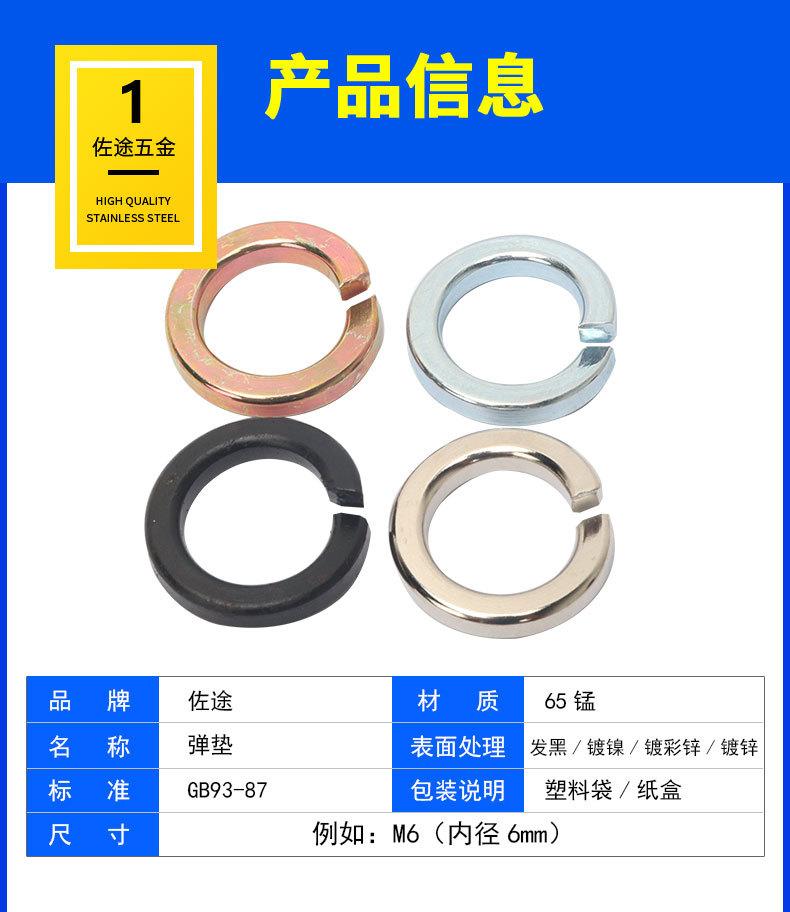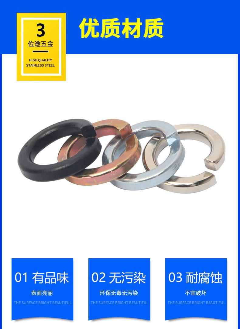 Arandela de Resorte Galvanizada Color Zinc Arandela Antiaflojamiento Almohadilla de Resorte Ennegrecida Metal Niquelado Redonda Meson M3M4M5M6M8-48