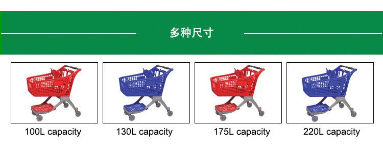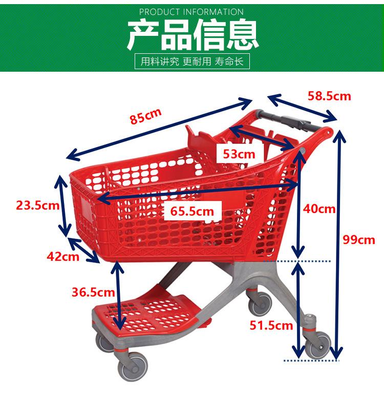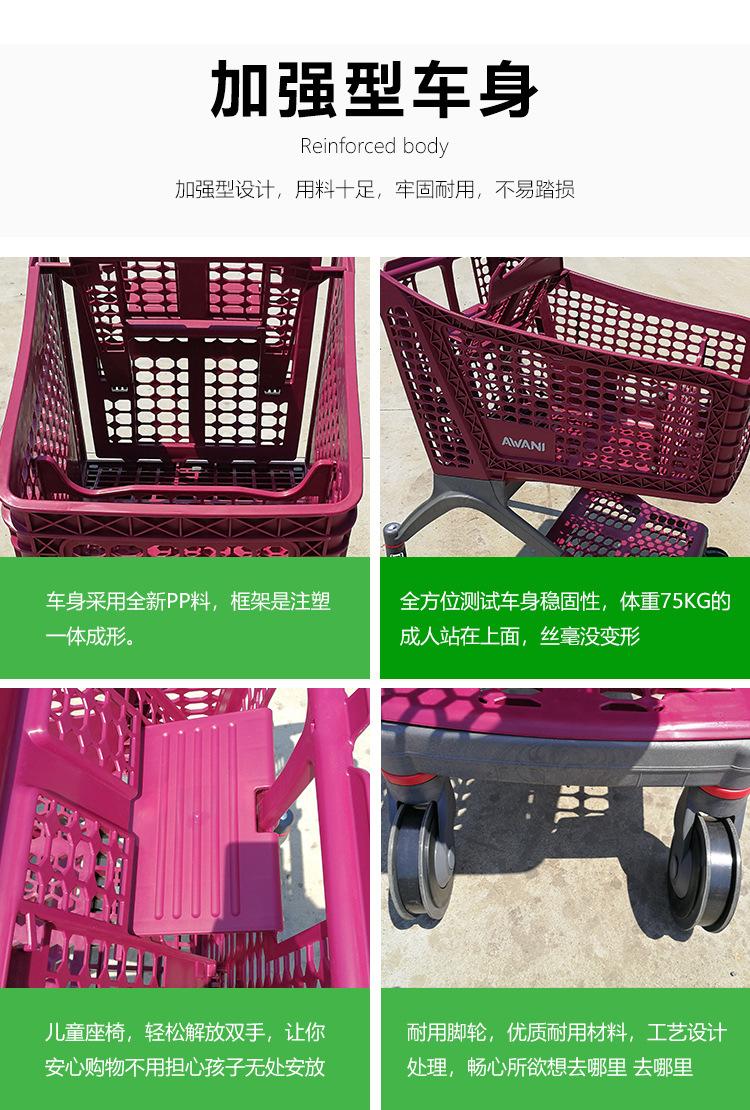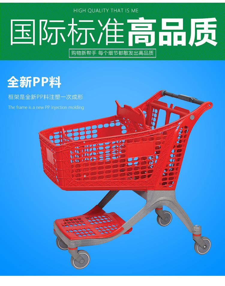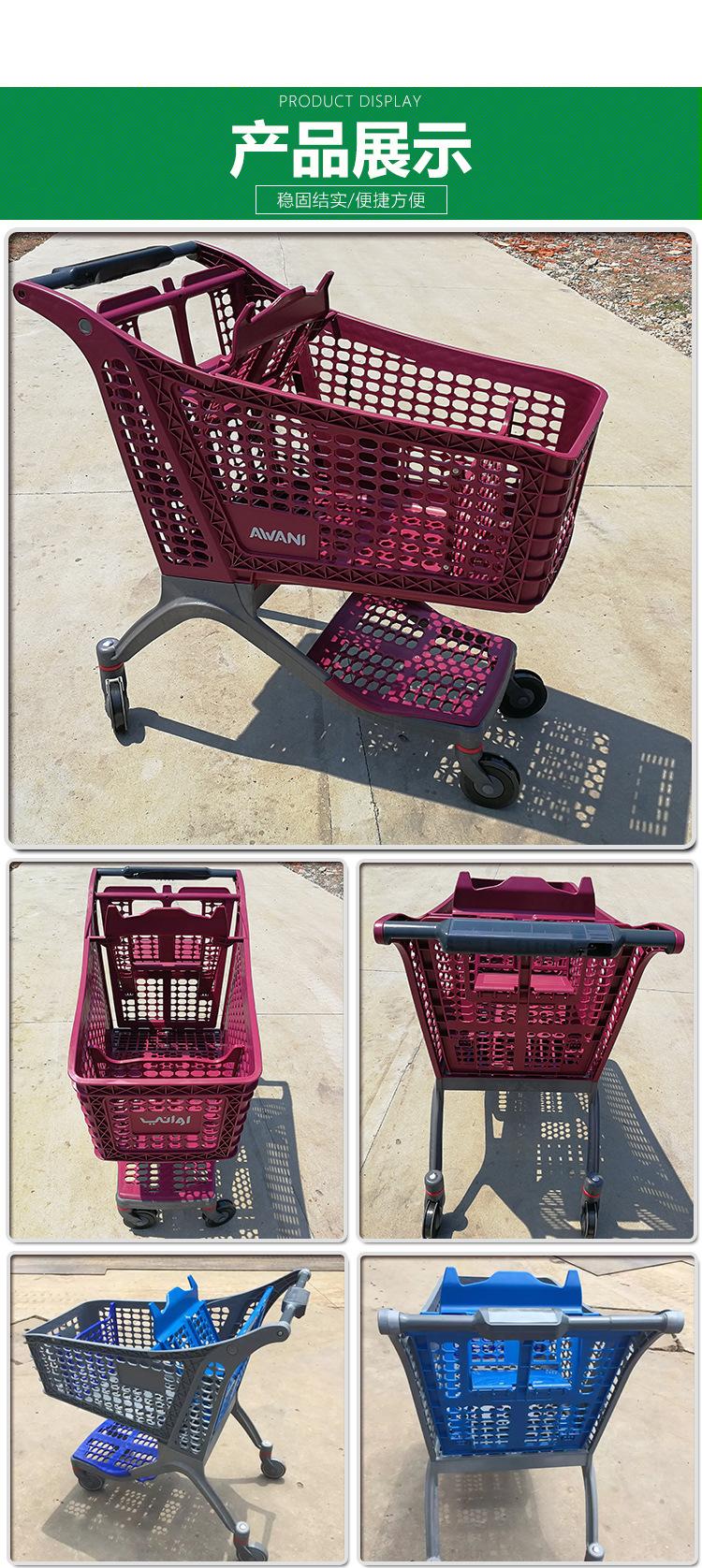 Carro de plástico completo de 175L al por mayor, gran capacidad, nuevo carrito de compras, carro de plástico completo para centro comercial, ventas directas