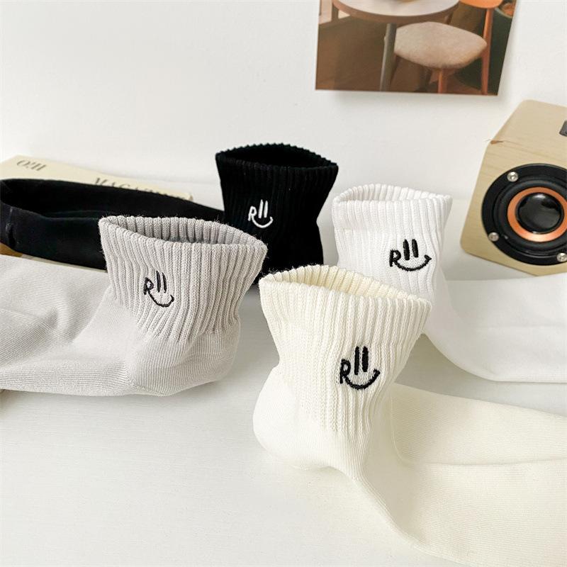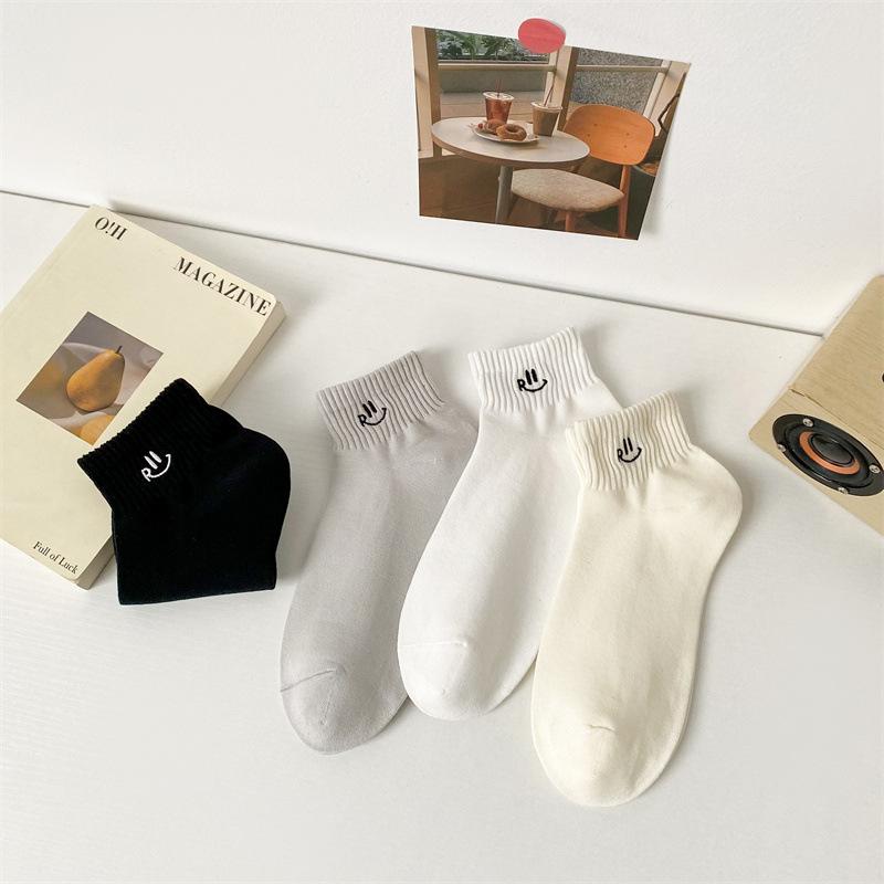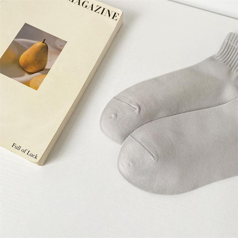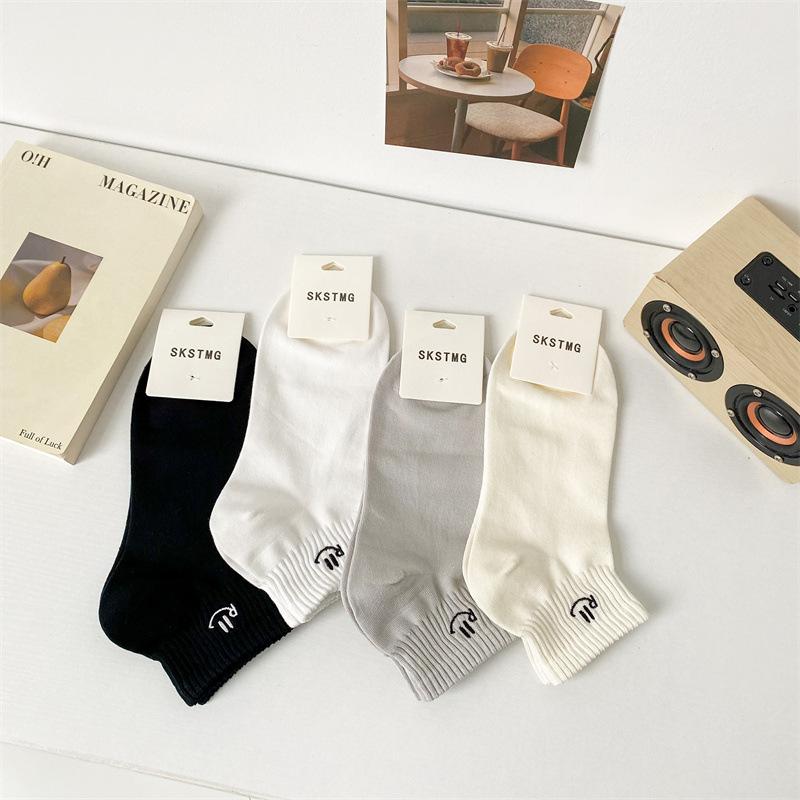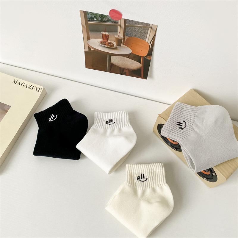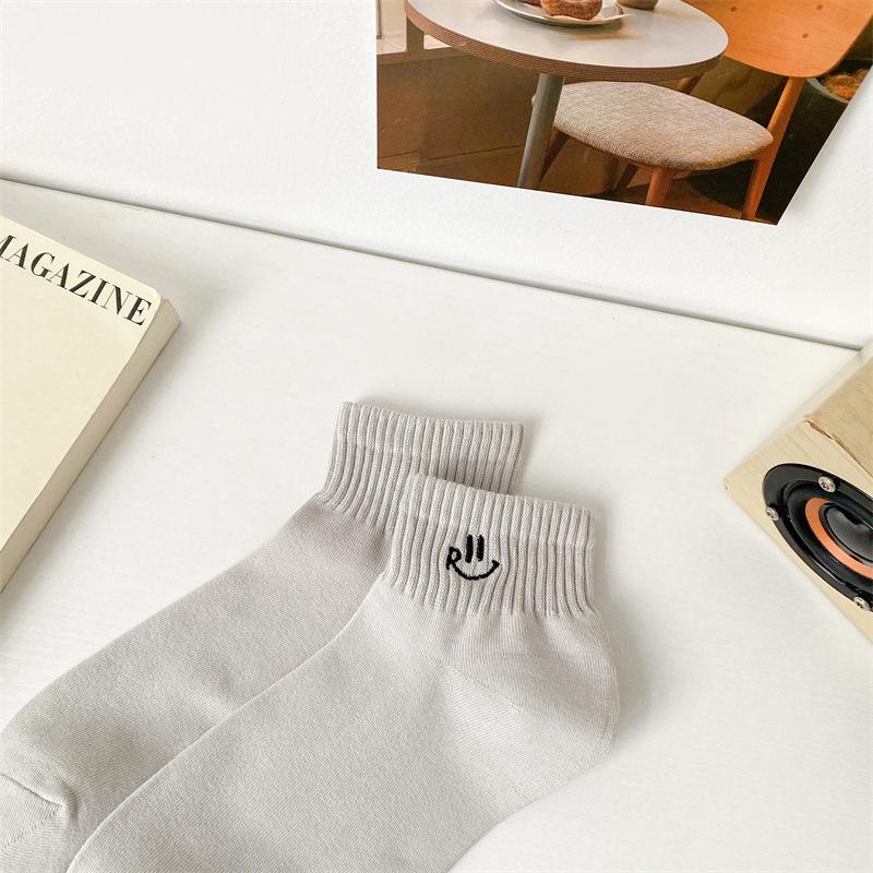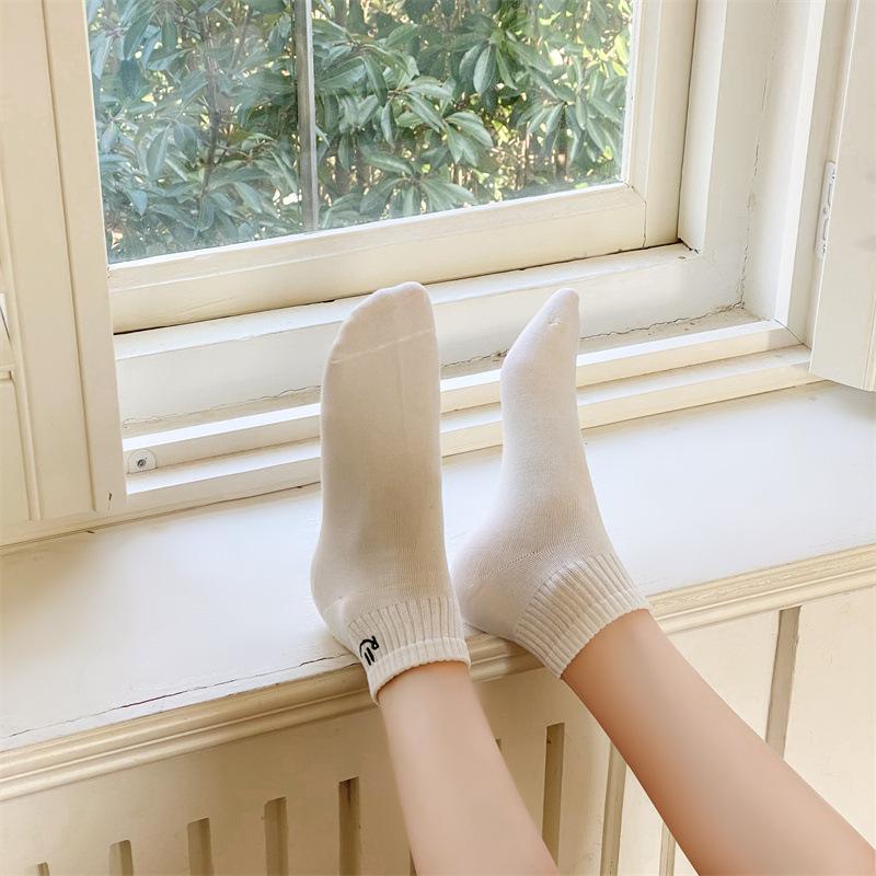 Calcetines de mujer primavera y otoño estilo preppy medio-cortos, calcetines de mujer combinables, calcetines deportivos bordados de color sólido, calcetines náuticos transpirables al por mayor