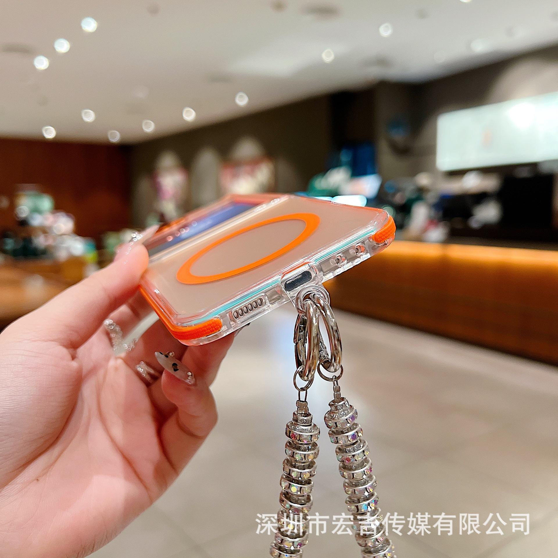 Funda para teléfono móvil Samsung Z Flip6 con pantalla plegable, soporte para pulsera Z FLIP5/4/3, cubierta anticaída de cuero de color contrastante.