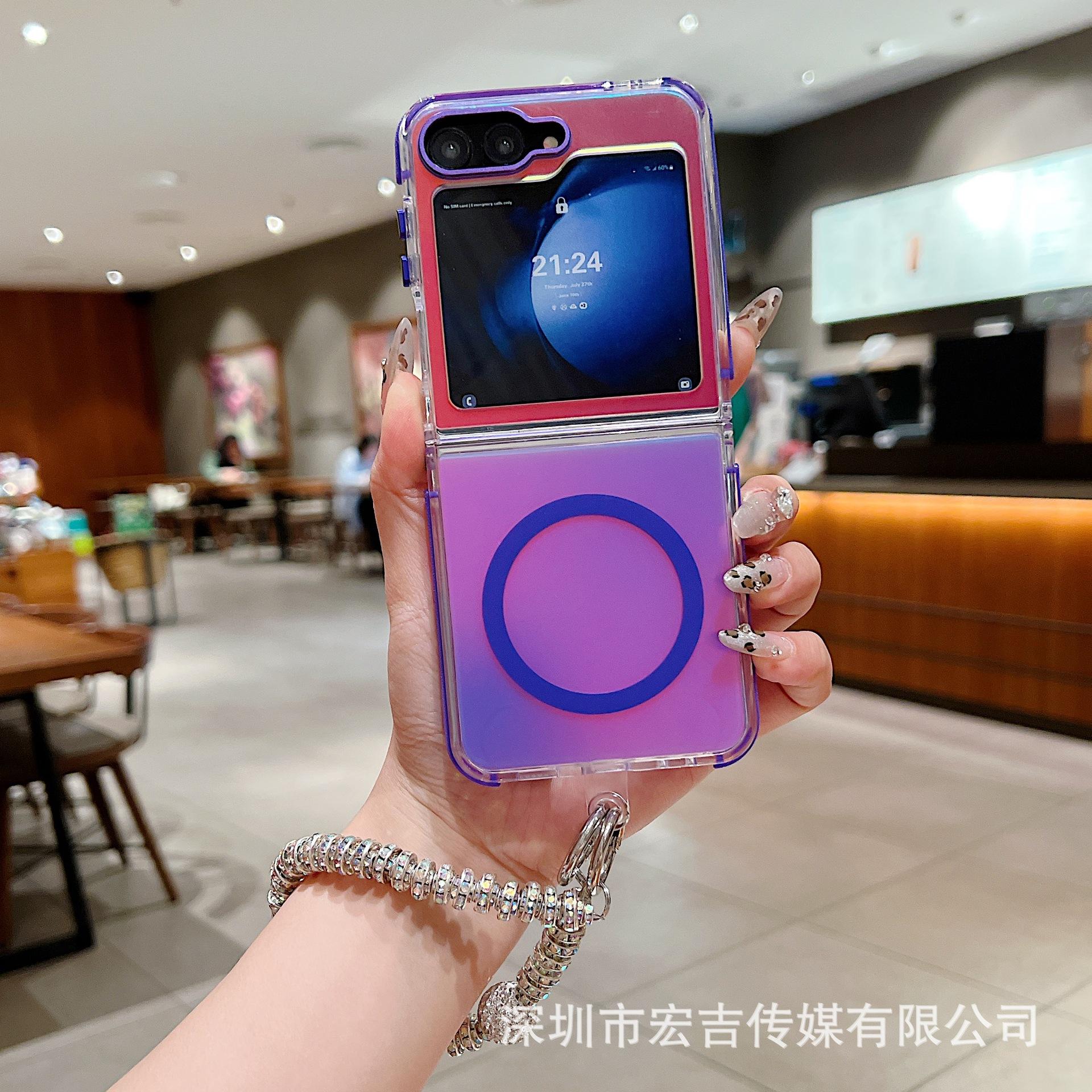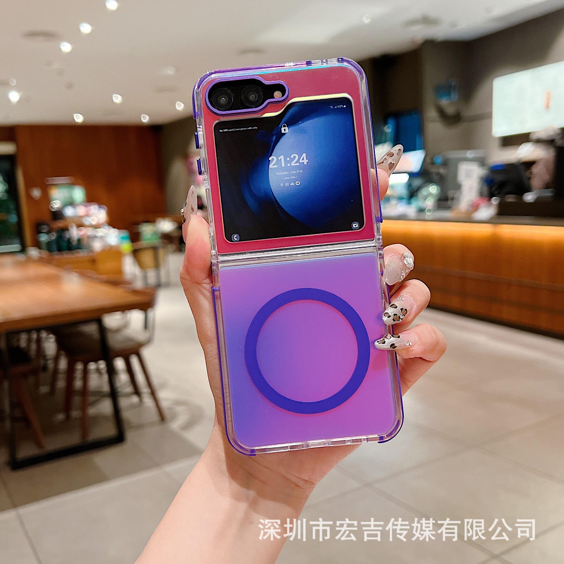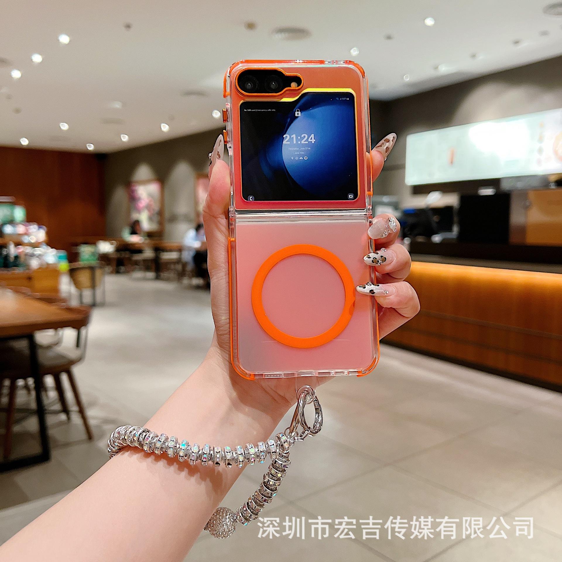 Adecuado para Samsung Z Flip6, funda de teléfono móvil con carga inalámbrica magnética, carcasa Flip5, película protectora de pantalla plegable anticaída integrada