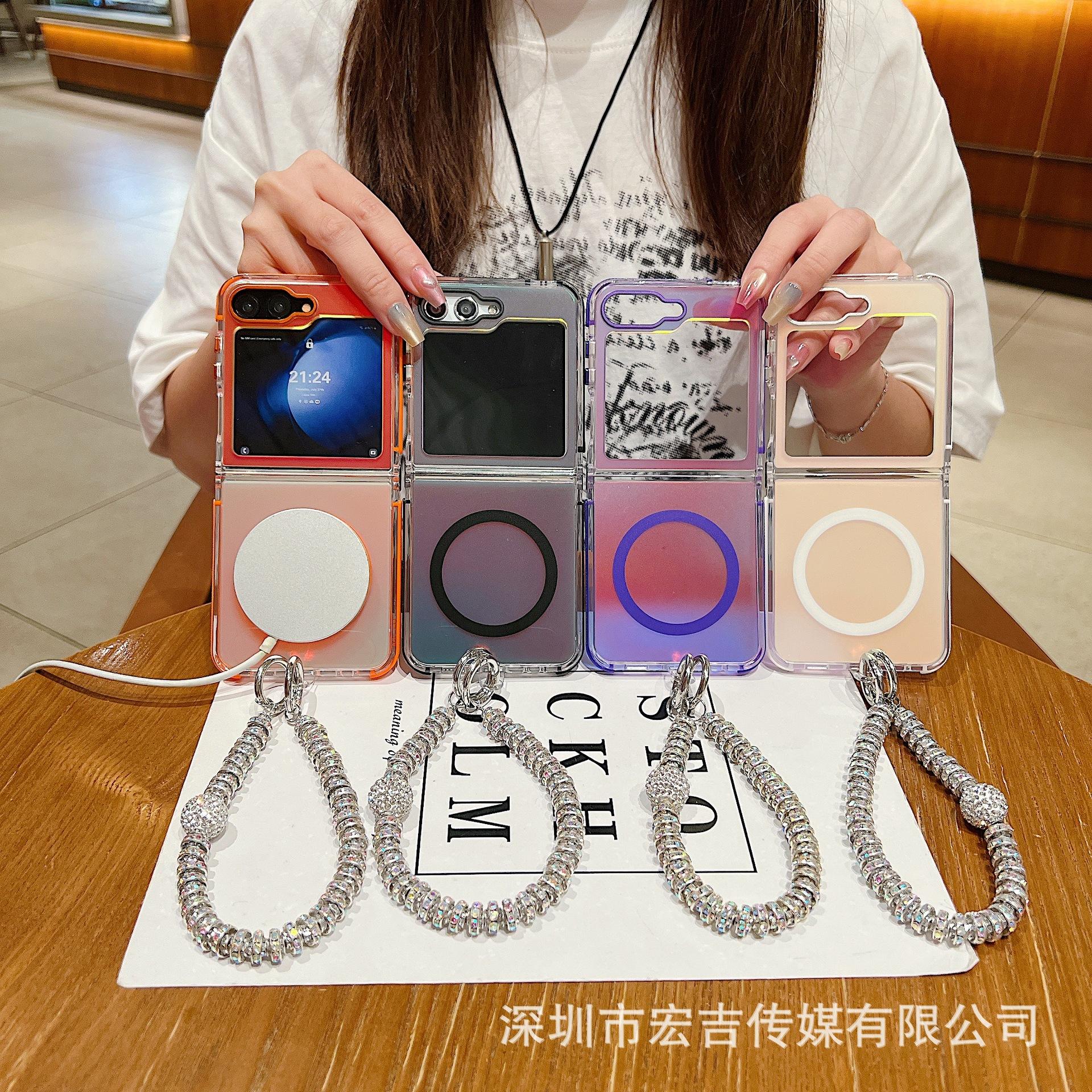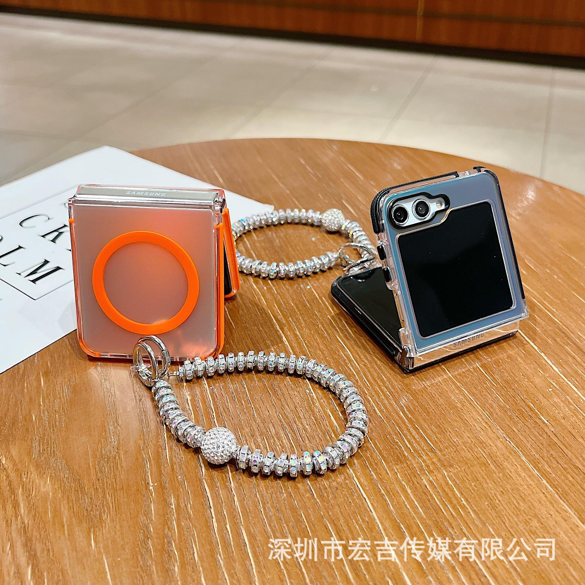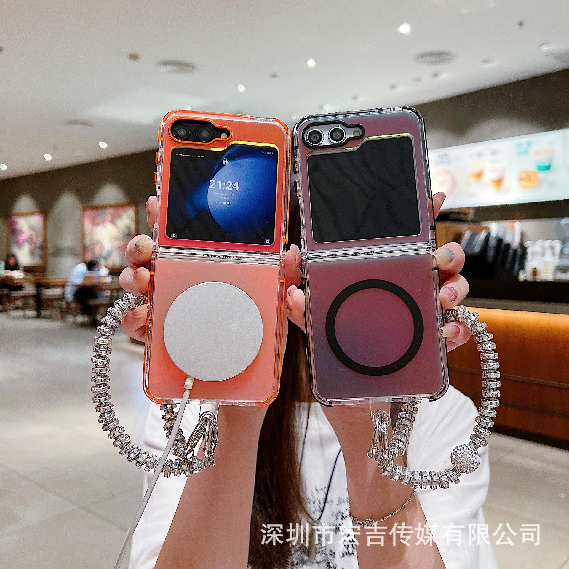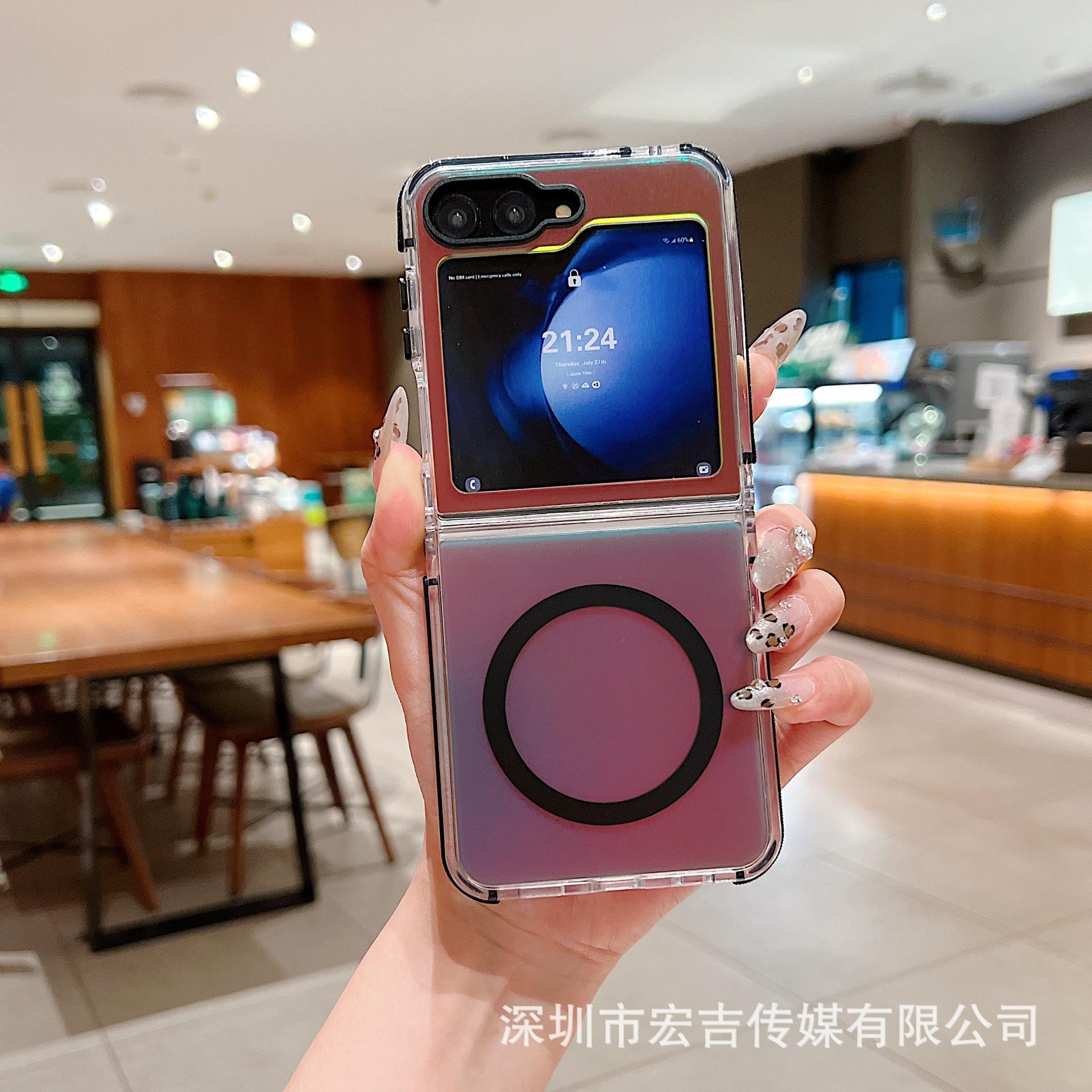 Adecuado para Samsung Z Flip6, funda de teléfono móvil con carga inalámbrica magnética, carcasa Flip5, película protectora de pantalla plegable anticaída integrada