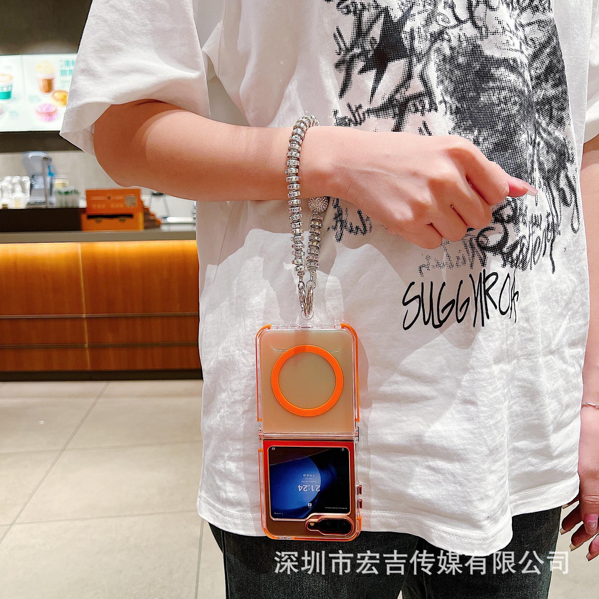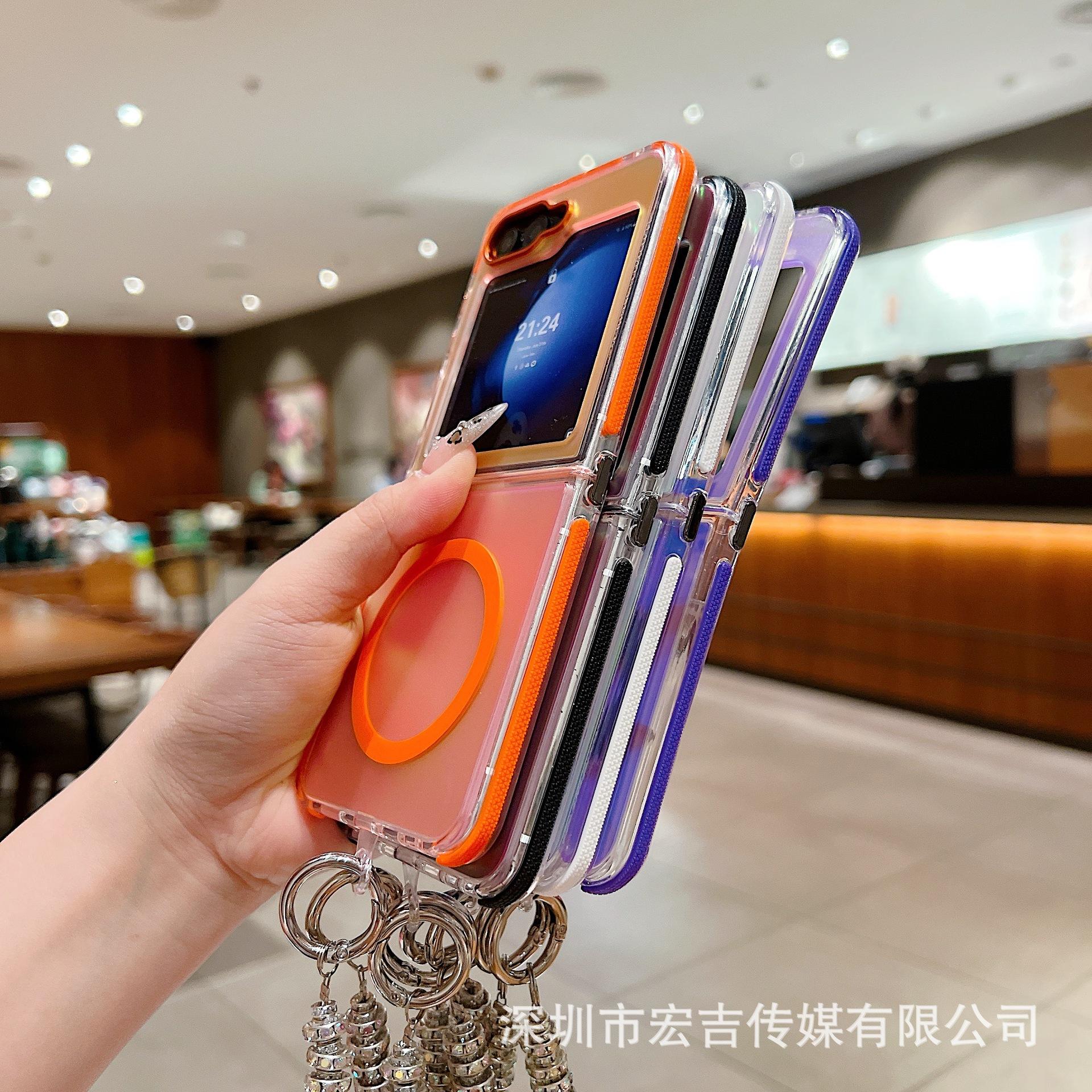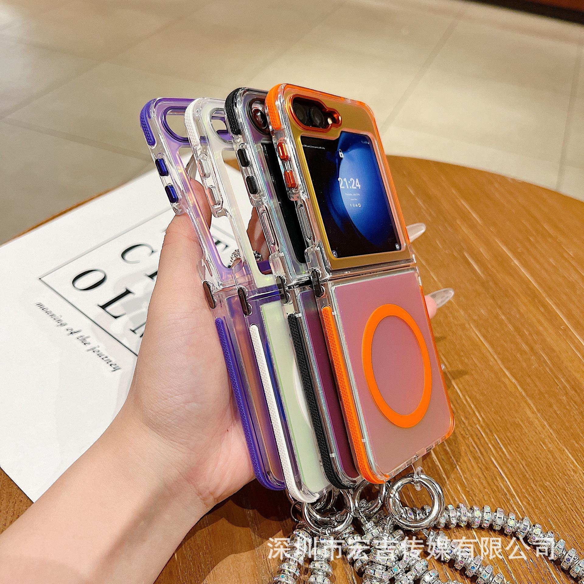 Funda para teléfono móvil Samsung ZFlip5 con pantalla plegable, cinta, cordón, anillo, zflip3/4, funda protectora completa con tacto de piel.