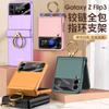 Adecuado para Samsung z flip5, funda para teléfono móvil con galvanoplastia, estilo fragancia pequeña, todo incluido, anticaída, soporte de anillo Flip4, funda protectora de cuero
