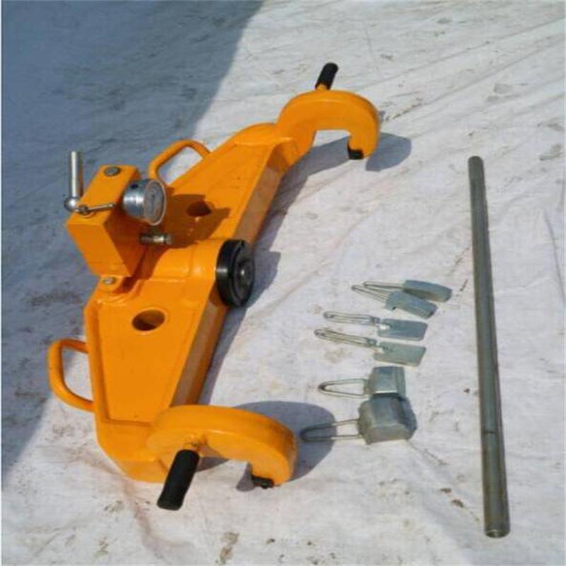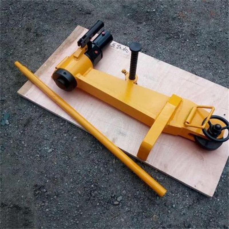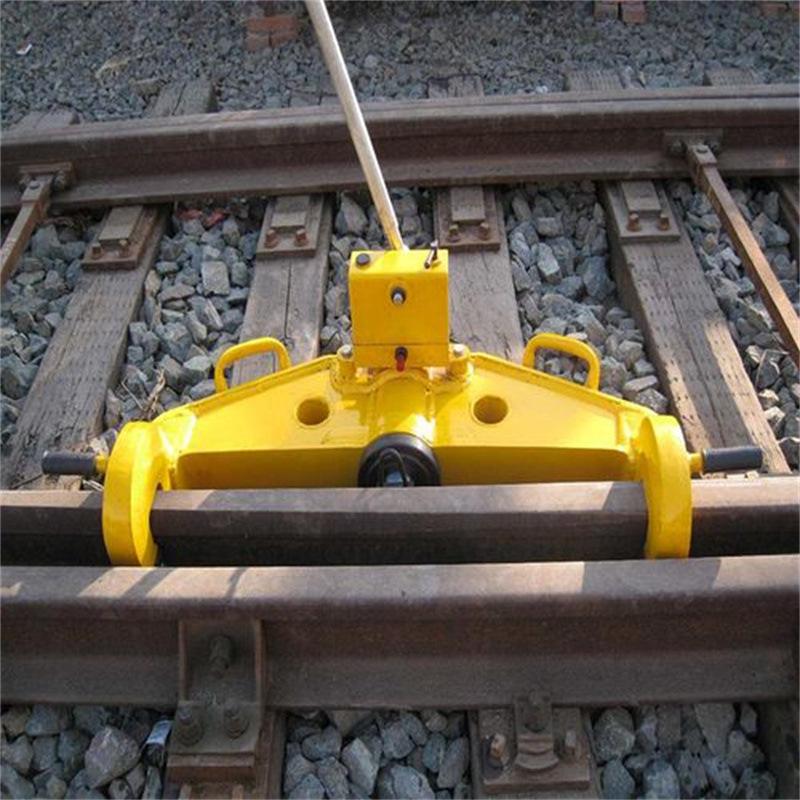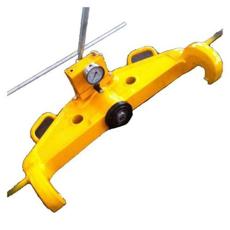Cuando la enderezadora hidráulica de rieles de punta YJT-500 está en funcionamiento, la máquina se coloca horizontalmente sobre el riel de punta o riel ordinario, el bloque superior del vástago del pistón del cilindro hidráulico se alinea con el centro del riel en la posición deformada del riel de punta o riel ordinario, y el brazo del riel de gancho se engancha firmemente al centro del riel en el otro lado. Mueva la palanca de la bomba manual, el vástago del pistón se extiende, el bloque superior presiona firmemente el riel, y al mismo tiempo, las almohadillas del riel de gancho a ambos lados también lo enganchan firmemente. Mueva la palanca de la bomba manual hacia adelante y hacia atrás para suministrar aceite al cilindro hidráulico, la presión del sistema aumenta, el empuje del vástago del pistón y del bloque superior aumenta, y bajo el apoyo de los brazos del riel de gancho a ambos lados, el riel de punta o riel ordinario se deforma hasta que se produce una deformación plástica, y el riel de punta o riel ordinario se endereza o dobla.