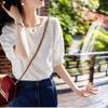 Top de Algodón para Mujer Verano Combinable 2022 Verano Nuevo Bordado Soluble en Agua Manga Linterna Suelto Camisa de Encaje Moda Femenina